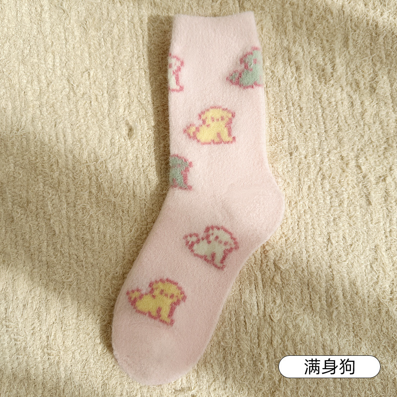 푹신한 귀여운 강아지 양말 가을과 겨울 호주 벨벳 두꺼운 홈 따뜻한 슬리핑 양말 스트레치 좋은 중간 튜브 양말스토어 가기