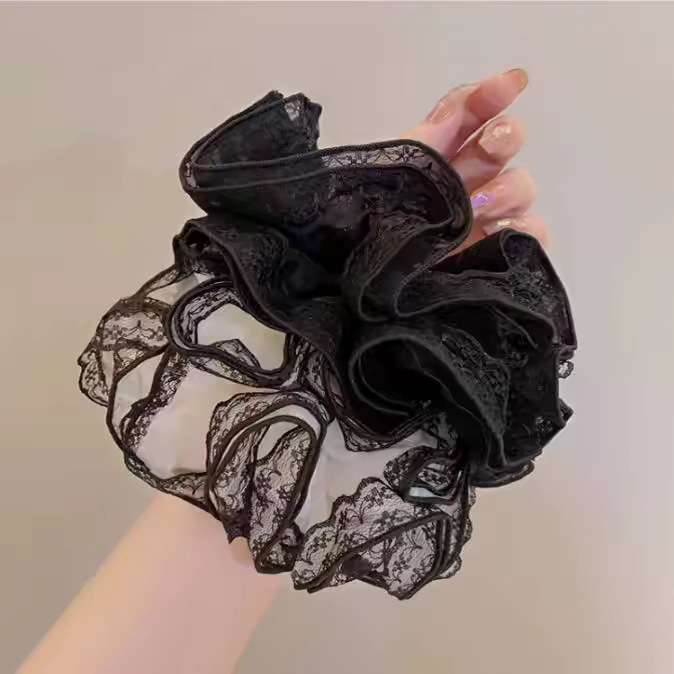대형 레트로 레이스 엣지 대형 Intestine 헤어 링 여성 더블 레이어 오간 슈페리어 센스 헤어 링 2024 새로운 헤어 코드 헤어 액세서리
