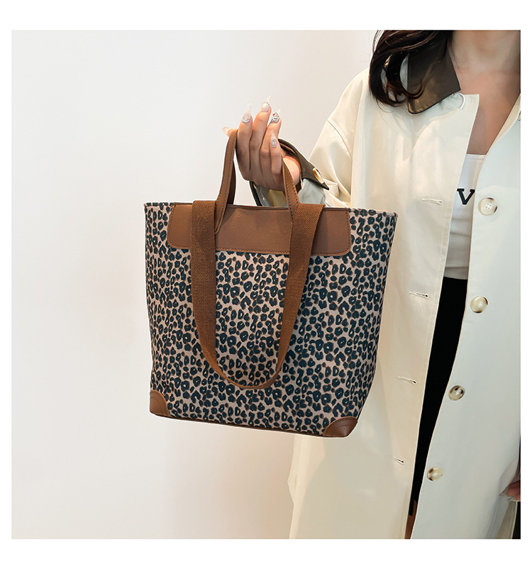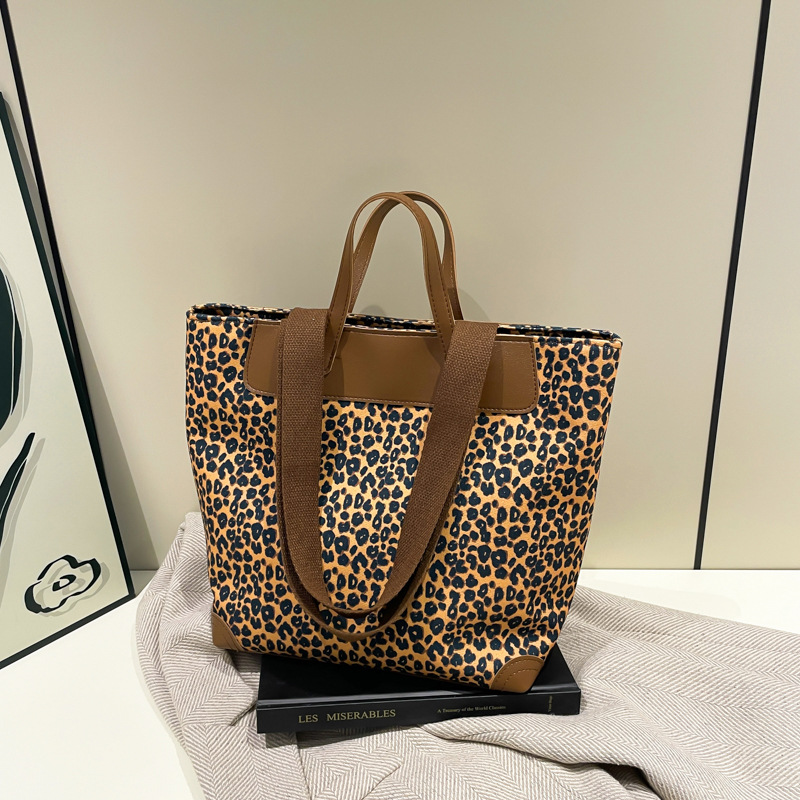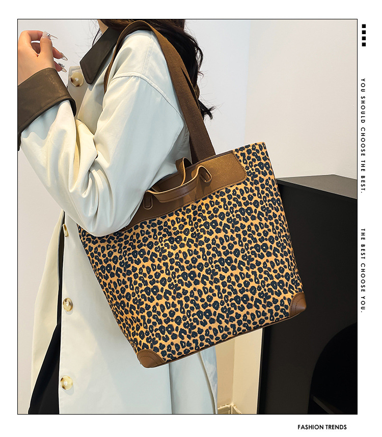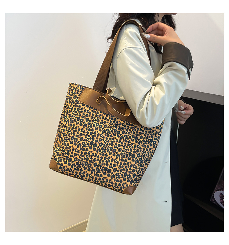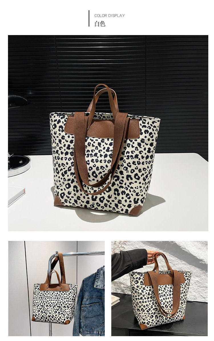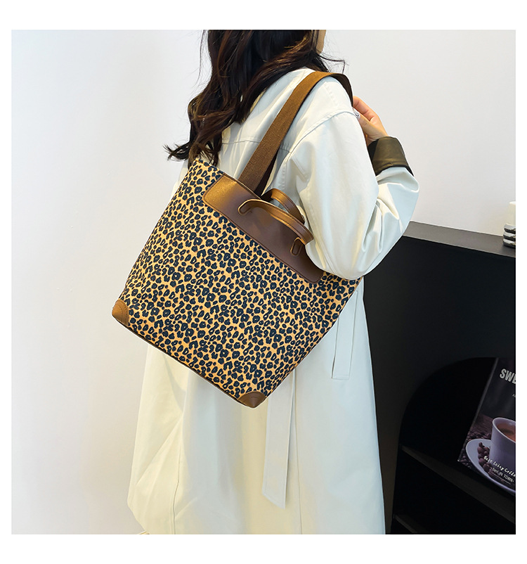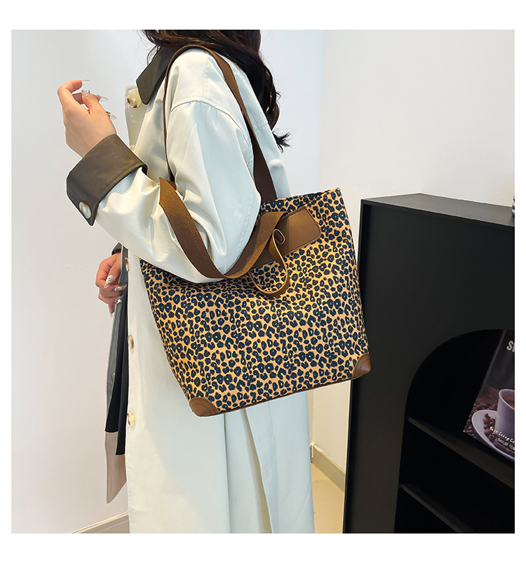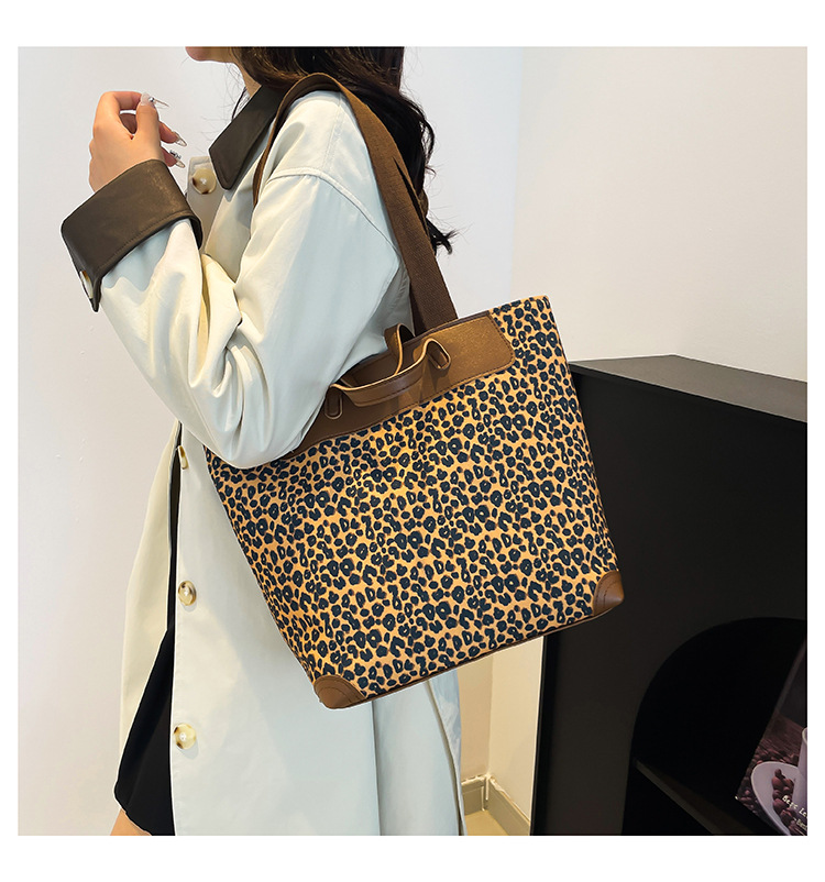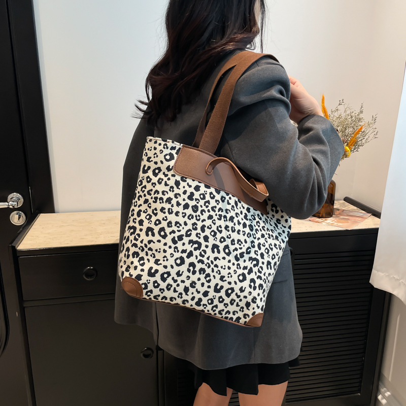 국경 간 인기있는 레오파드 무늬 서양식 대형 가방 크로스 바디 백 2024 새로운 핸드백 콘트라스트 컬러 올 매치 통근 버킷 백