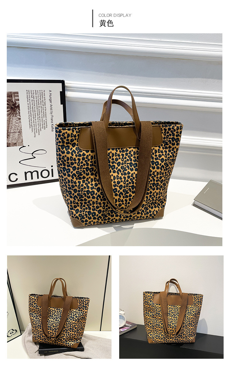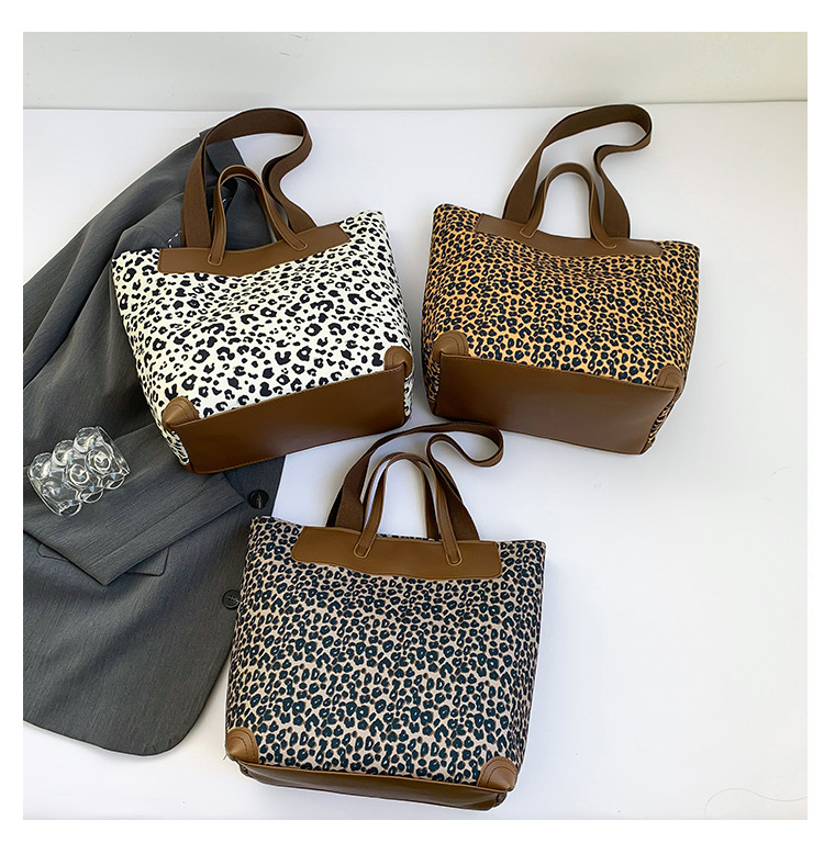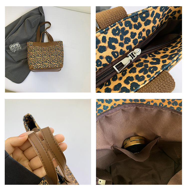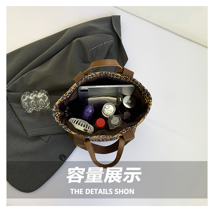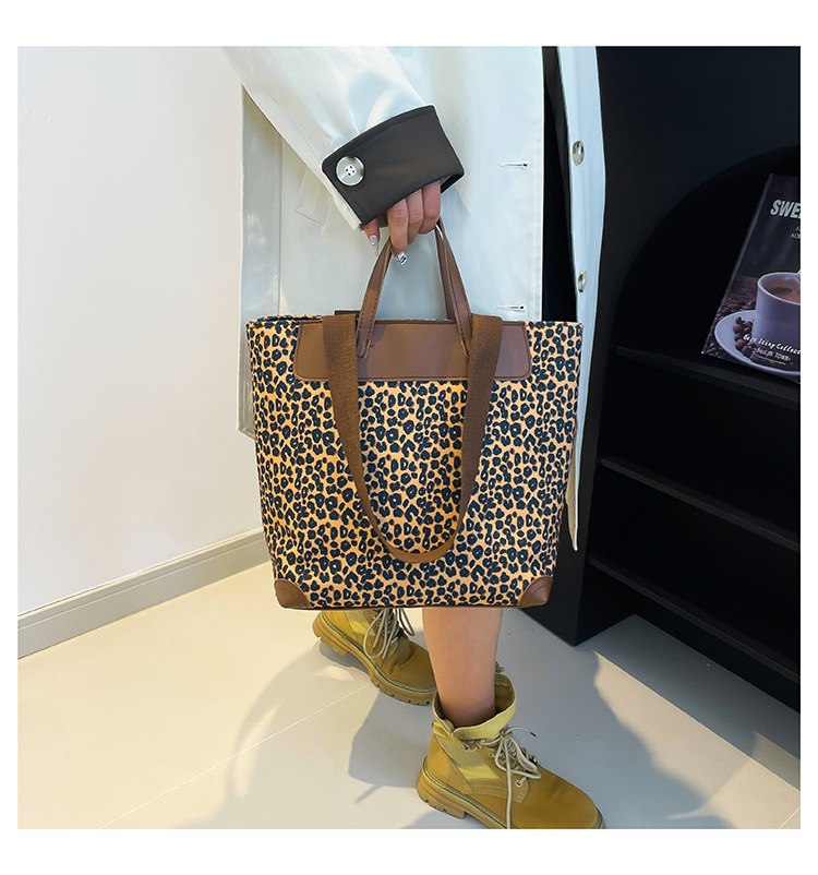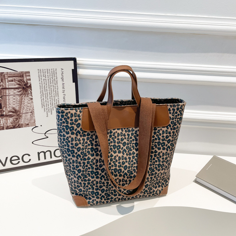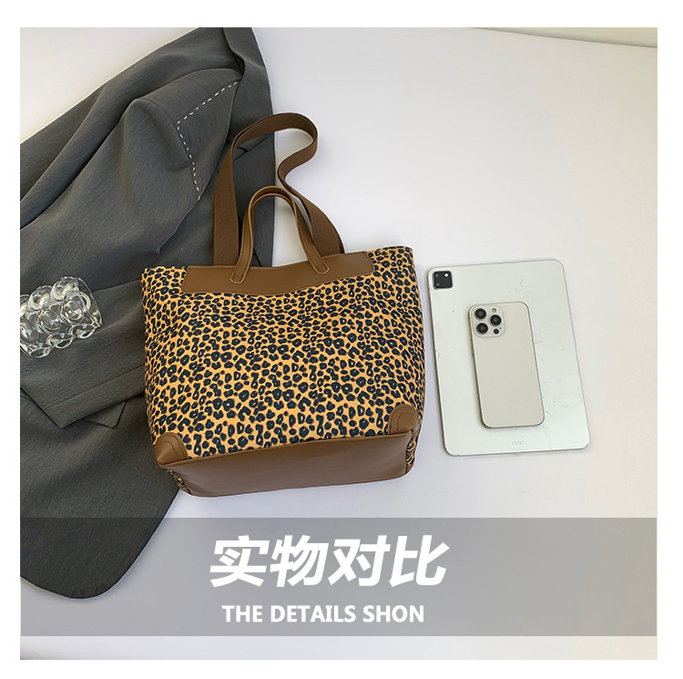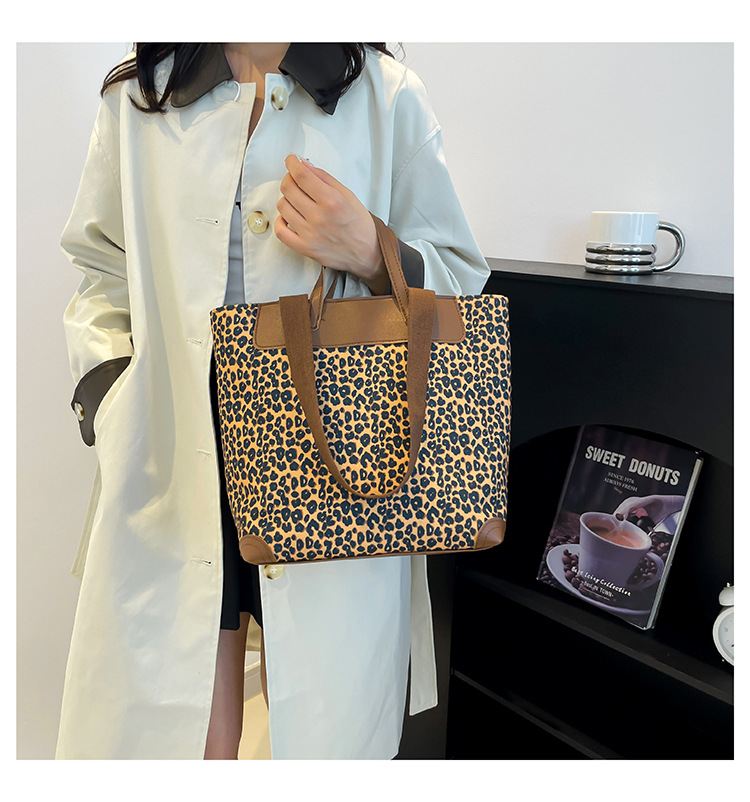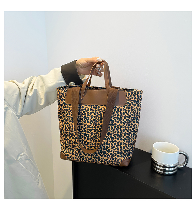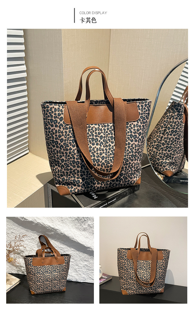 국경 간 인기있는 레오파드 무늬 서양식 대형 가방 크로스 바디 백 2024 새로운 핸드백 콘트라스트 컬러 올 매치 통근 버킷 백