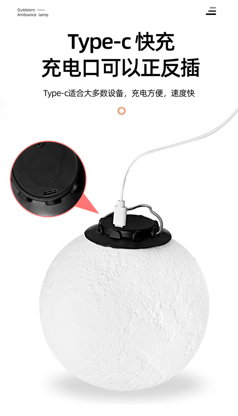 야외 텐트 캠핑 라이트 LED 방수 달 빛 충전식 캠핑 매달려 빛 휴대용 분위기 텐트 라이트 도매스토어 가기