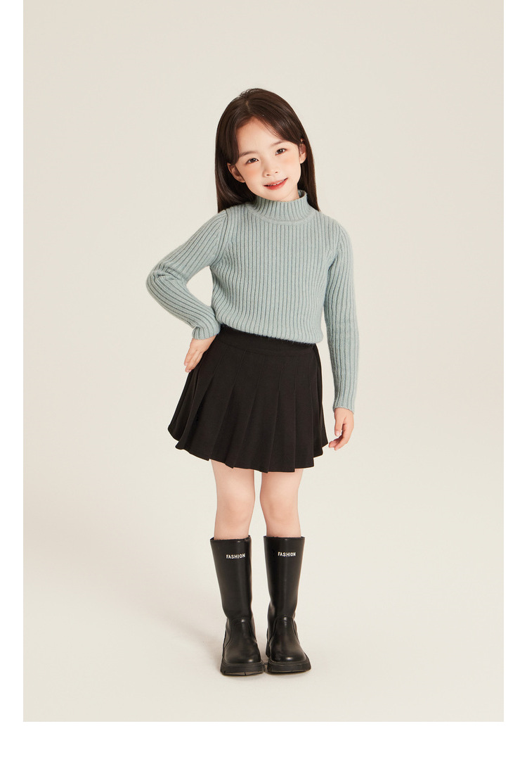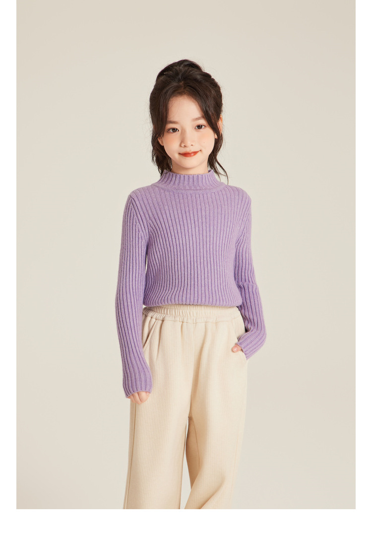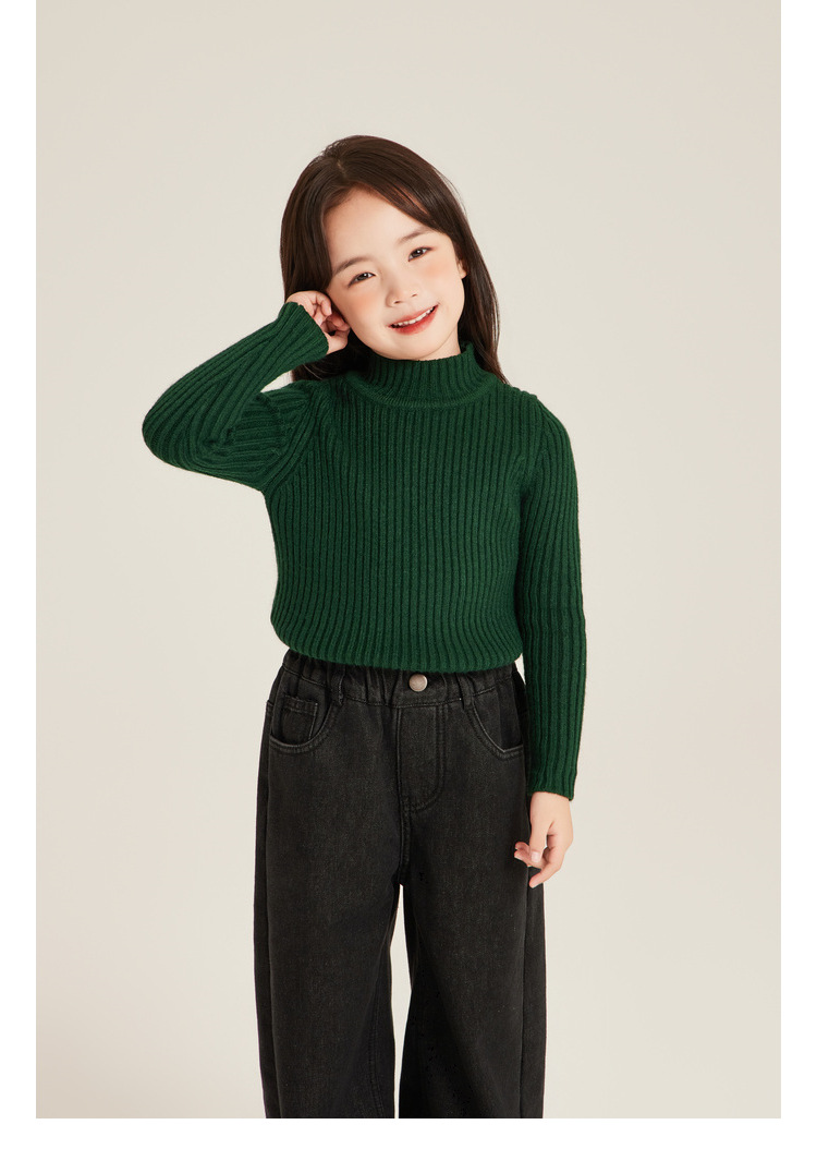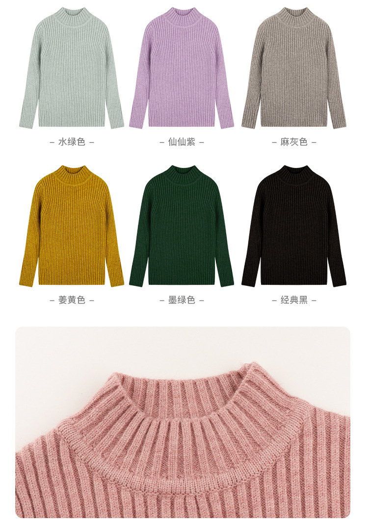 Amybaby Girls 'Top Winter 2024 새로운 한국식 소프트 왁스 니트 올 매치 솔리드 컬러 하프 터틀넥 스웨터스토어 가기