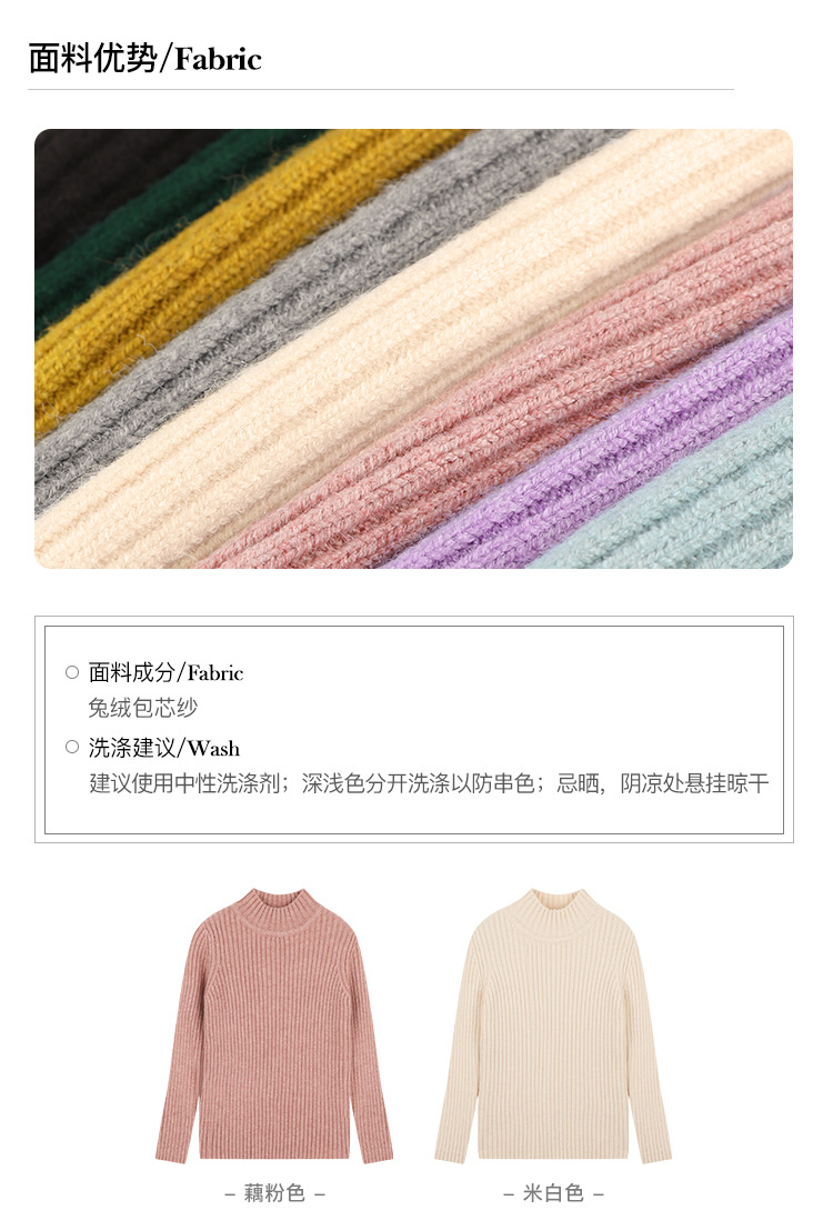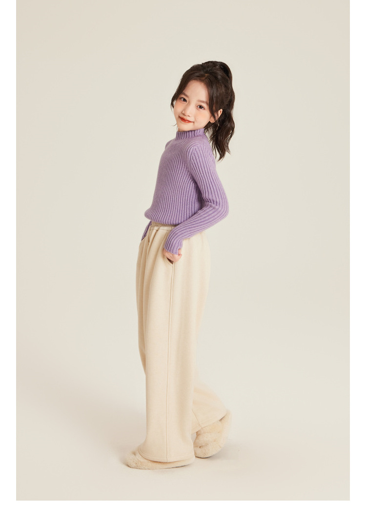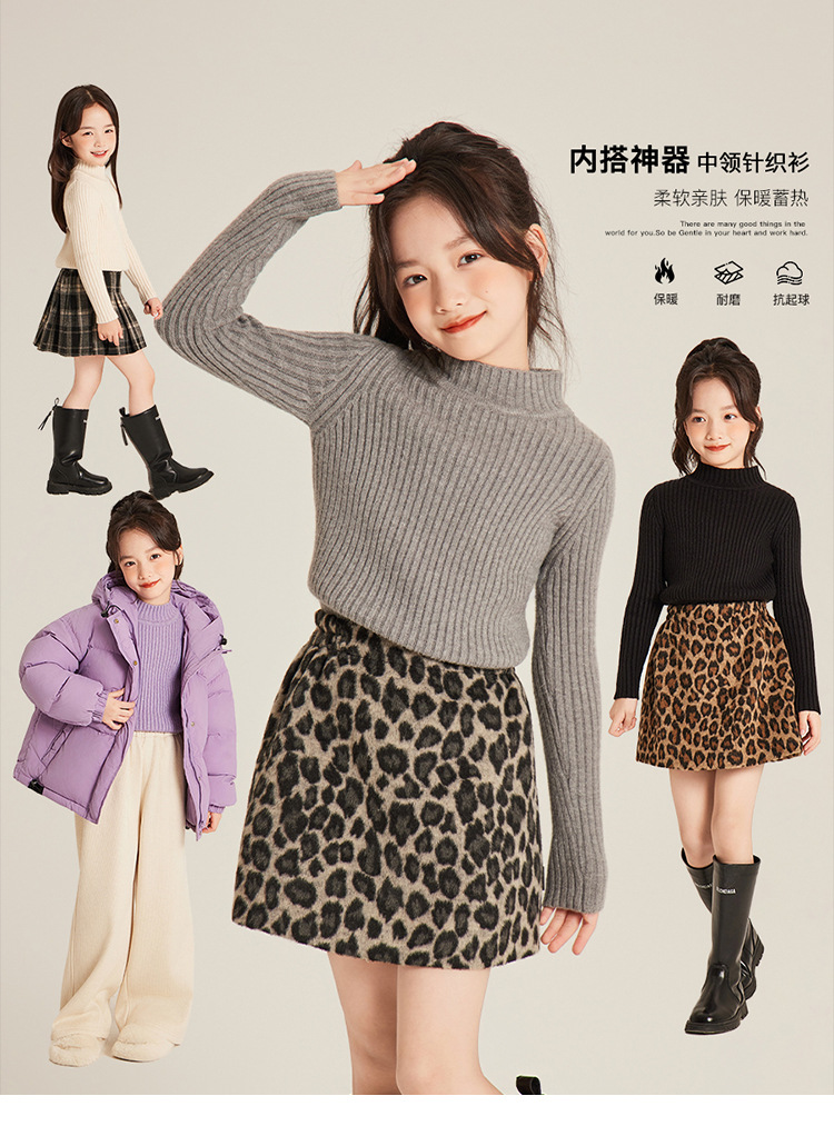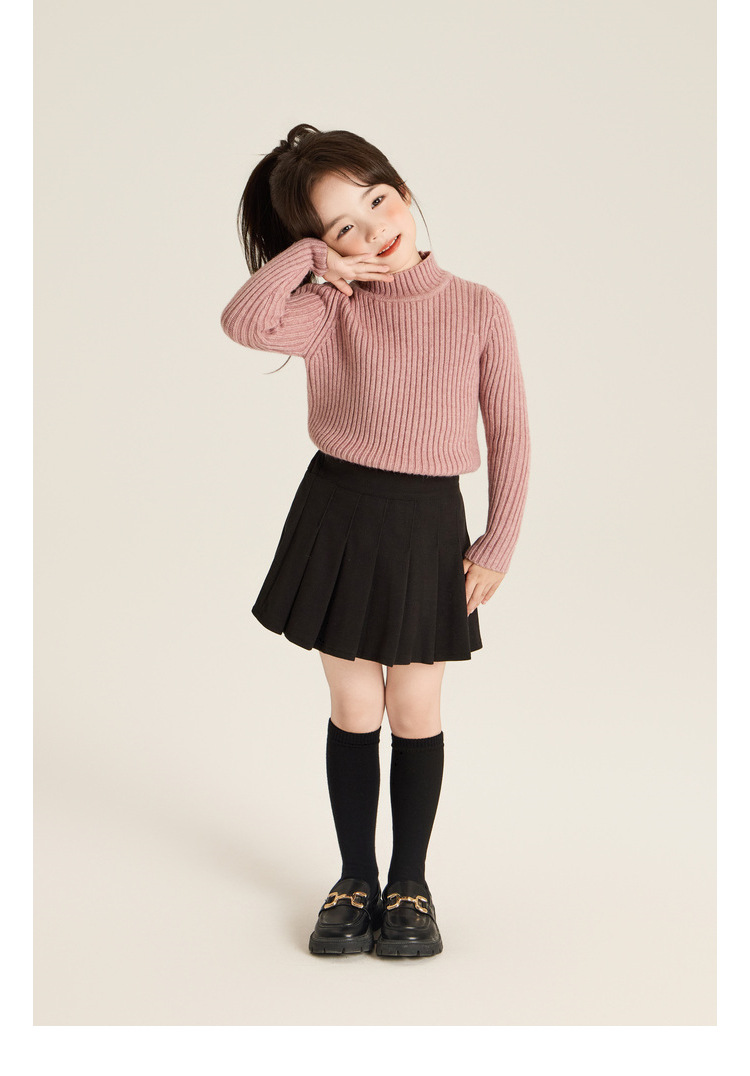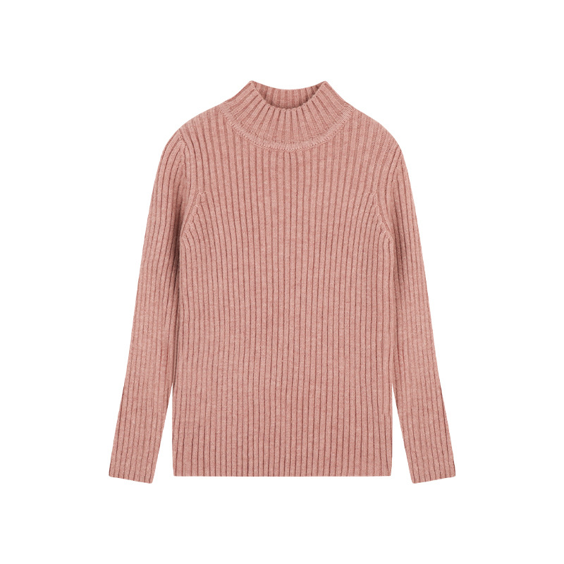 Amybaby Girls 'Top Winter 2024 새로운 한국식 소프트 왁스 니트 올 매치 솔리드 컬러 하프 터틀넥 스웨터스토어 가기