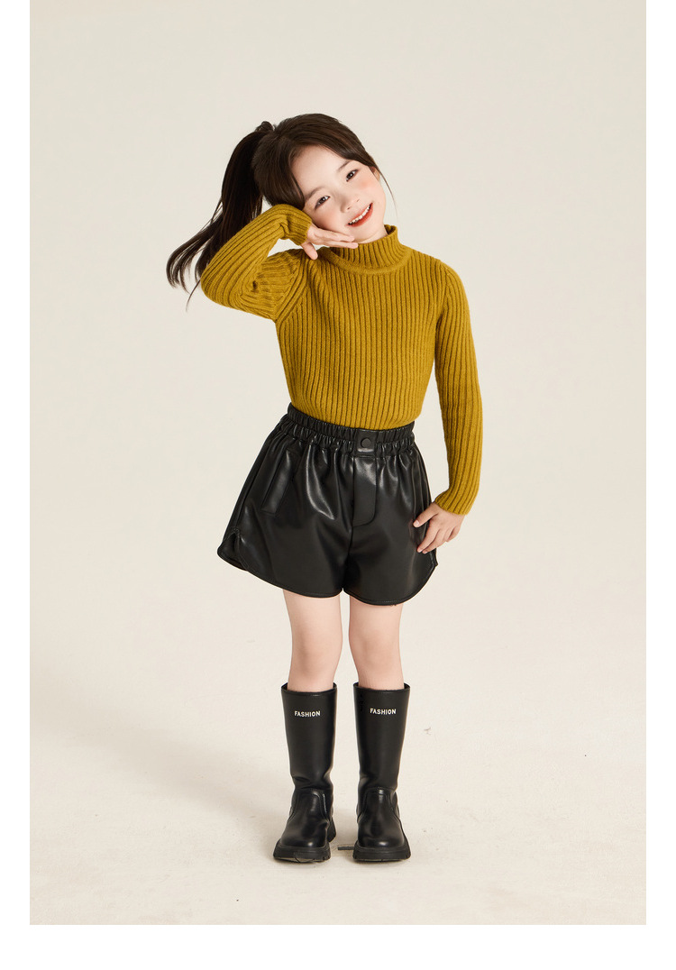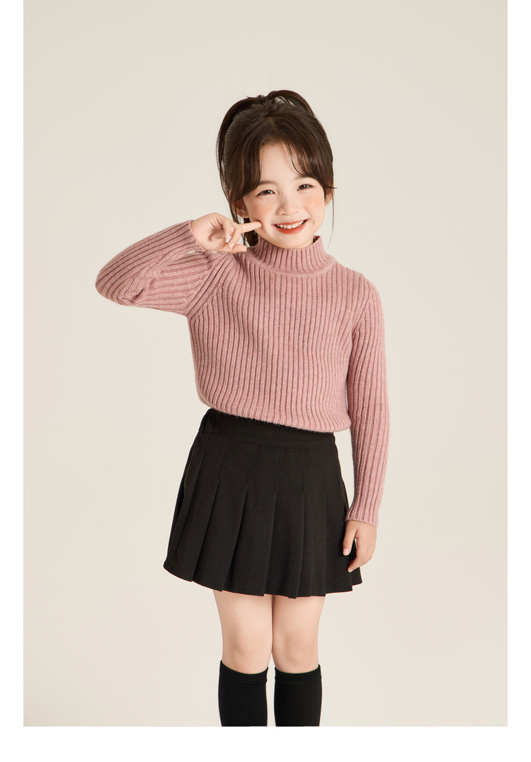 Amybaby Girls 'Top Winter 2024 새로운 한국식 소프트 왁스 니트 올 매치 솔리드 컬러 하프 터틀넥 스웨터