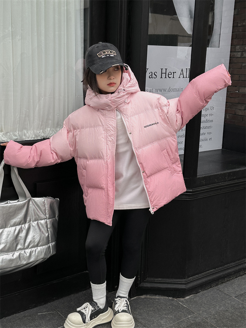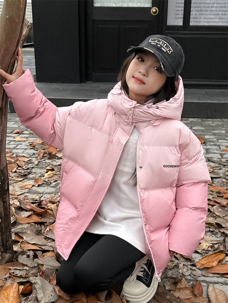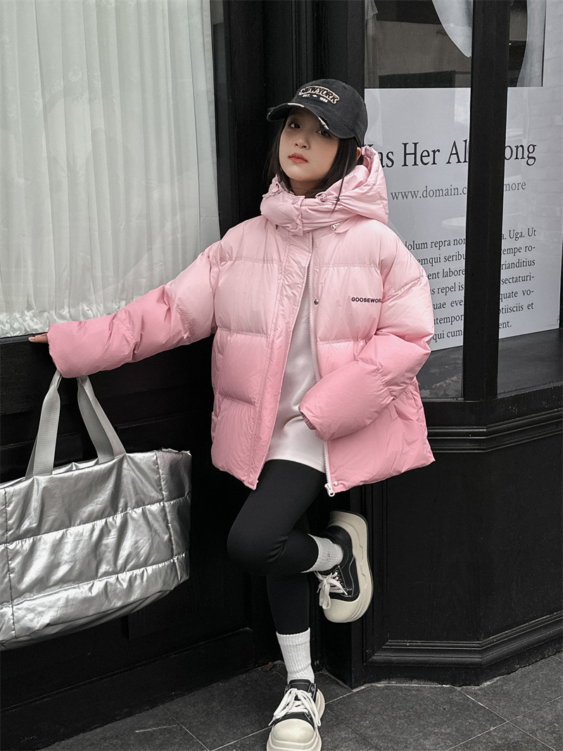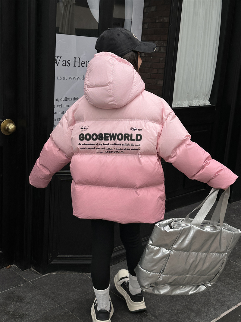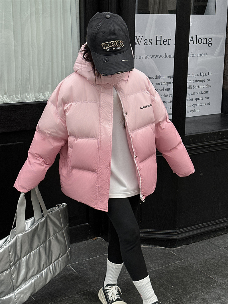 2025 오프 시즌 특별 한국 스타일 소녀 다운 재킷 남성 및 여성용 흰색 오리 다운 두꺼운 그라데이션 후드 재킷 탑스토어 가기