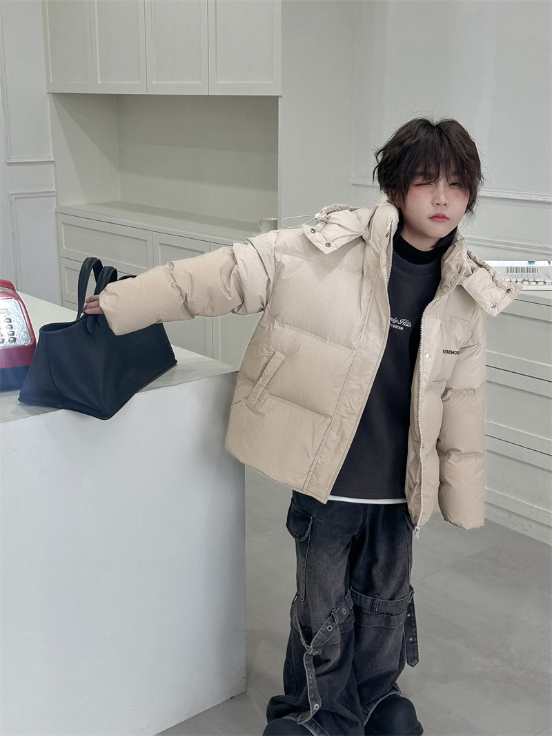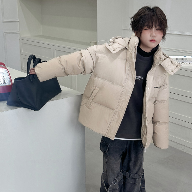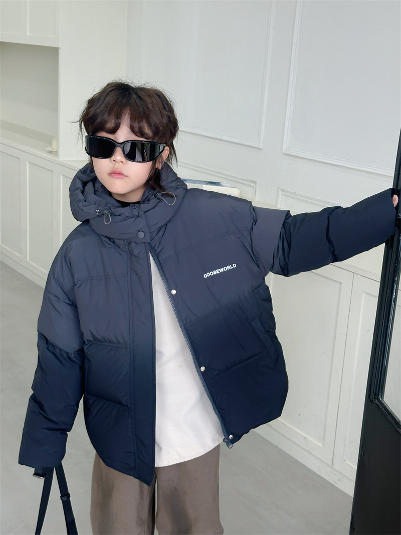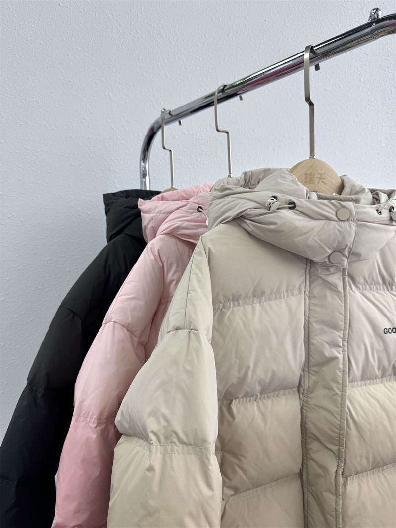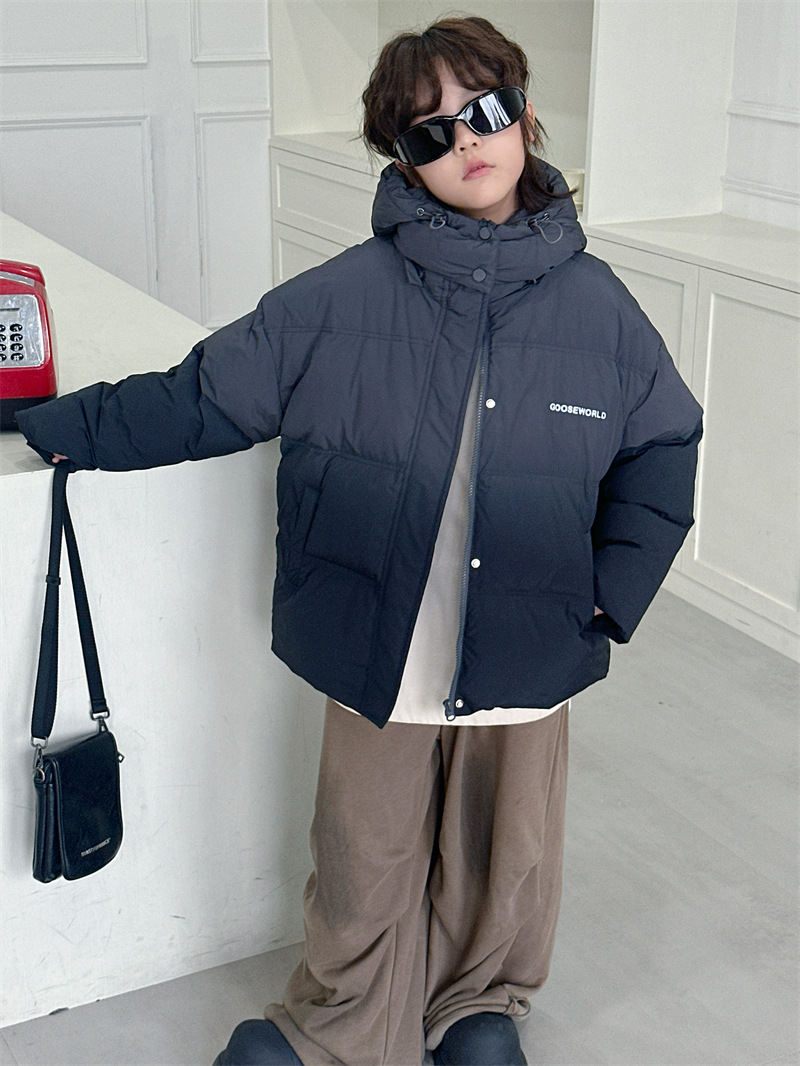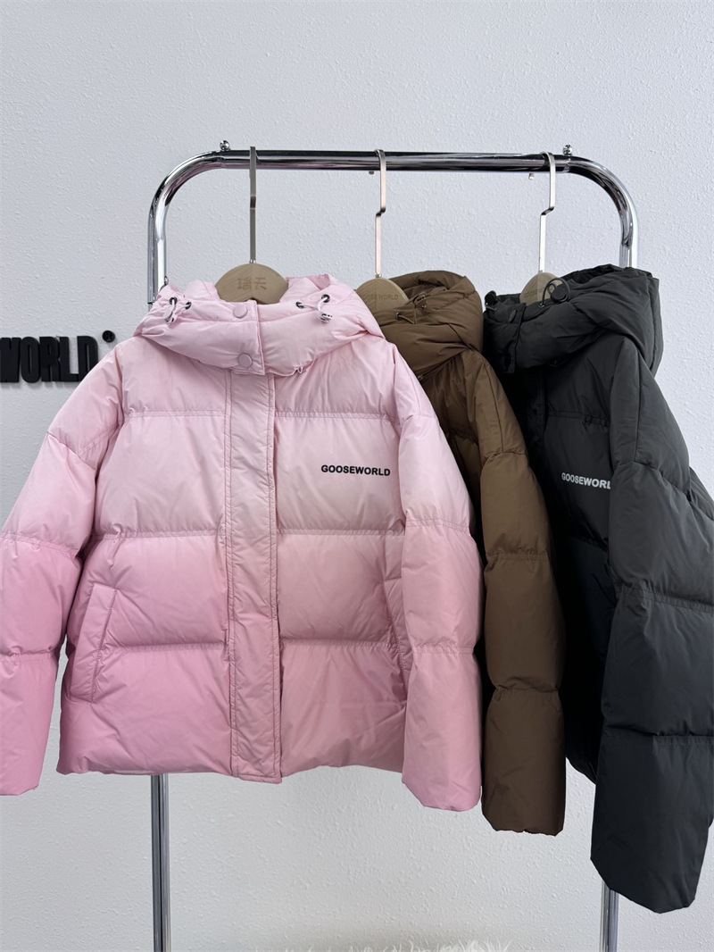 2025 오프 시즌 특별 한국 스타일 소녀 다운 재킷 남성 및 여성용 흰색 오리 다운 두꺼운 그라데이션 후드 재킷 탑스토어 가기