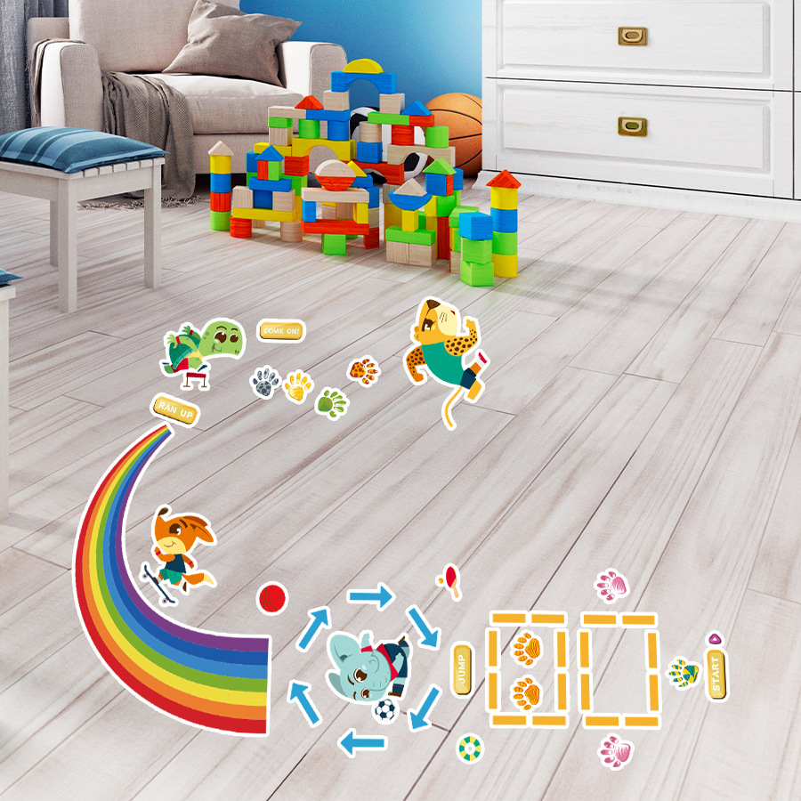 만화 귀여운 작은 동물 게임 소품 자체 접착 스티커 유치원 홈 바닥 장식 스티커 BR3234M