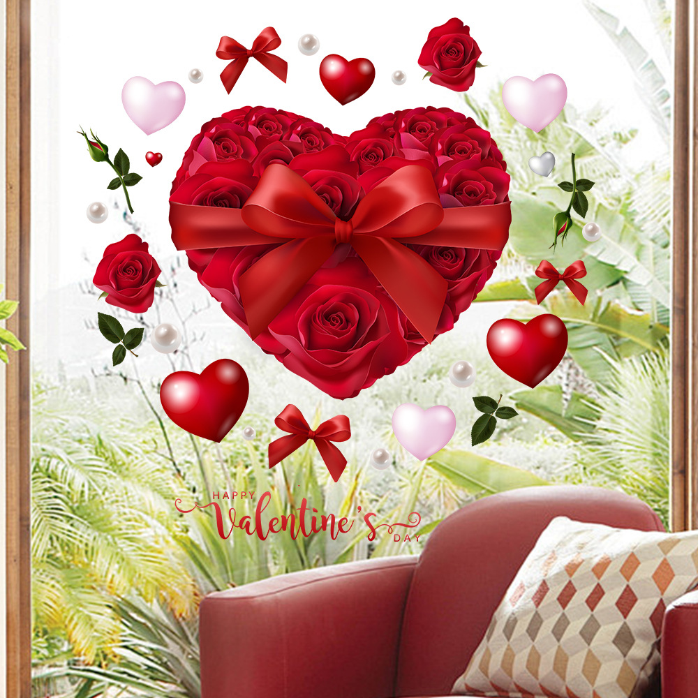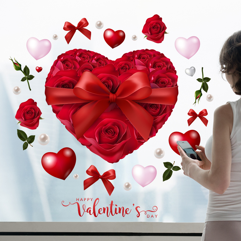 Yiyao JD3331 국경 새 Tanabata 발렌타인 데이 로즈 정전기 창 스티커 사랑 장식 웨딩 배열 스티커스토어 가기