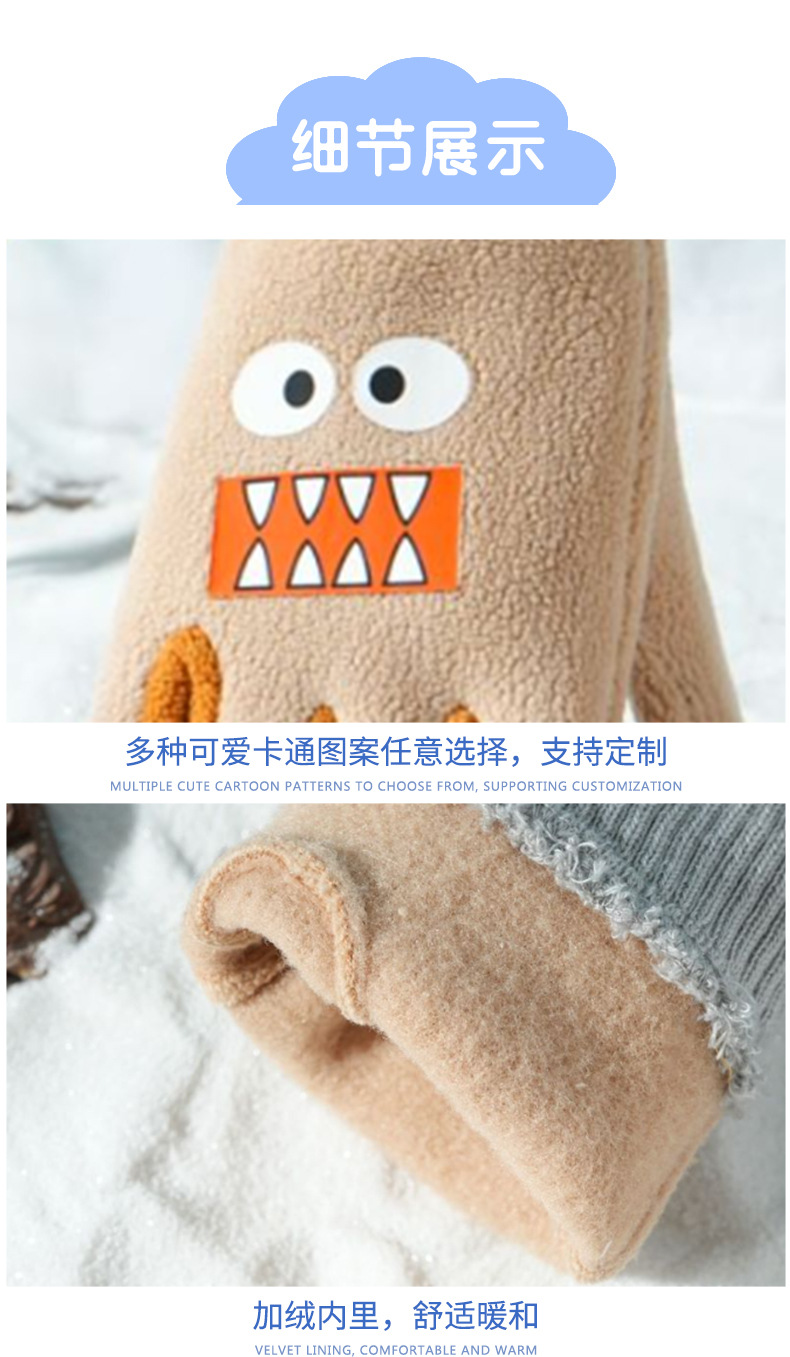 어린이 장갑 가을과 겨울 야외 승마 폴라 양털 따뜻한 방풍 소년 소녀 코튼 스키 만화 귀여운 도매스토어 가기