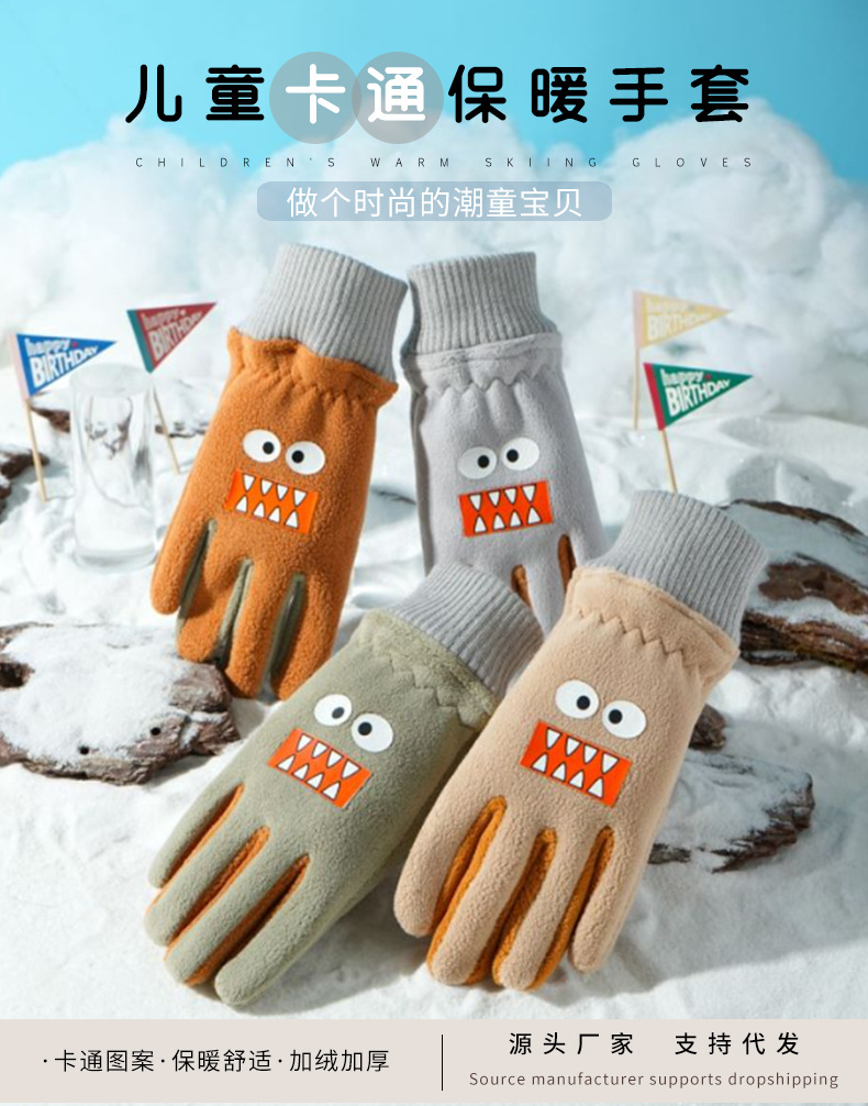 어린이 장갑 가을과 겨울 야외 승마 폴라 양털 따뜻한 방풍 소년 소녀 코튼 스키 만화 귀여운 도매
