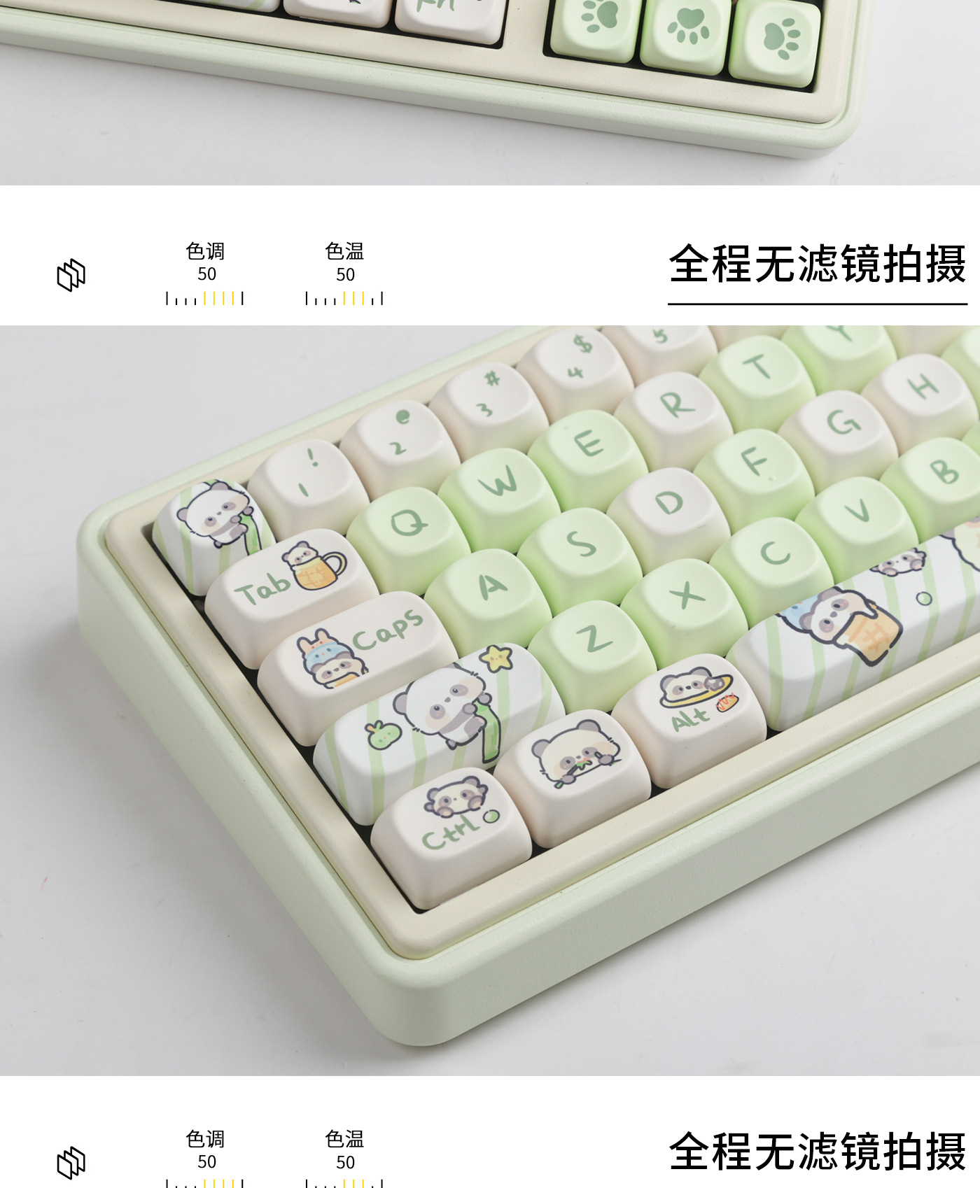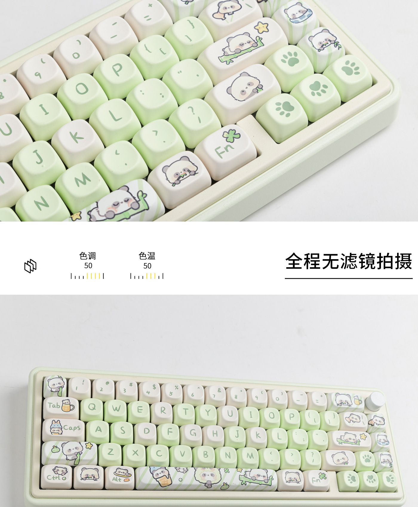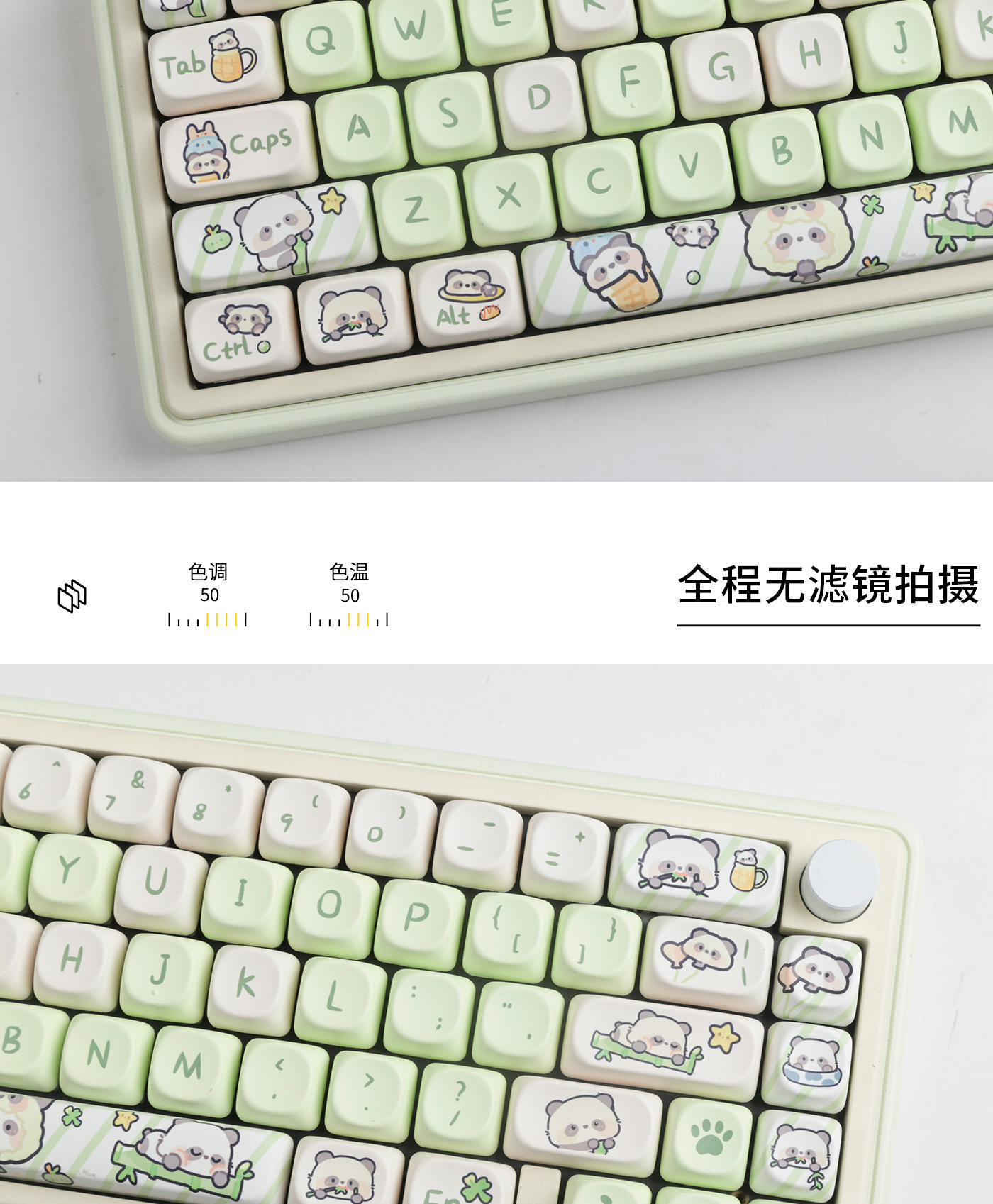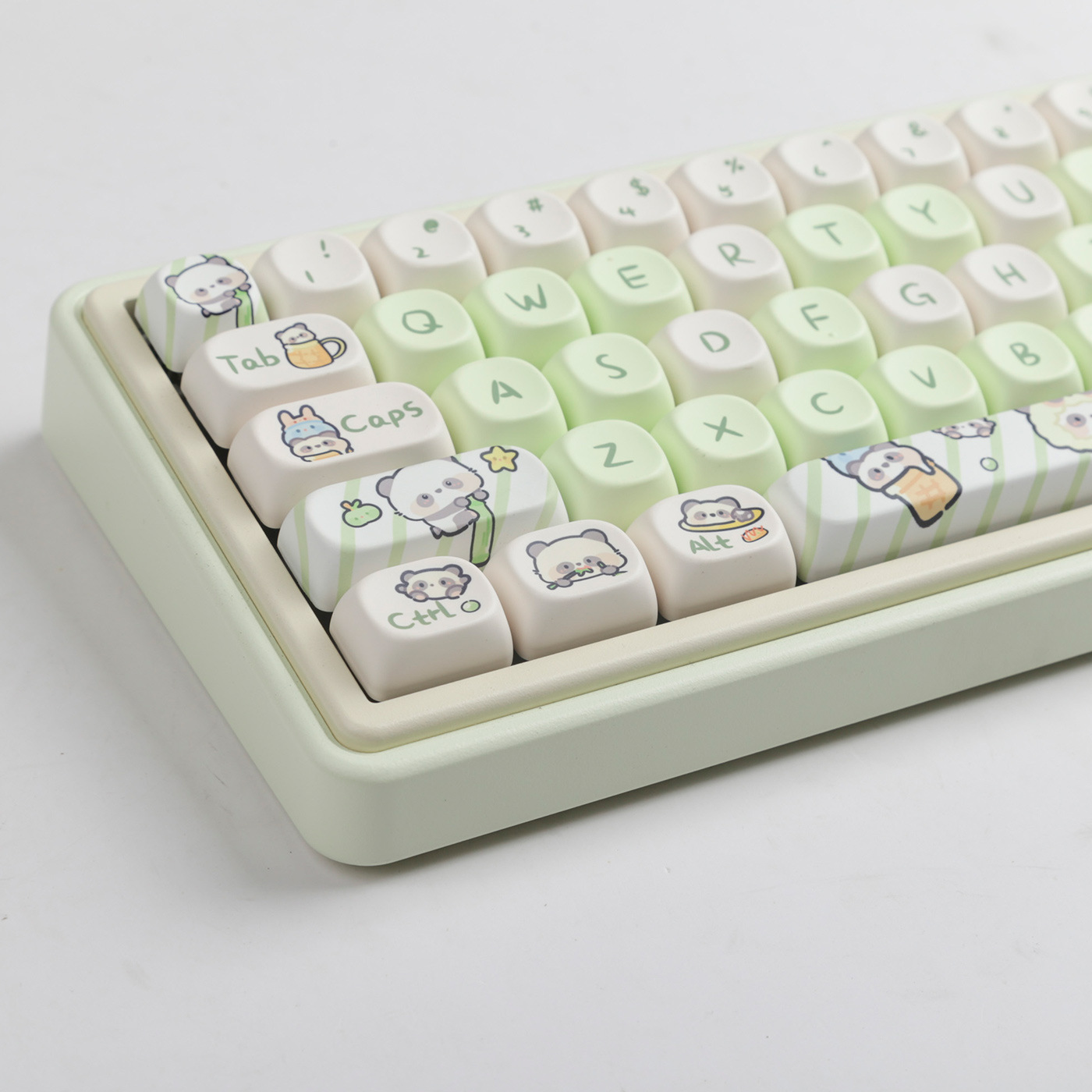 모에 그린 팬더 테마 키 캡 새로운 MOA 높이 PBT 승화 귀여운 라이트 그린 팬더 성격 기계 키보드 캡