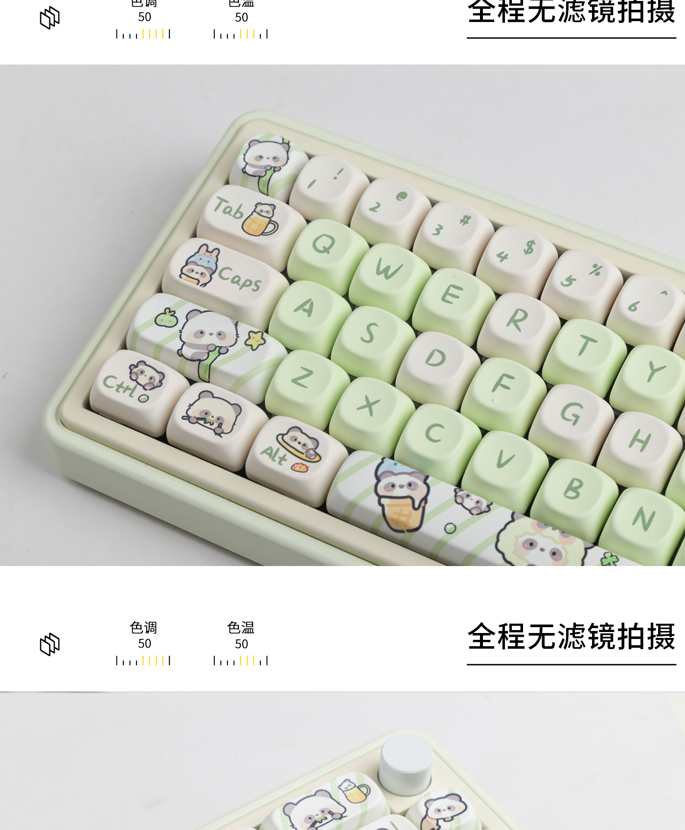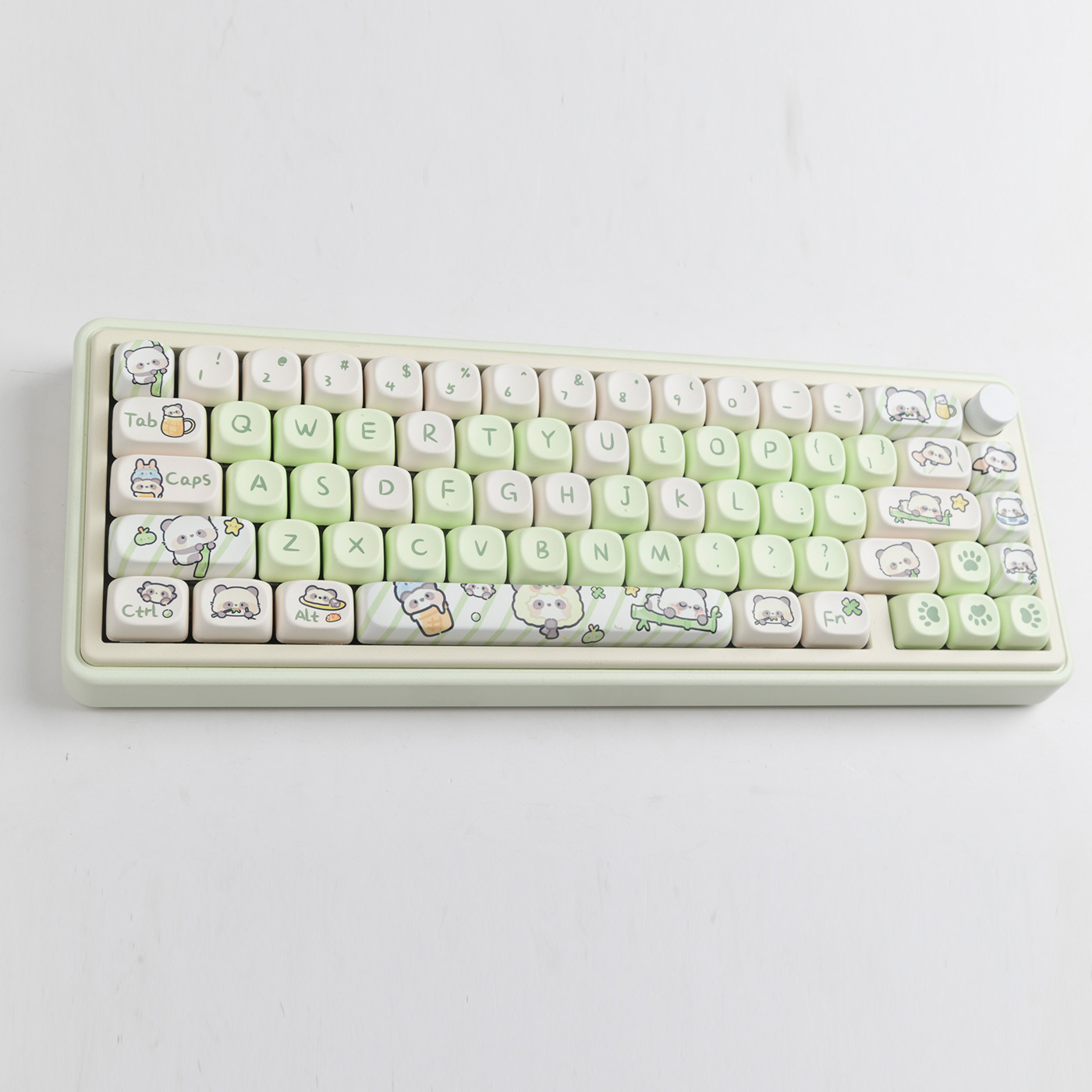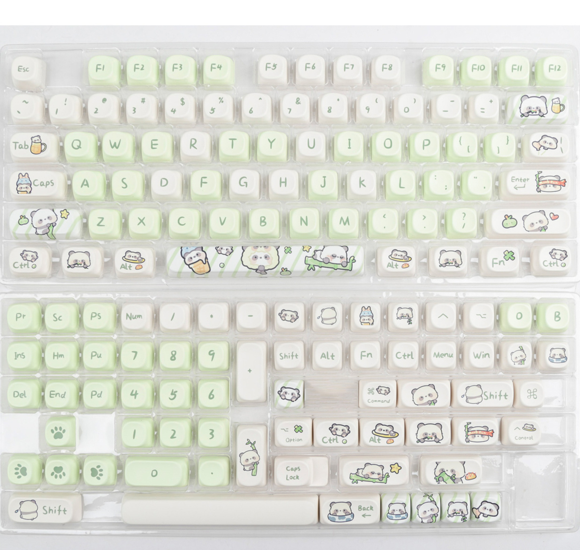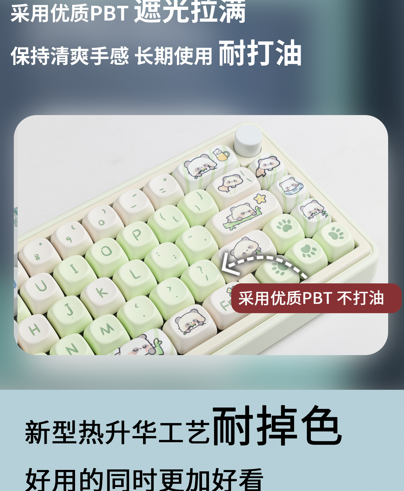 모에 그린 팬더 테마 키 캡 새로운 MOA 높이 PBT 승화 귀여운 라이트 그린 팬더 성격 기계 키보드 캡