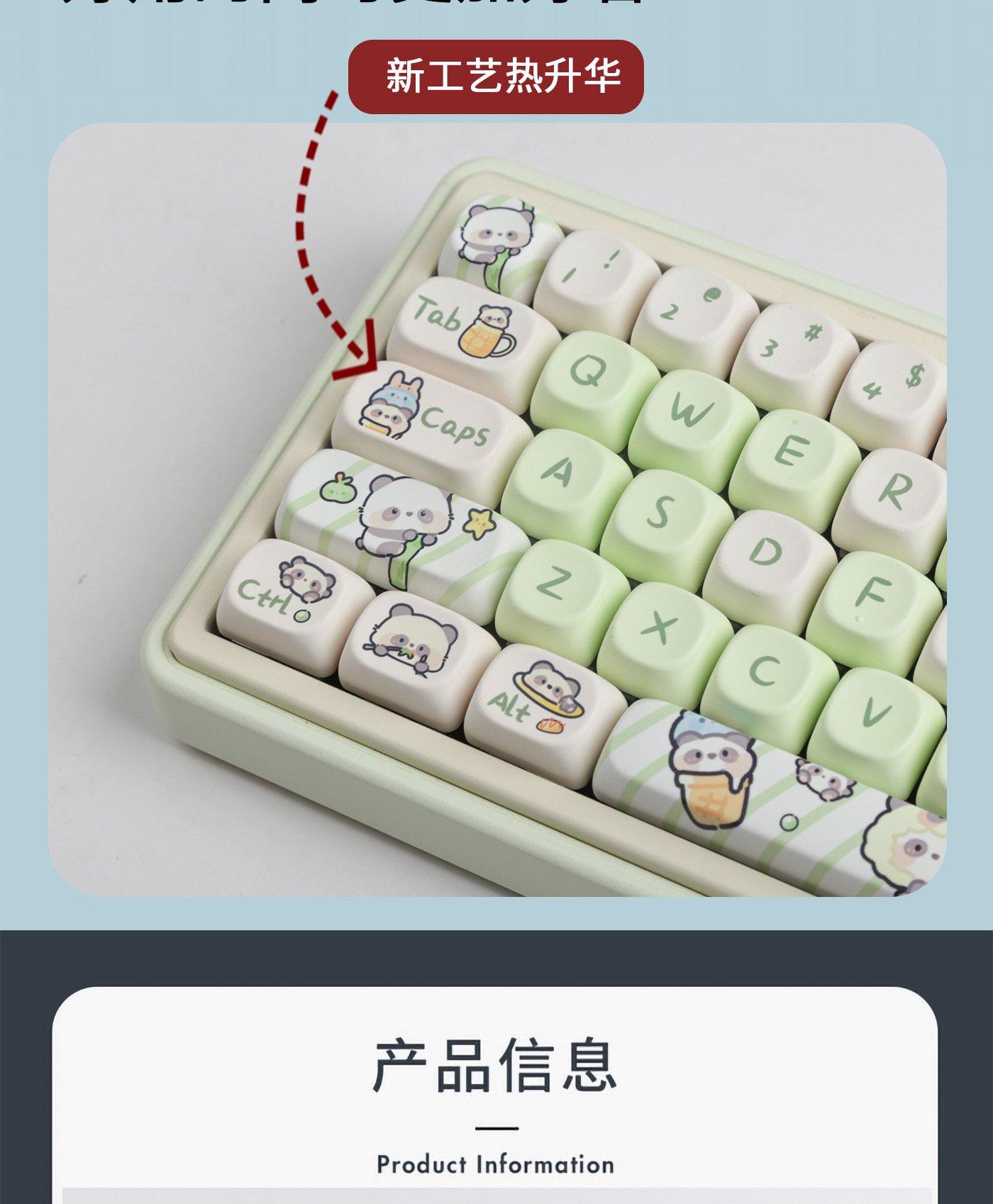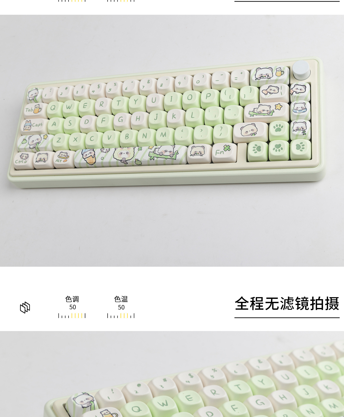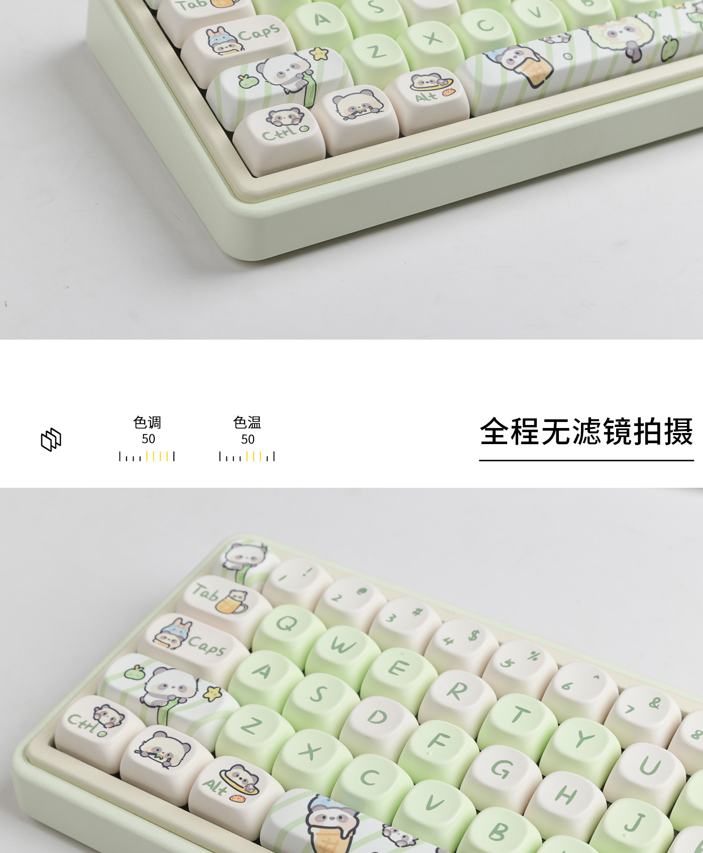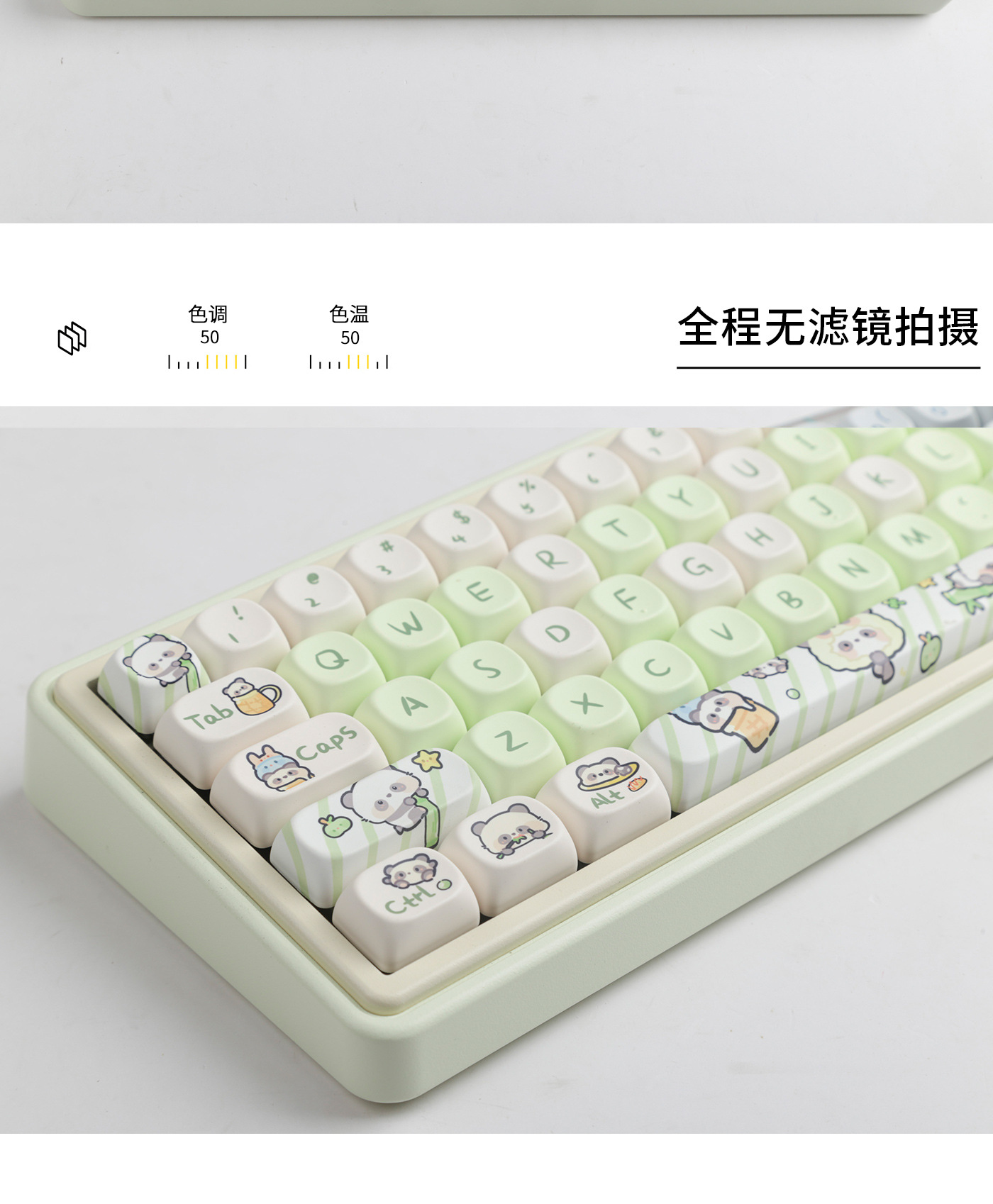 모에 그린 팬더 테마 키 캡 새로운 MOA 높이 PBT 승화 귀여운 라이트 그린 팬더 성격 기계 키보드 캡