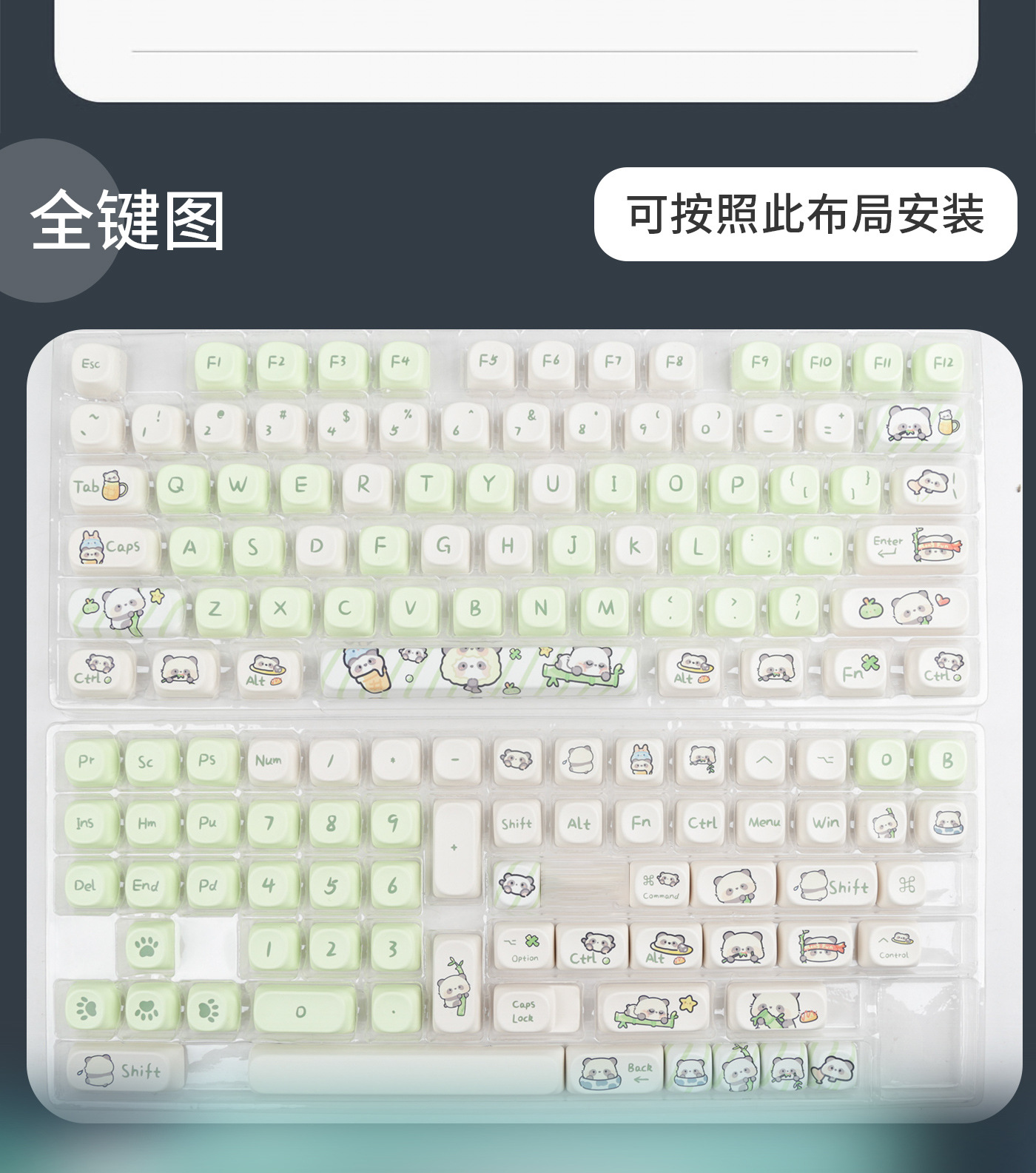 모에 그린 팬더 테마 키 캡 새로운 MOA 높이 PBT 승화 귀여운 라이트 그린 팬더 성격 기계 키보드 캡스토어 가기