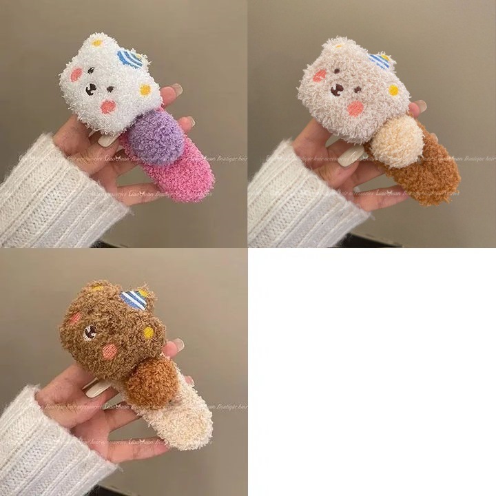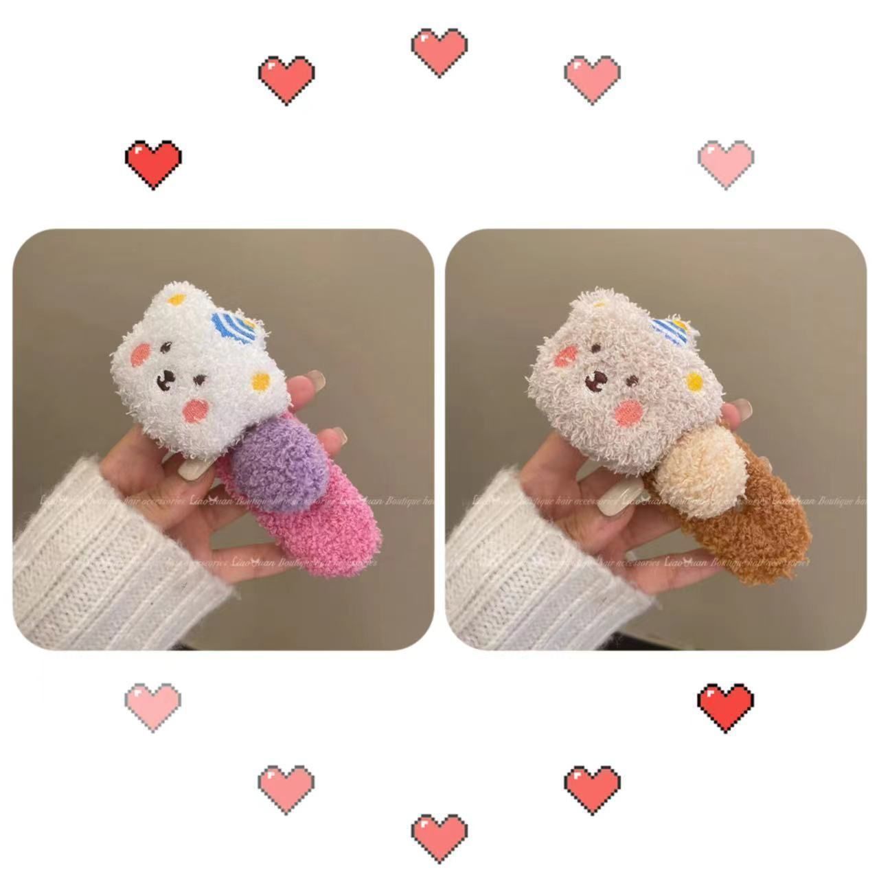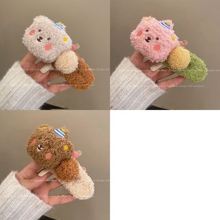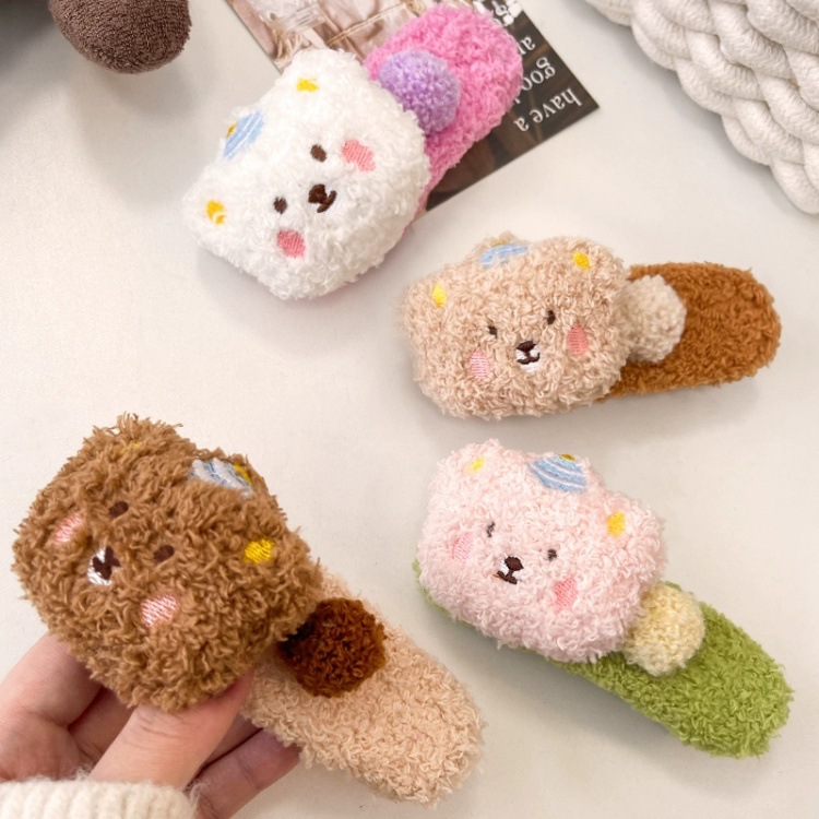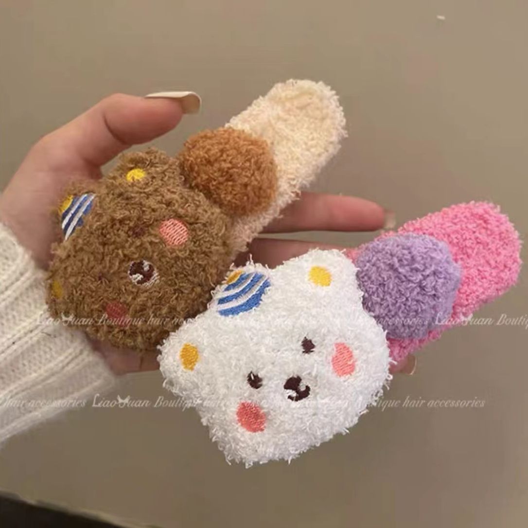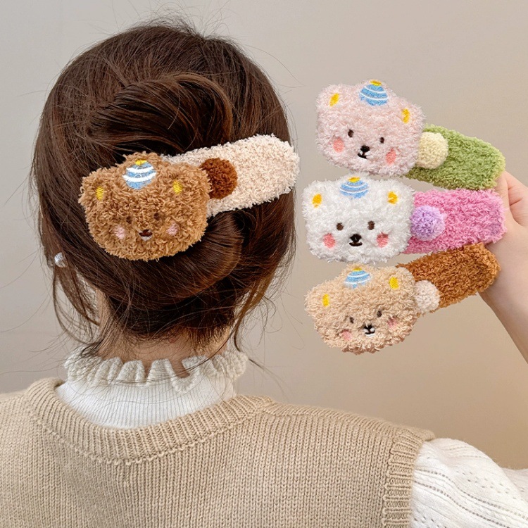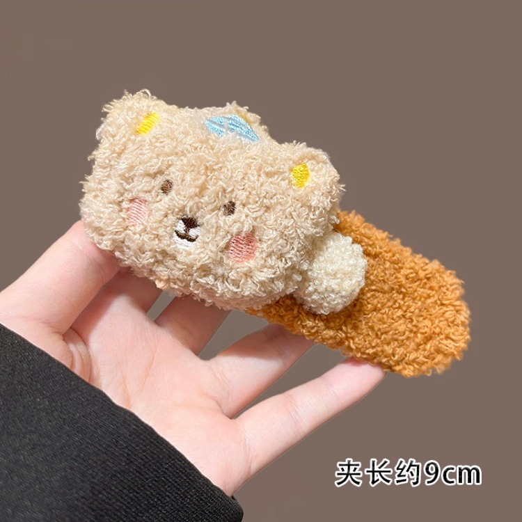라이트 베이지 봉제 곰 헤어 클립 헤어 액세서리 가을과 겨울 여성 만화 오리 지폐 클립 사이드 앞머리 깨진 헤어 클립