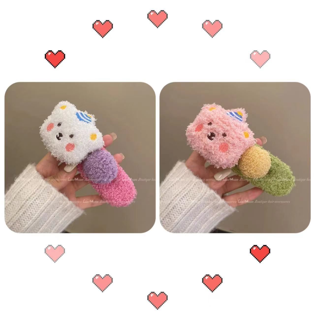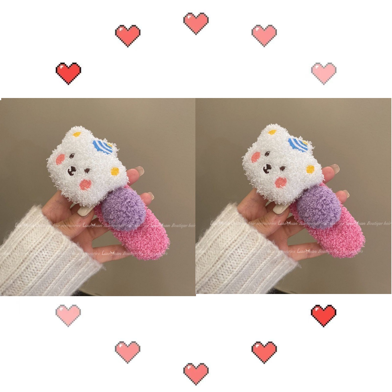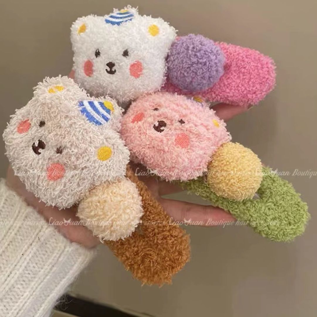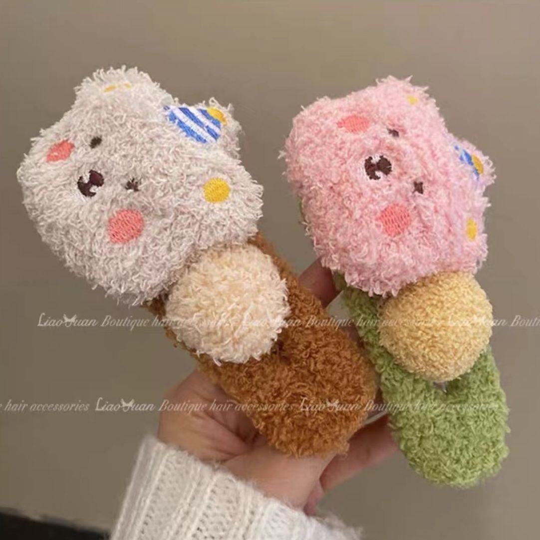 라이트 베이지 봉제 곰 헤어 클립 헤어 액세서리 가을과 겨울 여성 만화 오리 지폐 클립 사이드 앞머리 깨진 헤어 클립