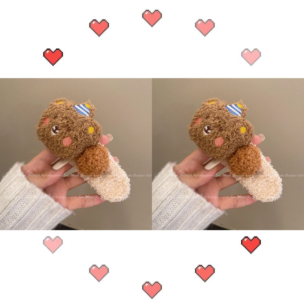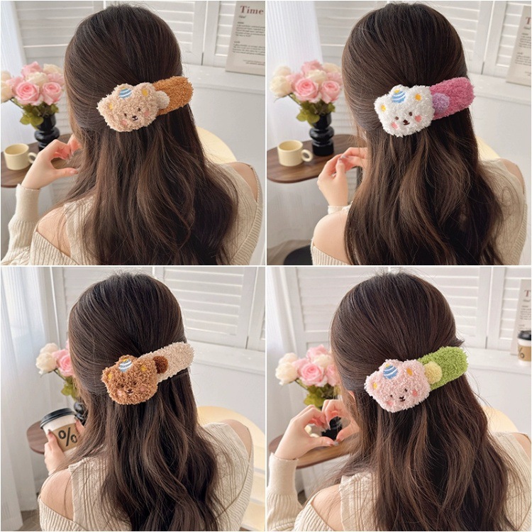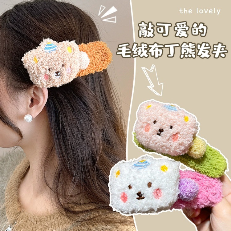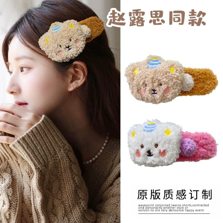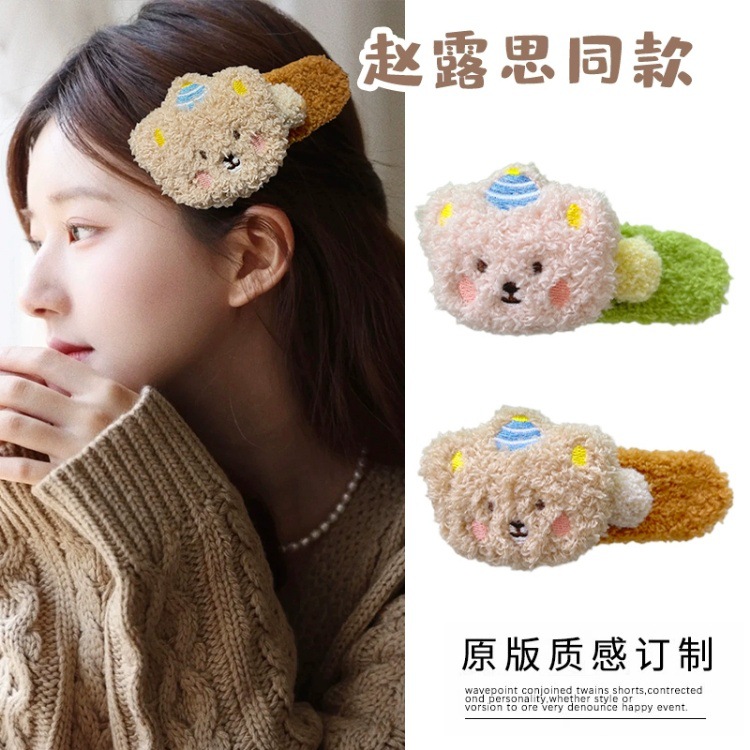 라이트 베이지 봉제 곰 헤어 클립 헤어 액세서리 가을과 겨울 여성 만화 오리 지폐 클립 사이드 앞머리 깨진 헤어 클립스토어 가기