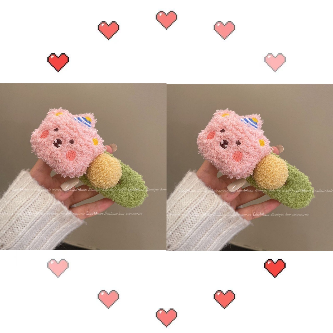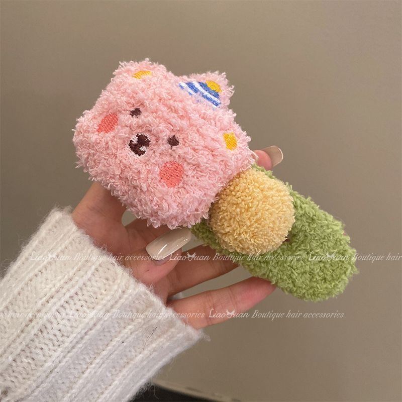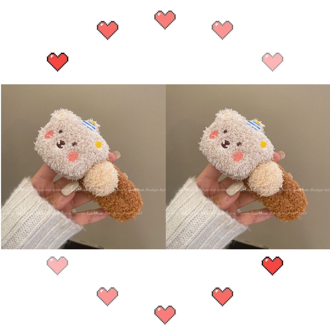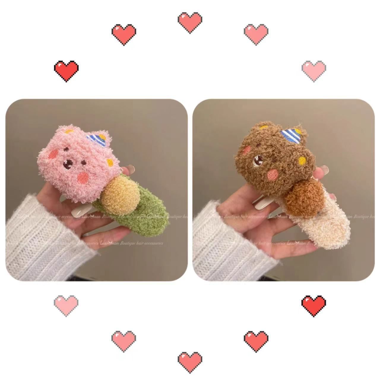라이트 베이지 봉제 곰 헤어 클립 헤어 액세서리 가을과 겨울 여성 만화 오리 지폐 클립 사이드 앞머리 깨진 헤어 클립스토어 가기