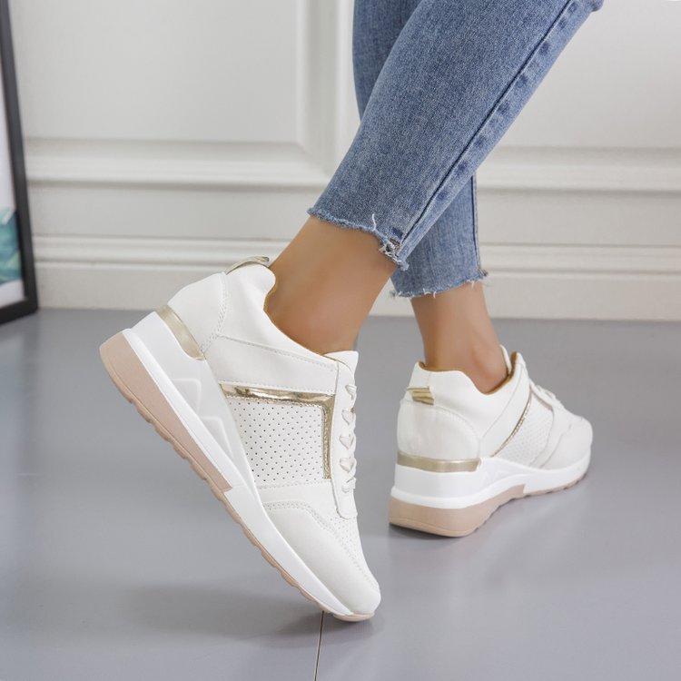 유럽과 미국의 대외 무역 플러스 사이즈 캐주얼 두꺼운 통기성 운동화 여성용 웨지 레이스 업 메쉬 컬러 매칭 신발 소원 공급스토어 가기