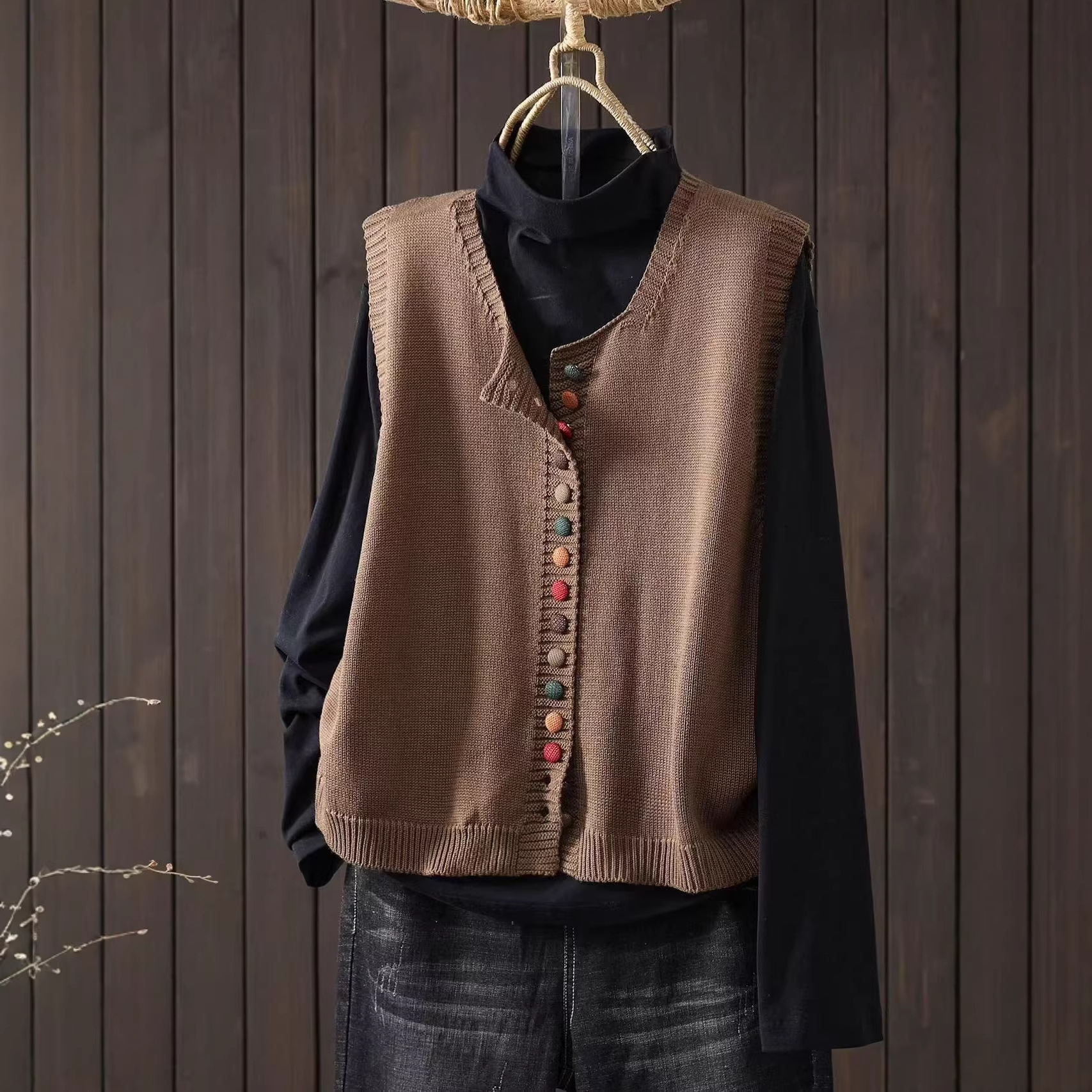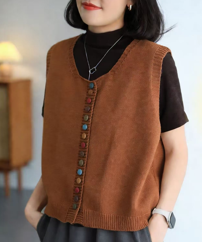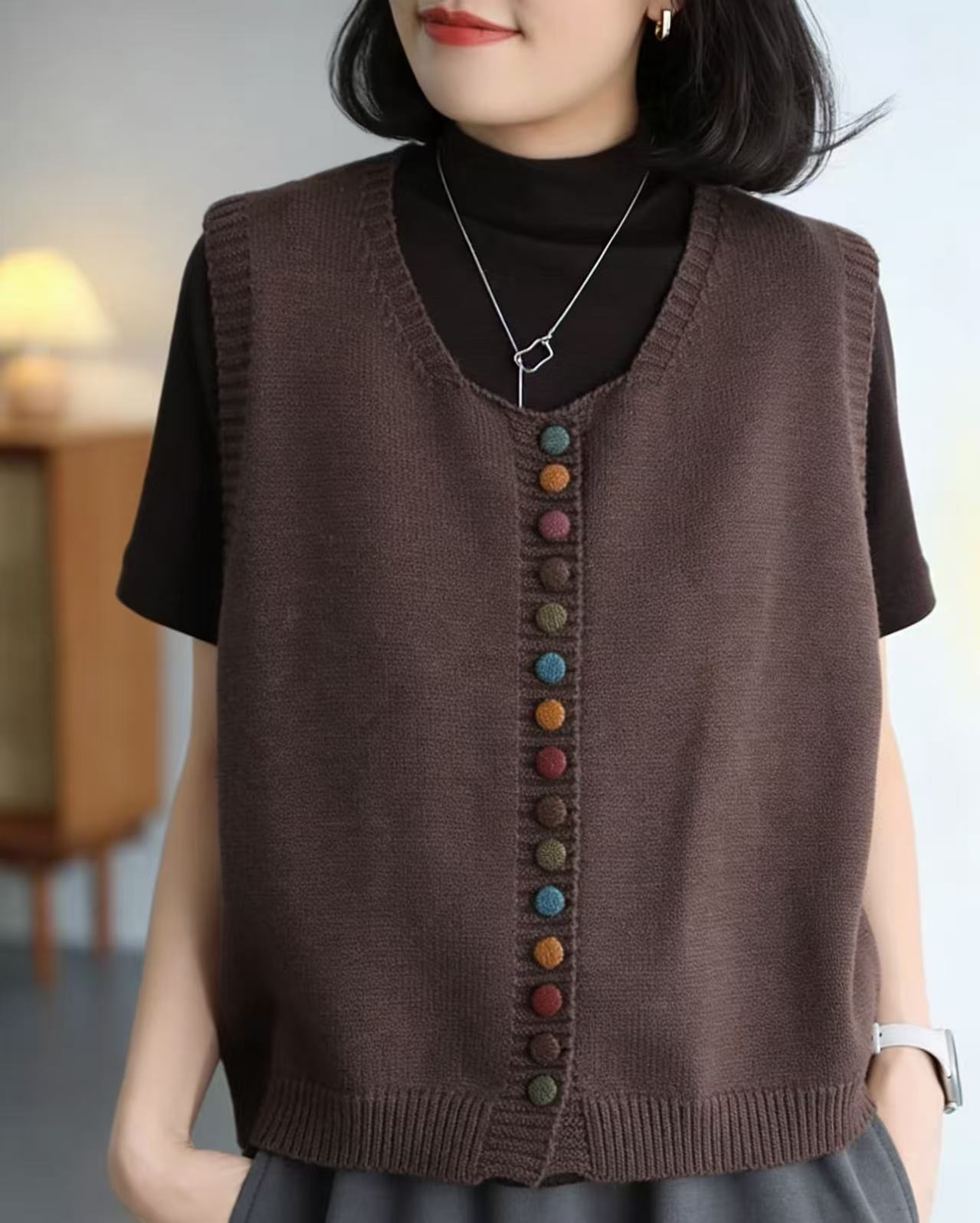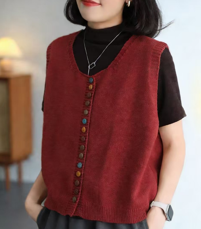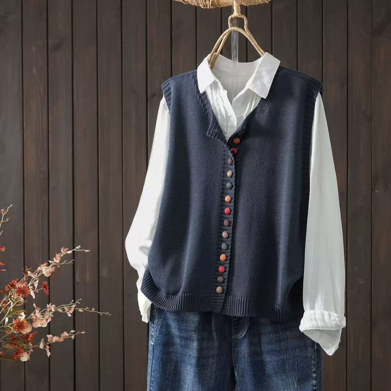 화려한 버튼 코튼 니트 조끼 여성의 느슨한 슬리밍 가을 예술적 캐주얼 스택 민소매 조끼스토어 가기