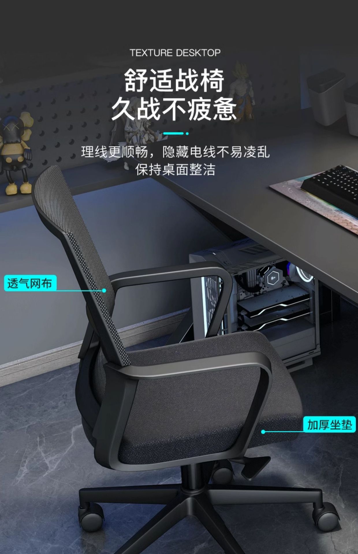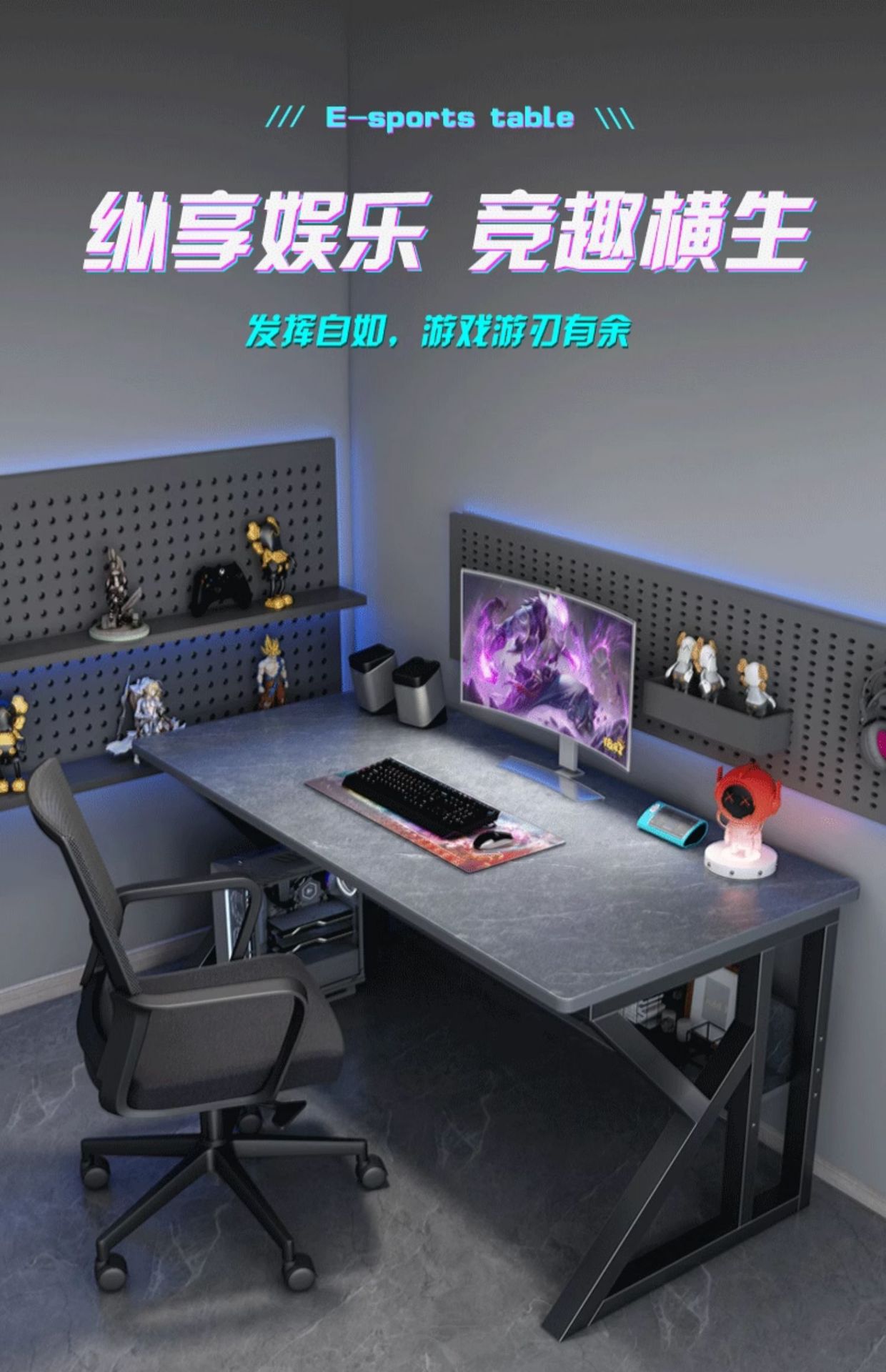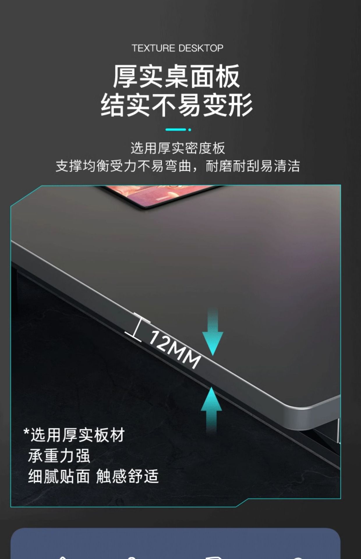 • [40MM 두꺼운 다리! 1.5cm 두께의 데스크탑] 고급 그레이 + 블랙 프레임 100cm