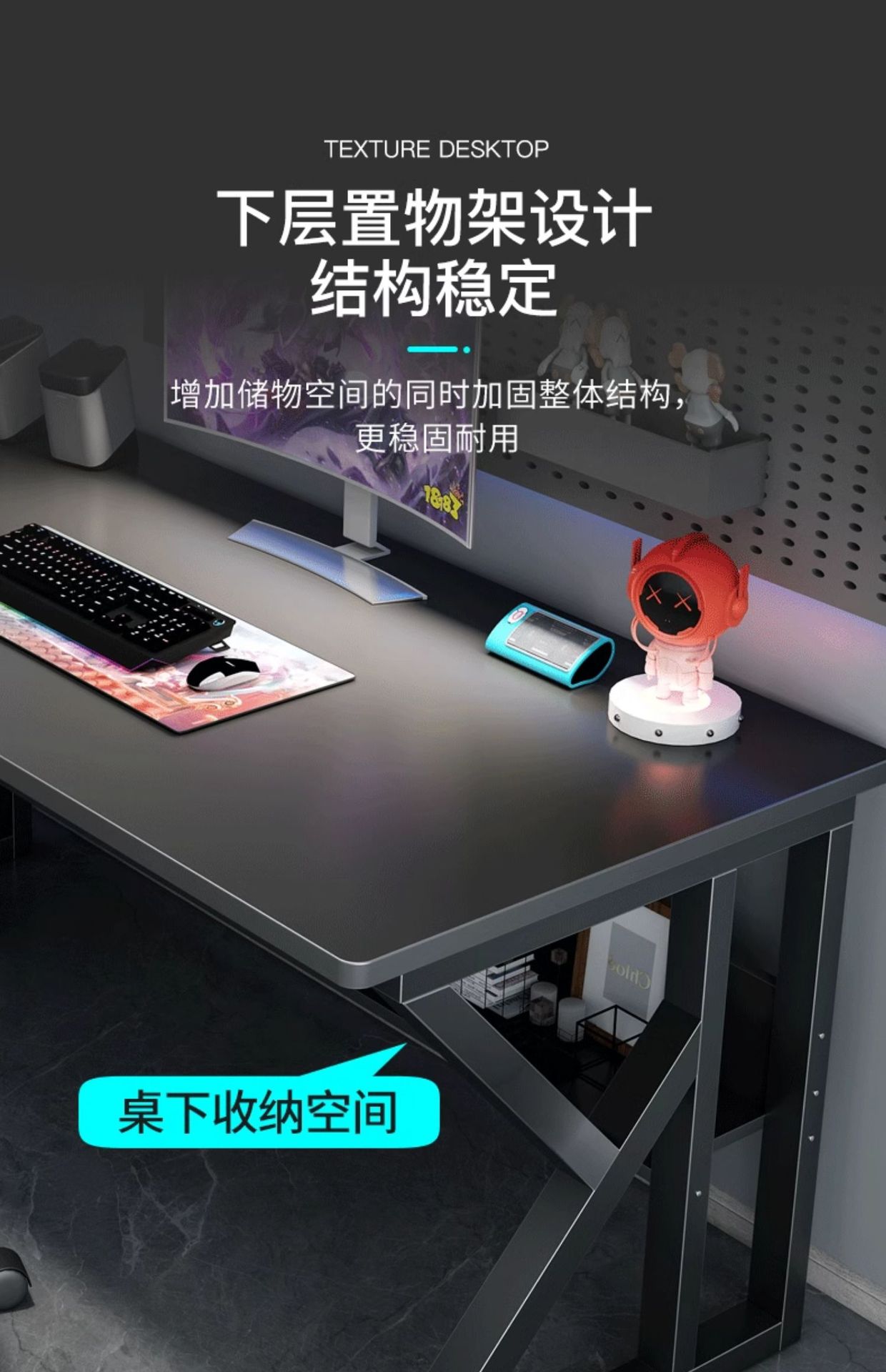 • [40MM 두꺼운 다리! 업그레이드된 수납공간] 블랙 140cm