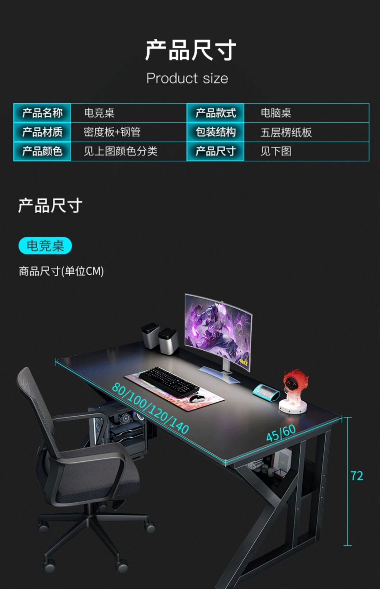 • [대외 무역 품질! 40MM 두꺼운 다리! 1.5cm 두께의 데스크탑] 100×60cm 블랙 + 블랙 프레임