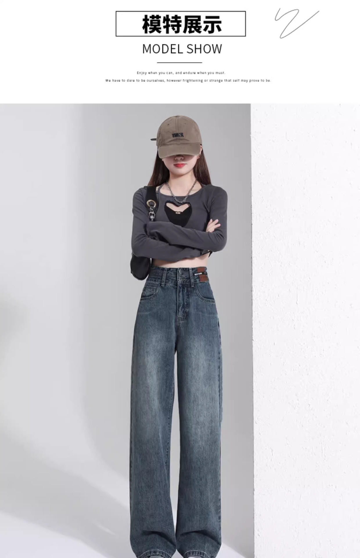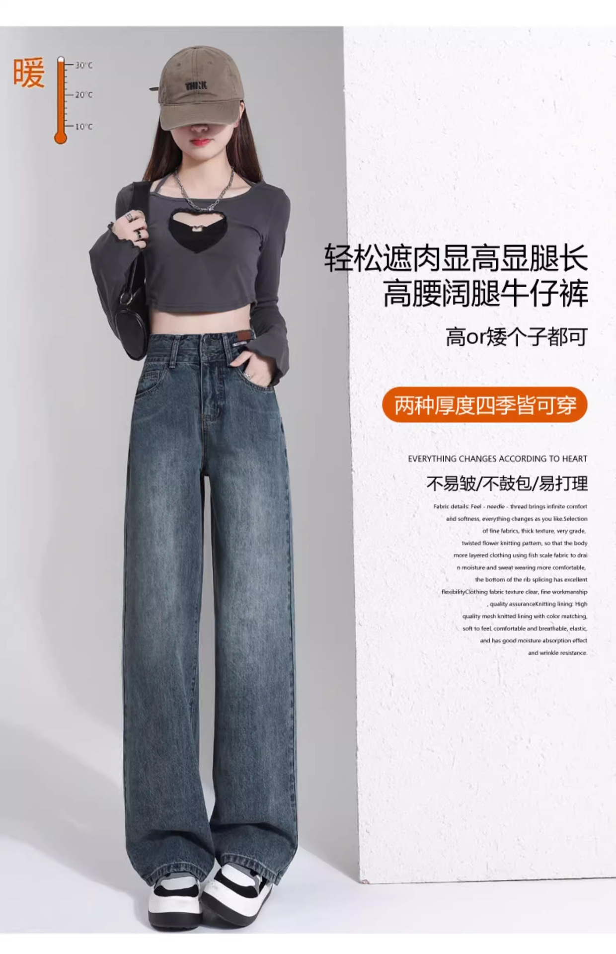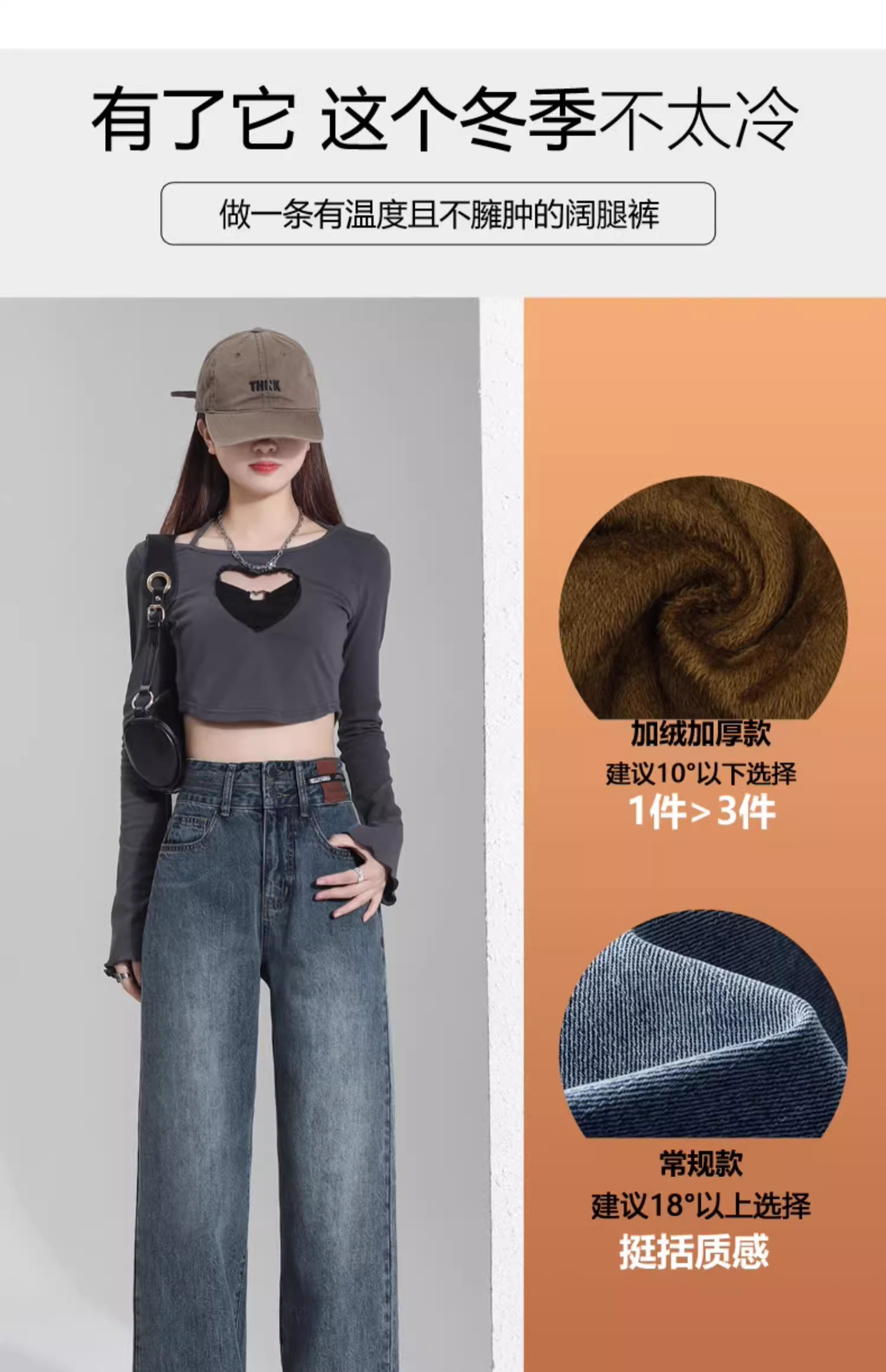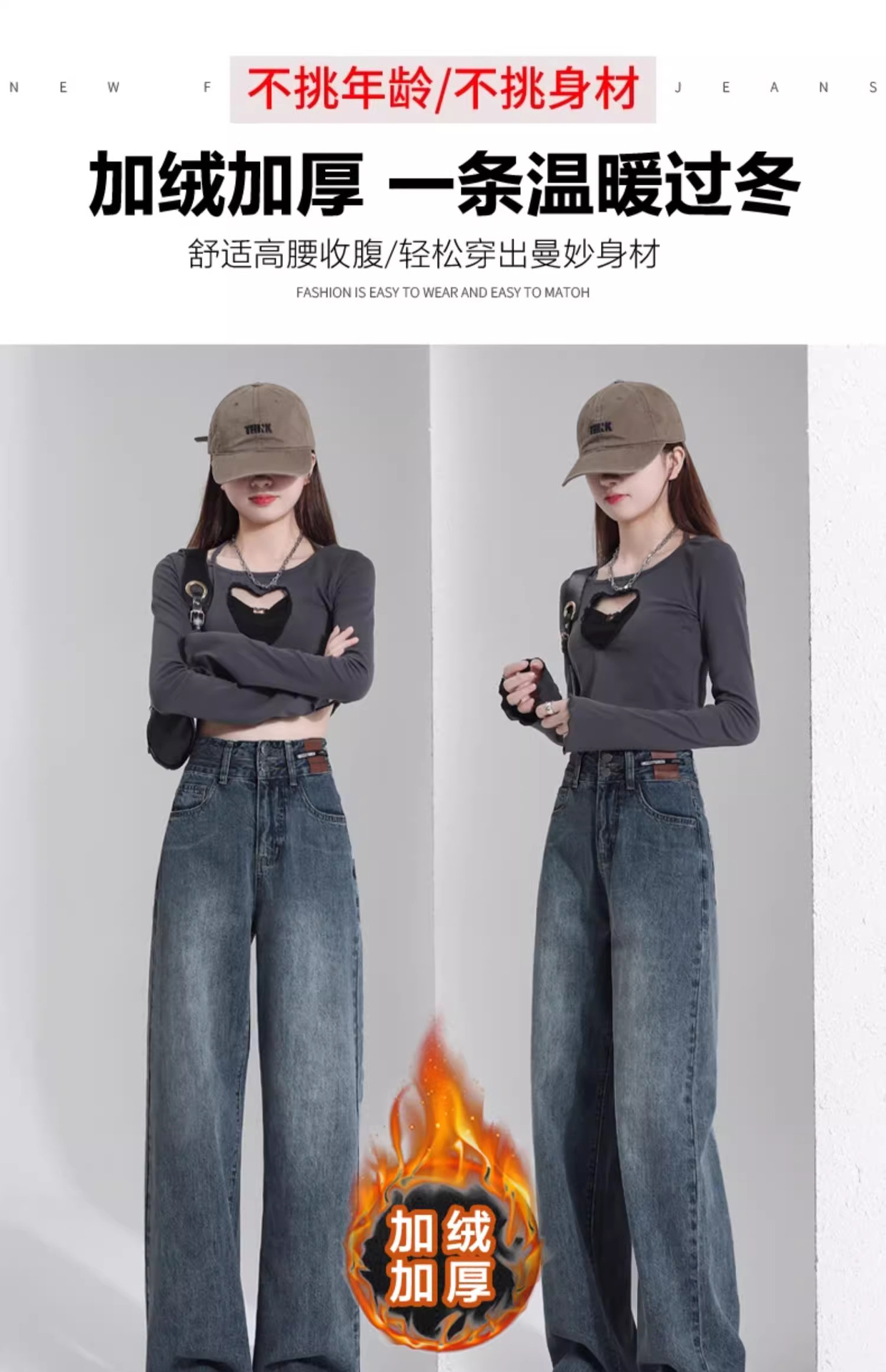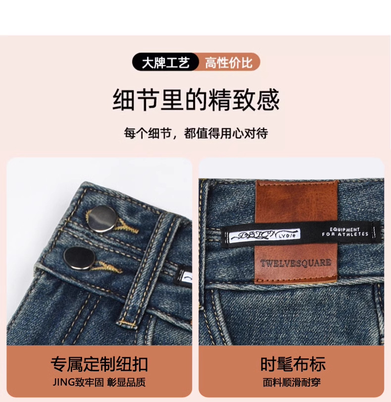 빈티지 더블 브레스트 기모 하이 웨이스트 와이드 레그 청바지 여성의 가을과 겨울 2024 유행 새로운 올 매치 스트레이트 바지스토어 가기