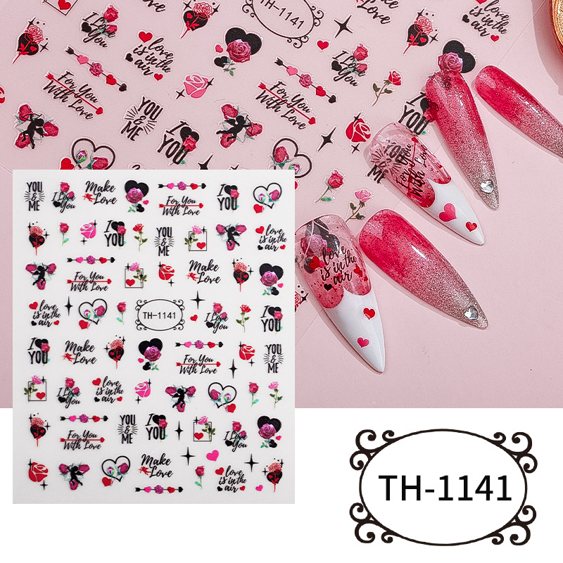 Zhengxiang 특별 발렌타인 데이 네일 아트 스티커 OEM 사용자 정의 사랑 로즈 HENA 스티커 유럽과 미국 INS 바람 네일 아트 스티커