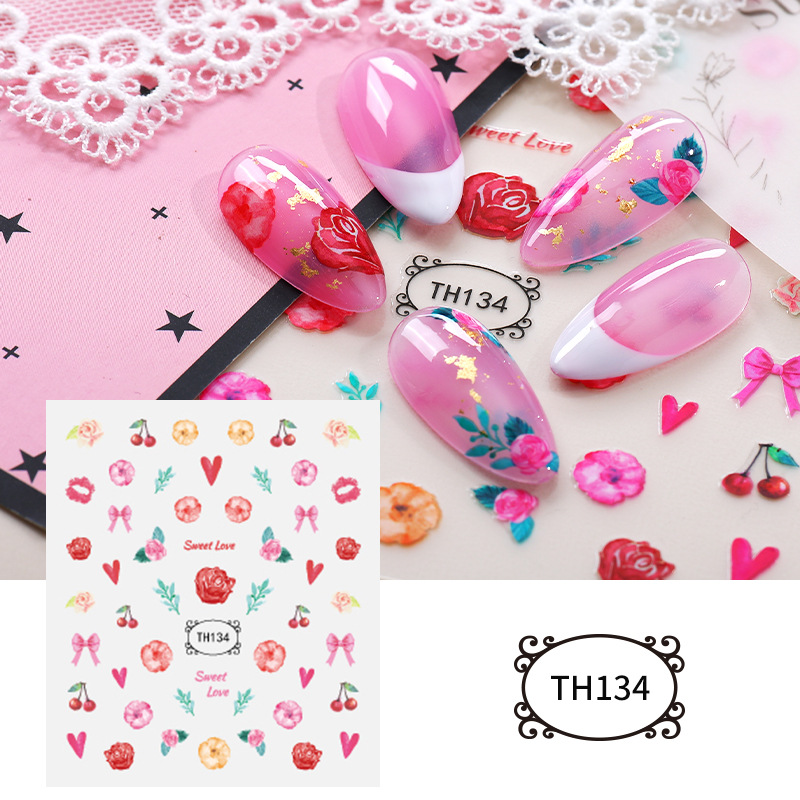 Zhengxiang 특별 발렌타인 데이 네일 아트 스티커 OEM 사용자 정의 사랑 로즈 HENA 스티커 유럽과 미국 INS 바람 네일 아트 스티커스토어 가기