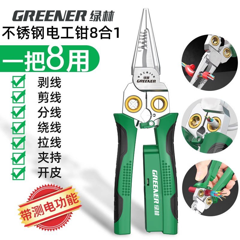 녹색 숲 와이어 스트리퍼 전기 기술자 특수 와이어 커터 케이블 커터 와이어 스트리퍼 와이어 압착 펜치 새로운 다기능 전기 기술자 펜치스토어 가기