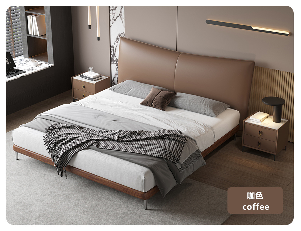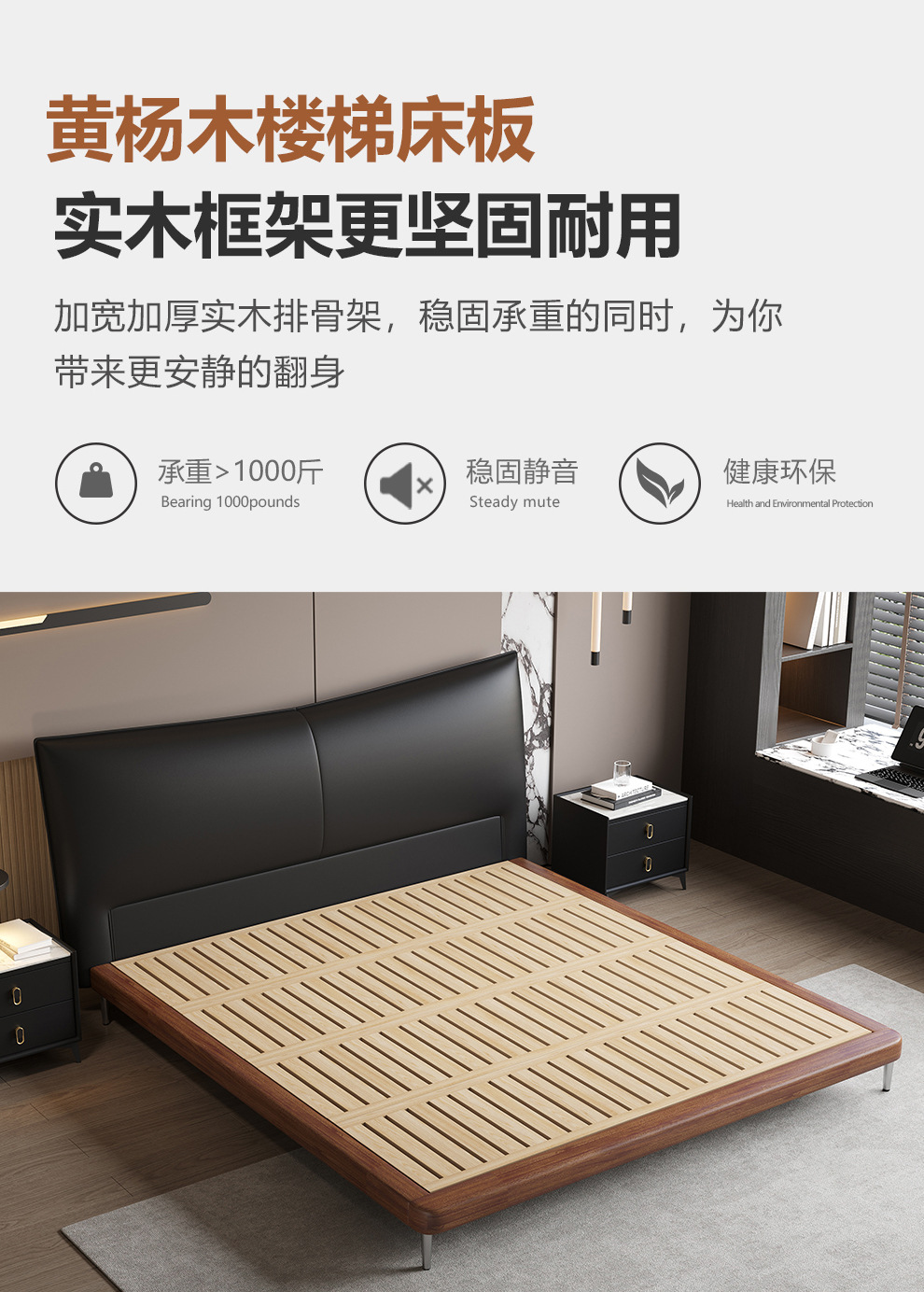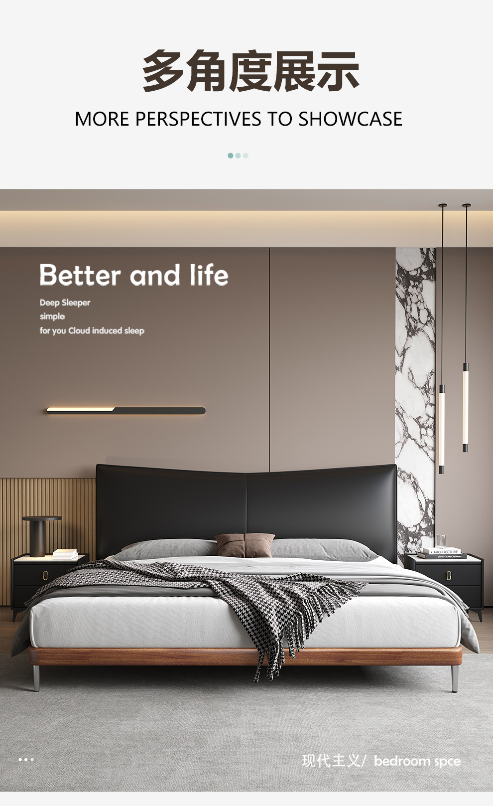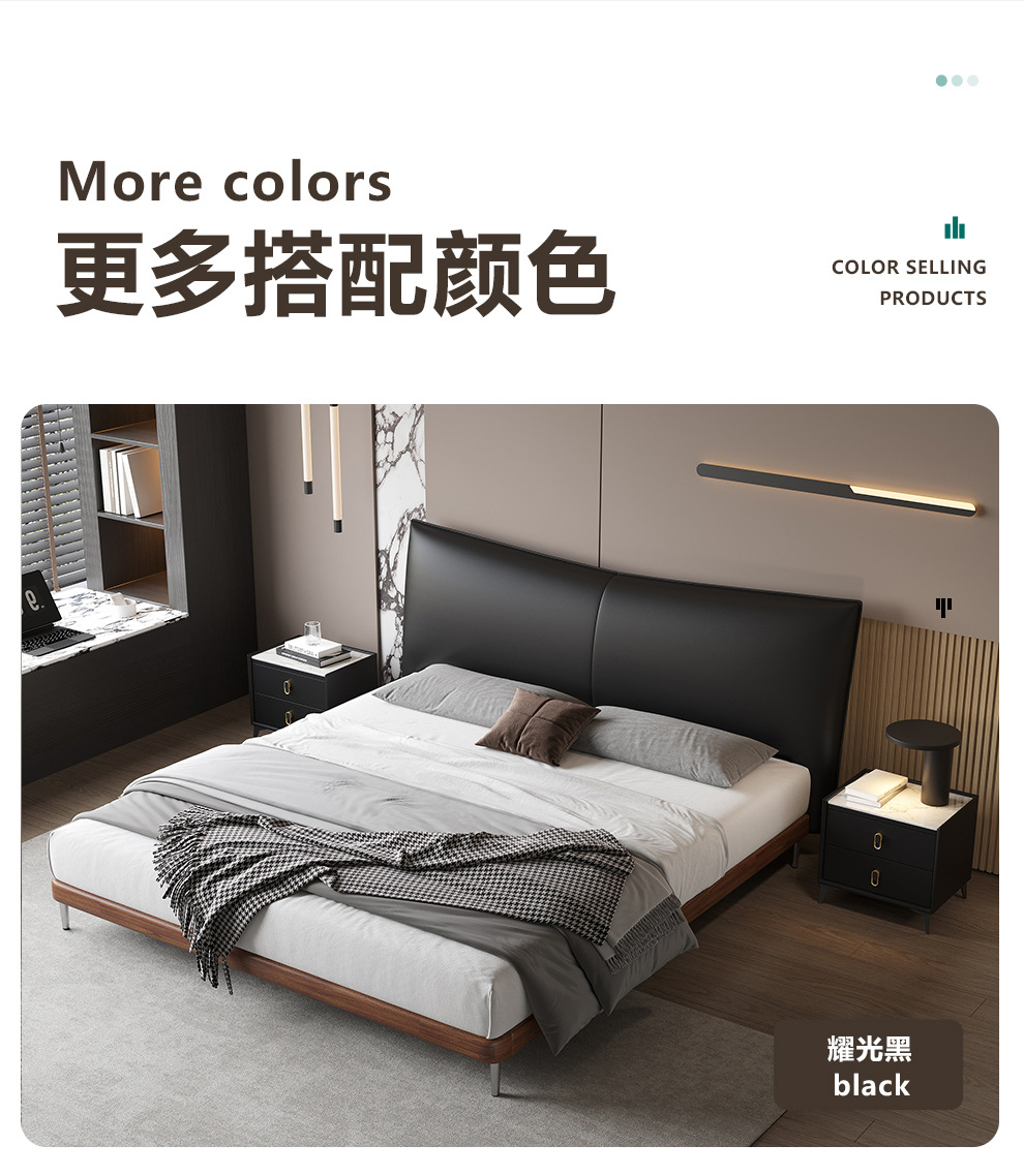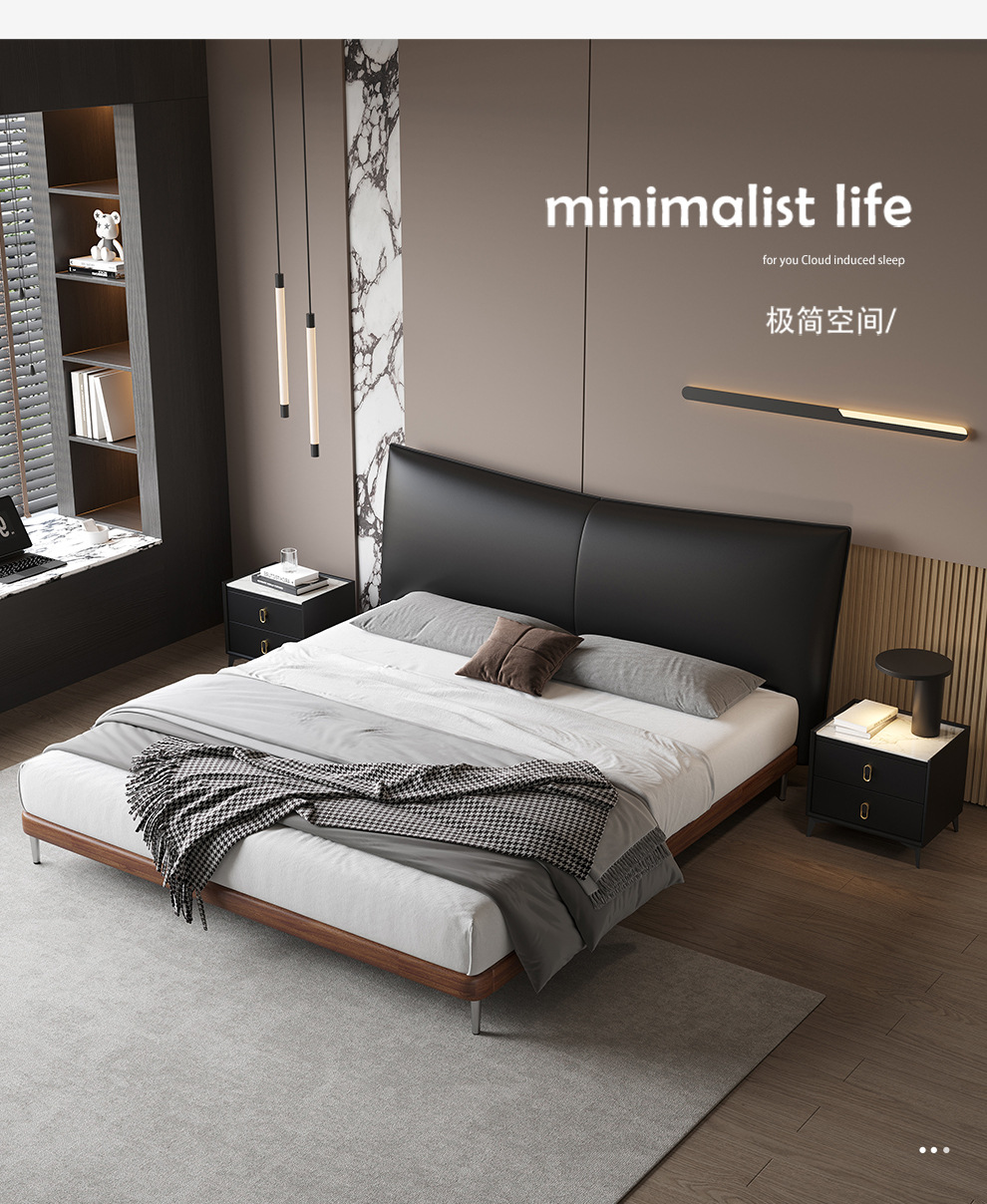 새로운 스타일 가죽 침대 현대 미니멀리스트 블랙 가죽 침대 크고 작은 아파트 마스터 침실 소프트 백 레트로 더블 침대 솔리드 우드 빅 침대스토어 가기