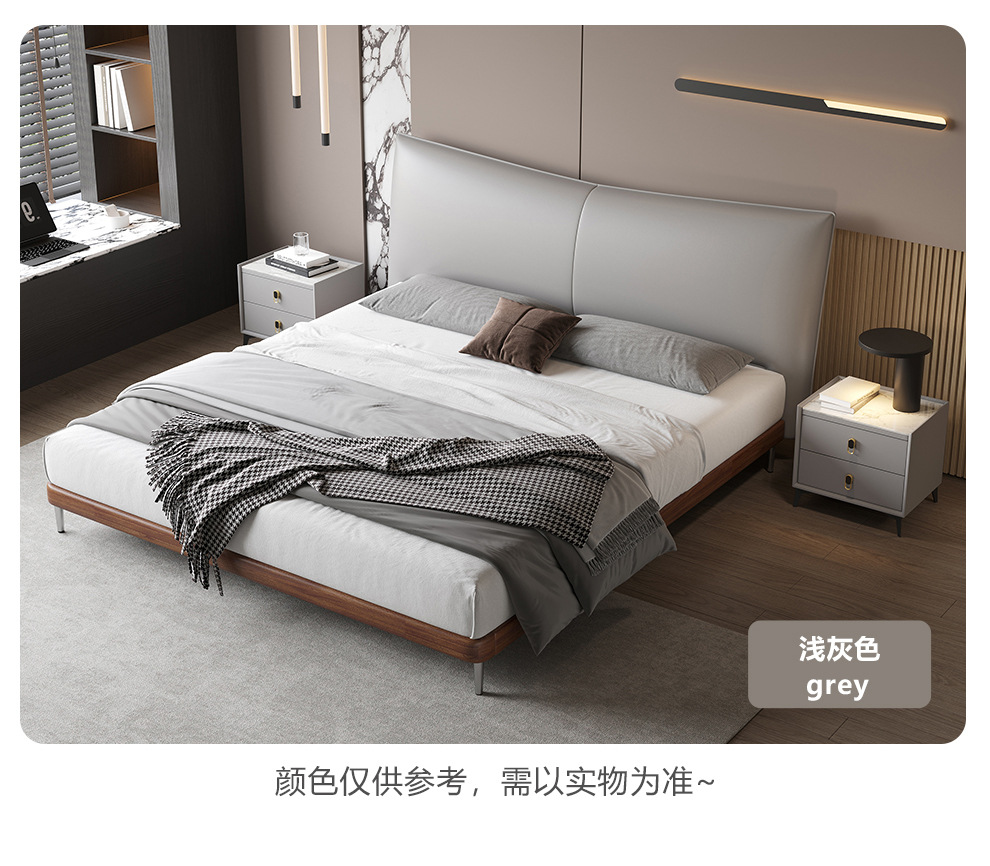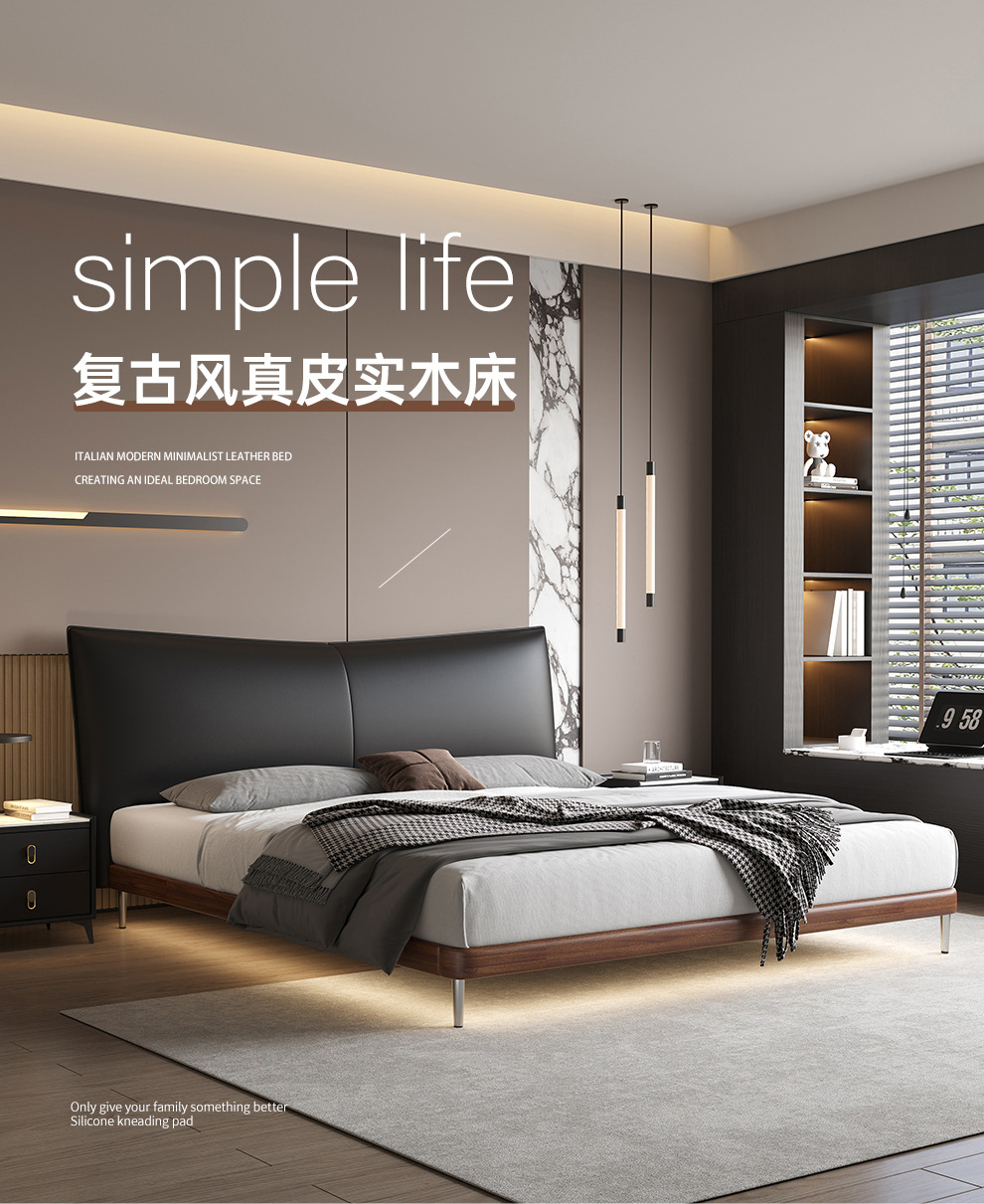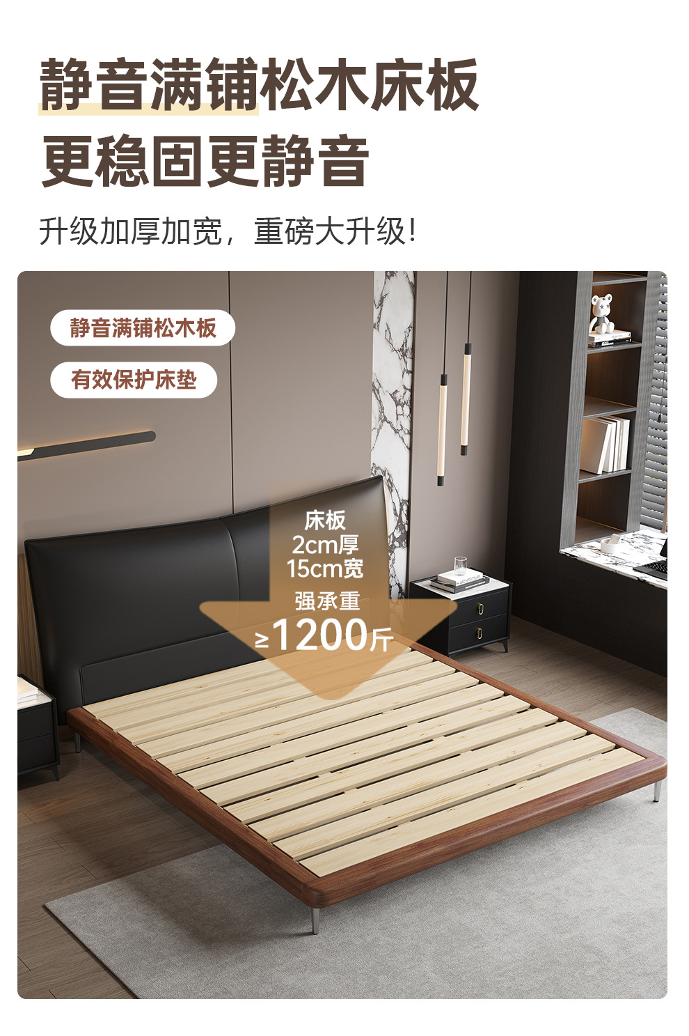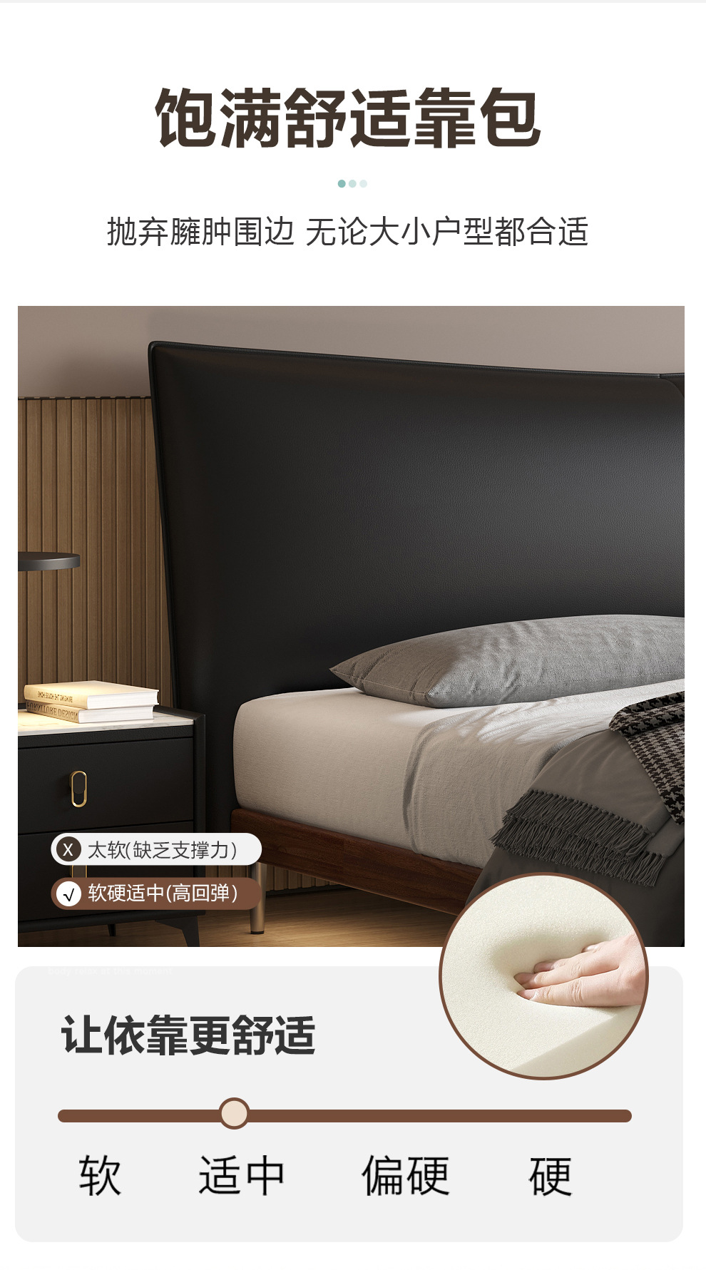 새로운 스타일 가죽 침대 현대 미니멀리스트 블랙 가죽 침대 크고 작은 아파트 마스터 침실 소프트 백 레트로 더블 침대 솔리드 우드 빅 침대스토어 가기