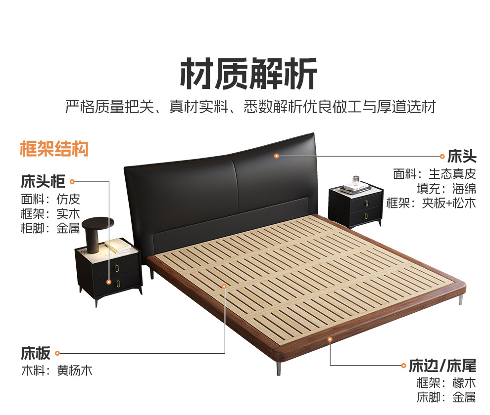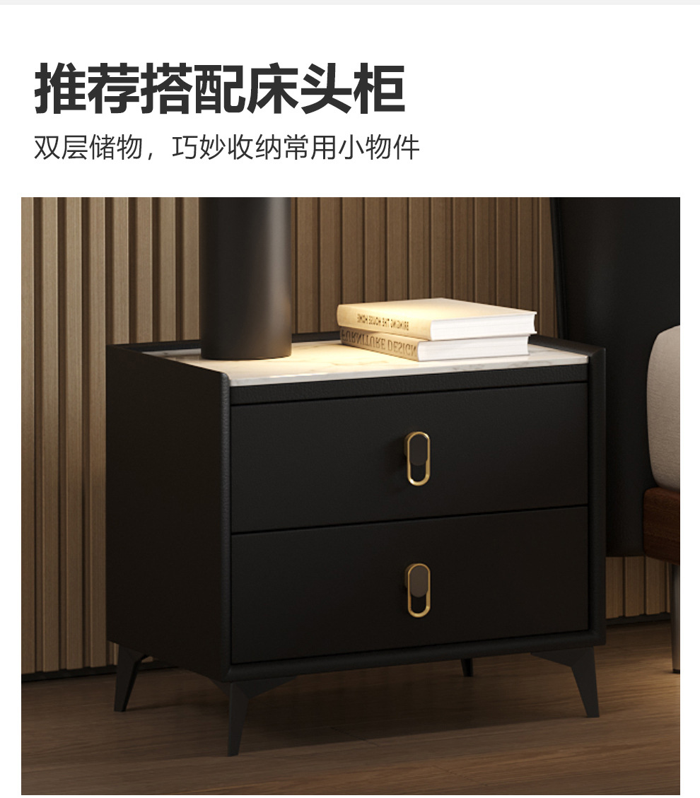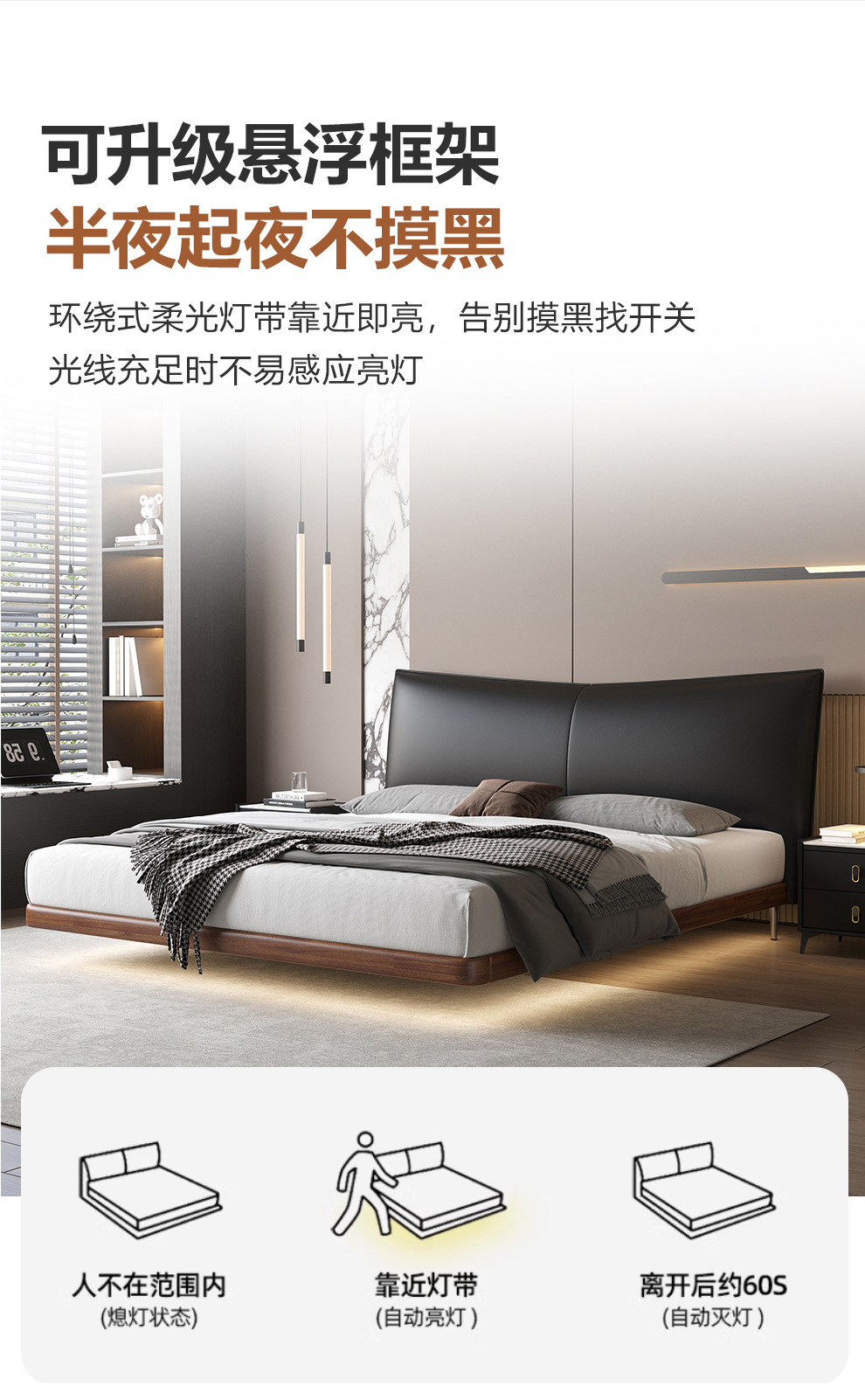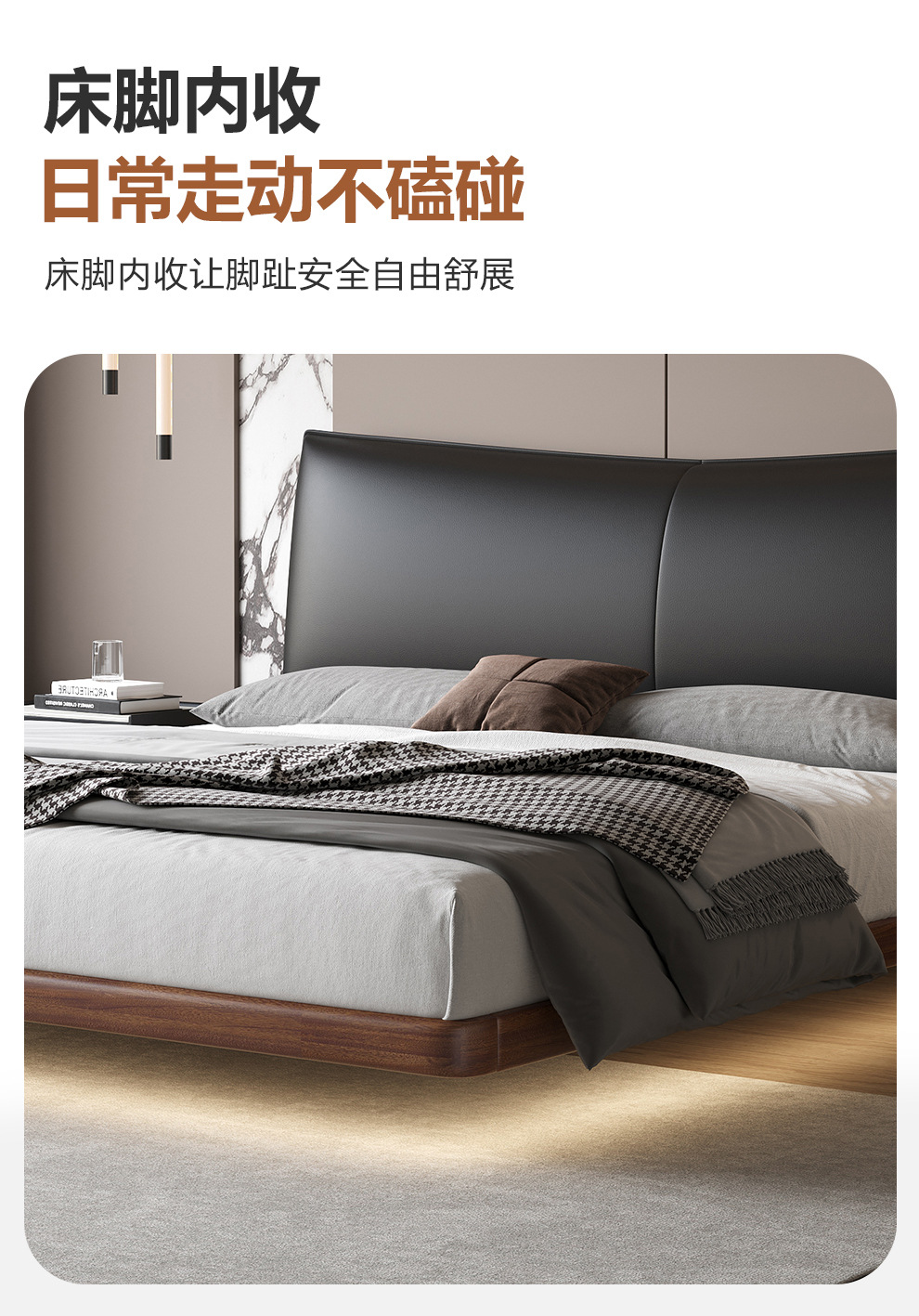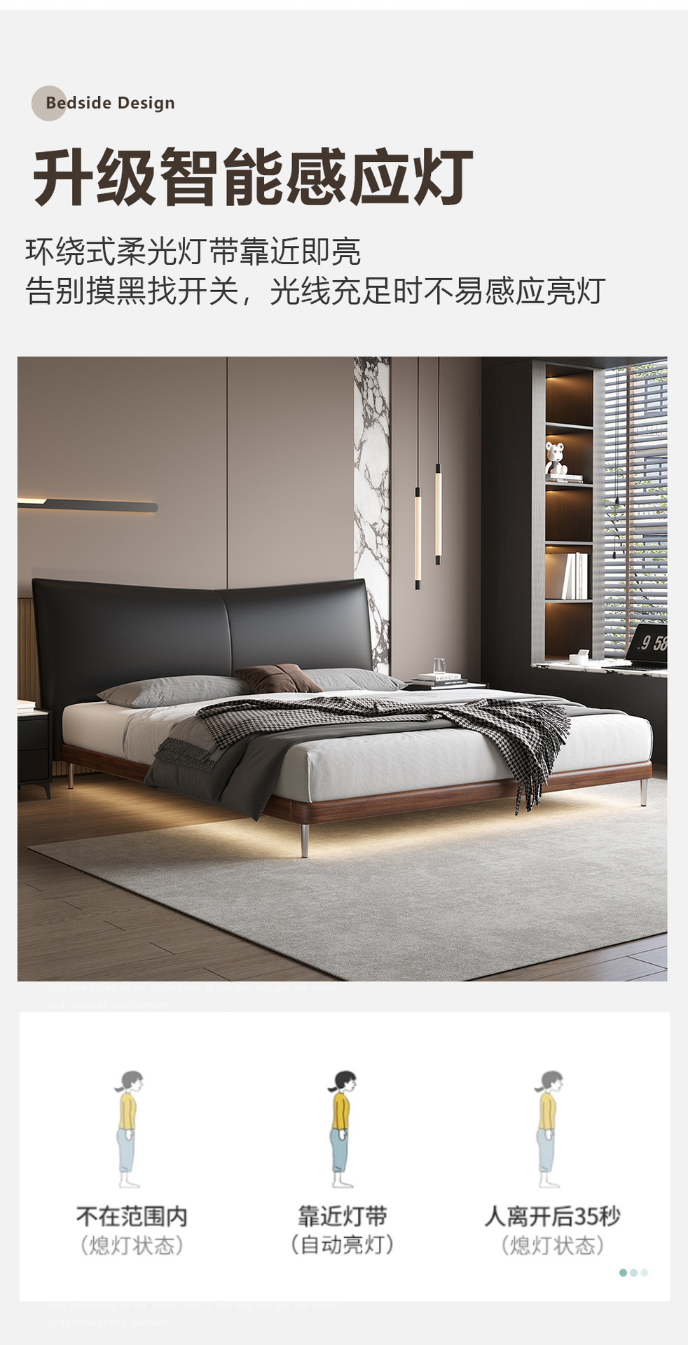새로운 스타일 가죽 침대 현대 미니멀리스트 블랙 가죽 침대 크고 작은 아파트 마스터 침실 소프트 백 레트로 더블 침대 솔리드 우드 빅 침대스토어 가기