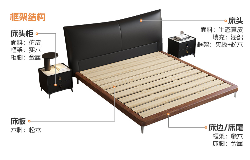 • 침대 + 20cm9D 라텍스 스프링 매트리스 + 침대협탁 2개
