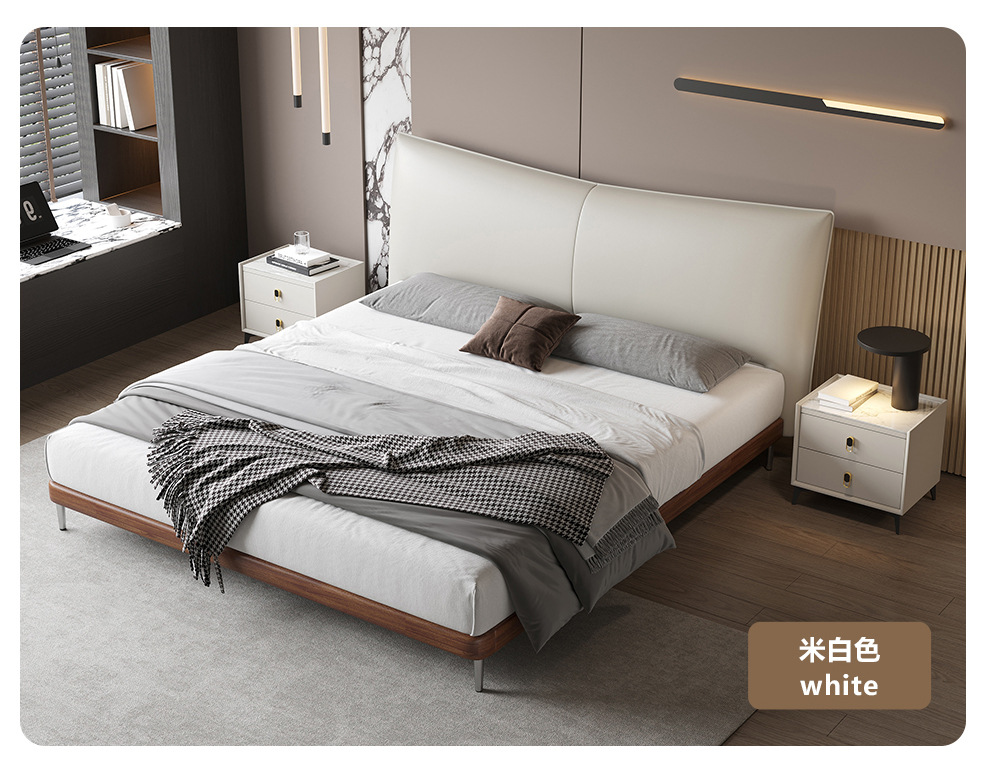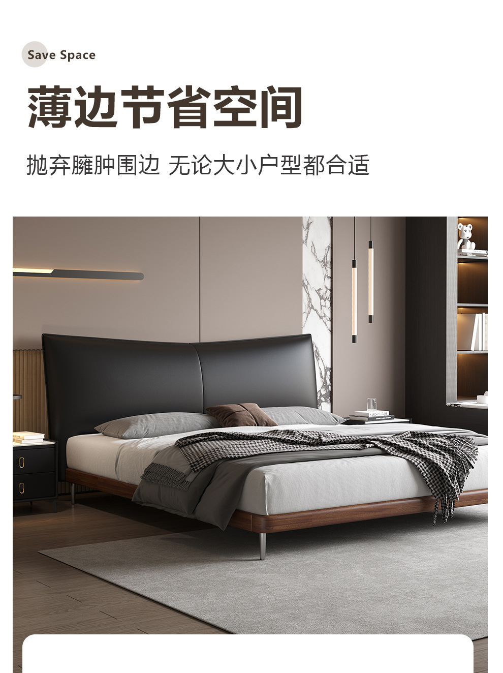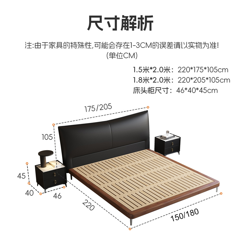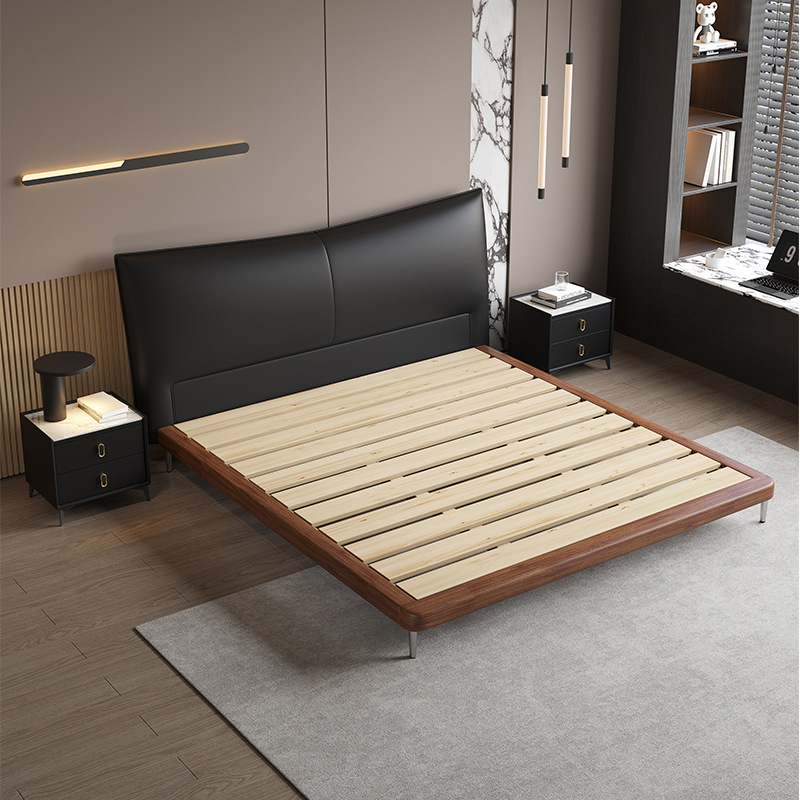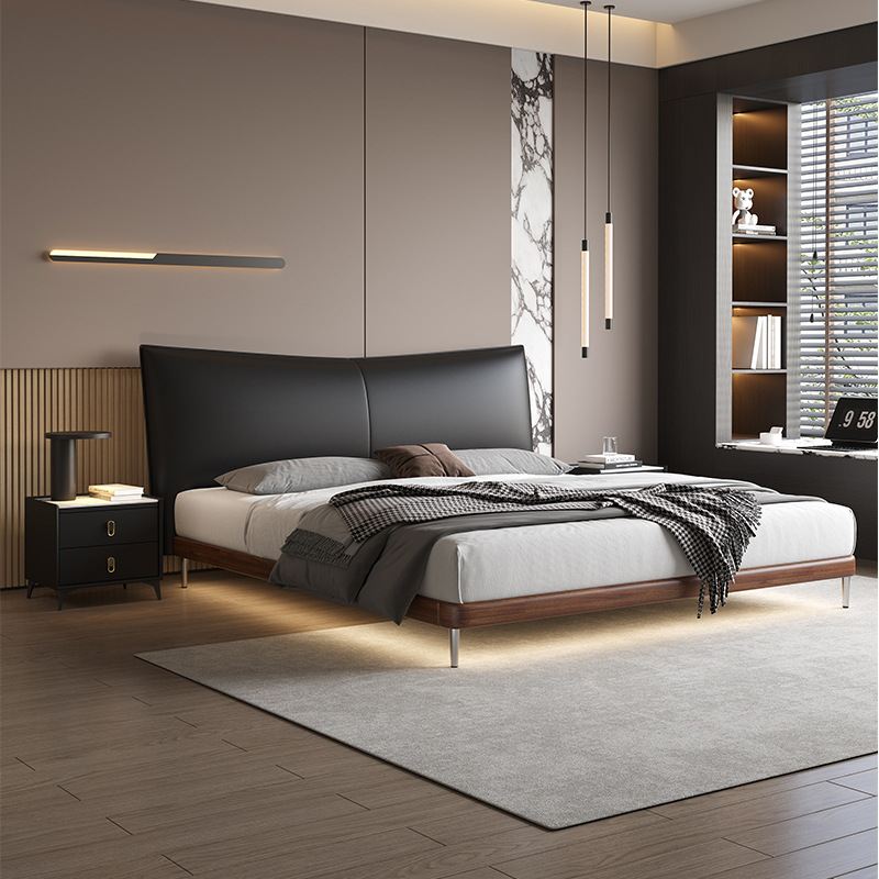 새로운 스타일 가죽 침대 현대 미니멀리스트 블랙 가죽 침대 크고 작은 아파트 마스터 침실 소프트 백 레트로 더블 침대 솔리드 우드 빅 침대