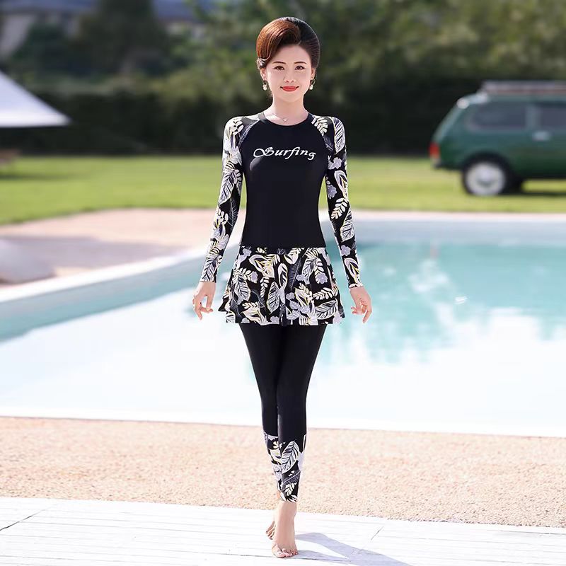 엄마 수영복 여성 온천 보수 슬림 배꼽 덮은 치마 플러스 사이즈 쪼개지는 중년 · 노인 3 종 온천 수영복스토어 가기
