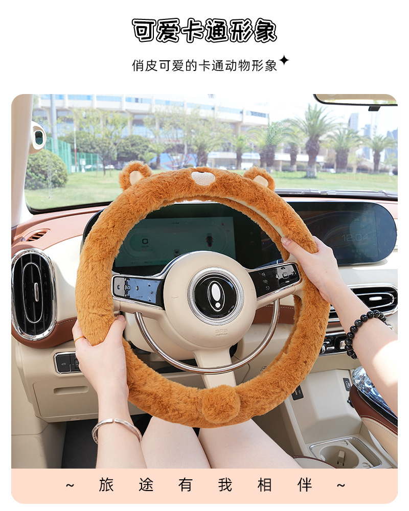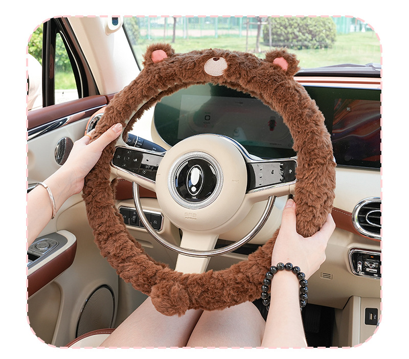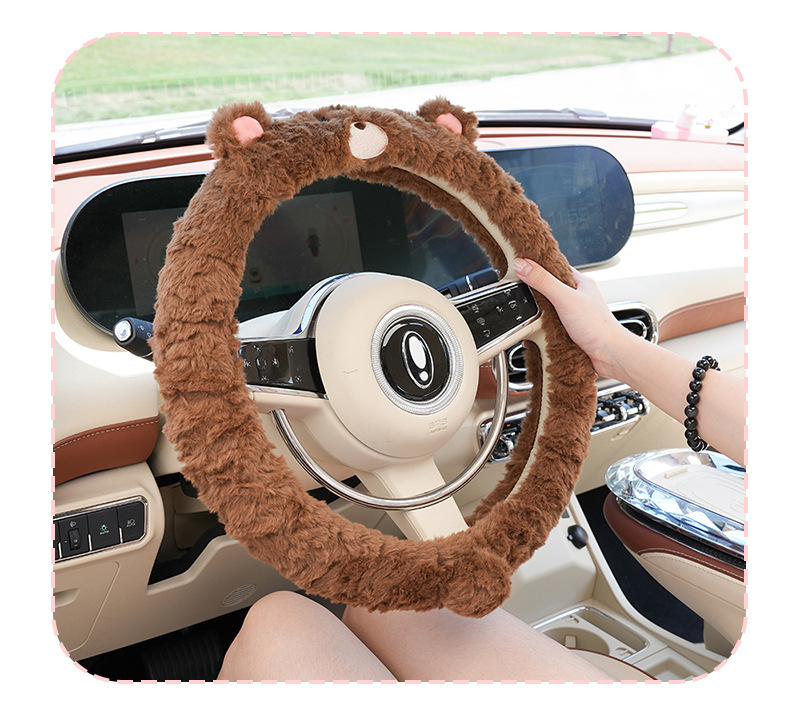 만화 토끼털 곰돌이 자동차 핸들커버 겨울 미끄럼 방지 차량 핸들커버 겨울 방한 자동차 핸들커버