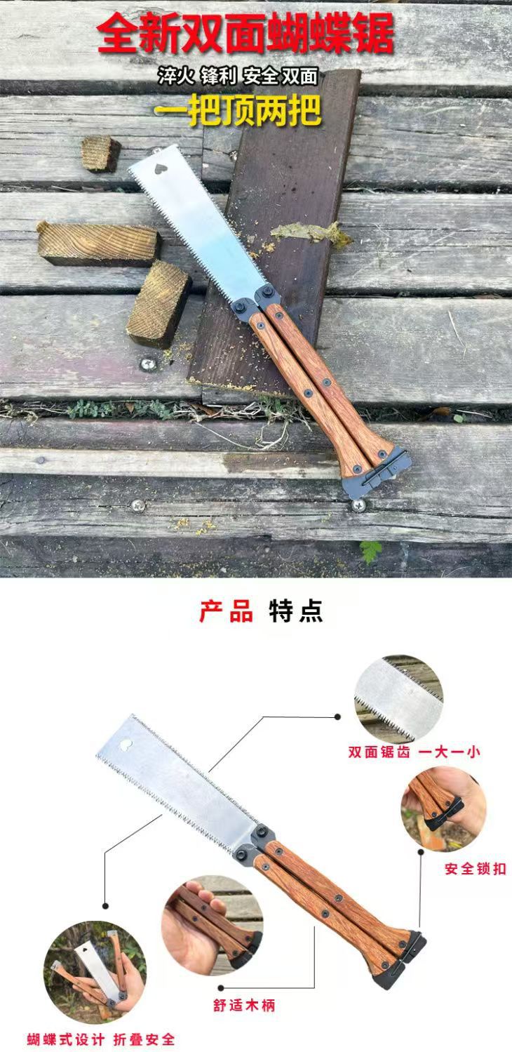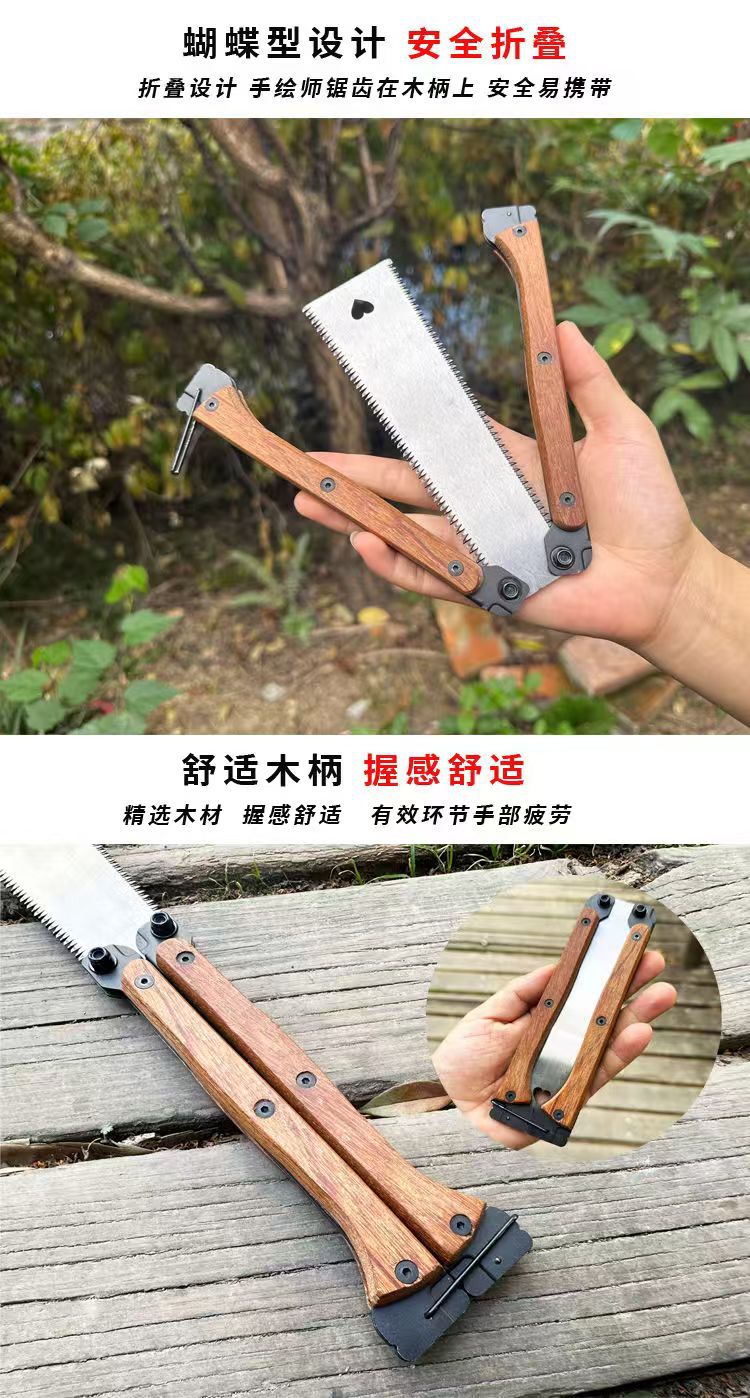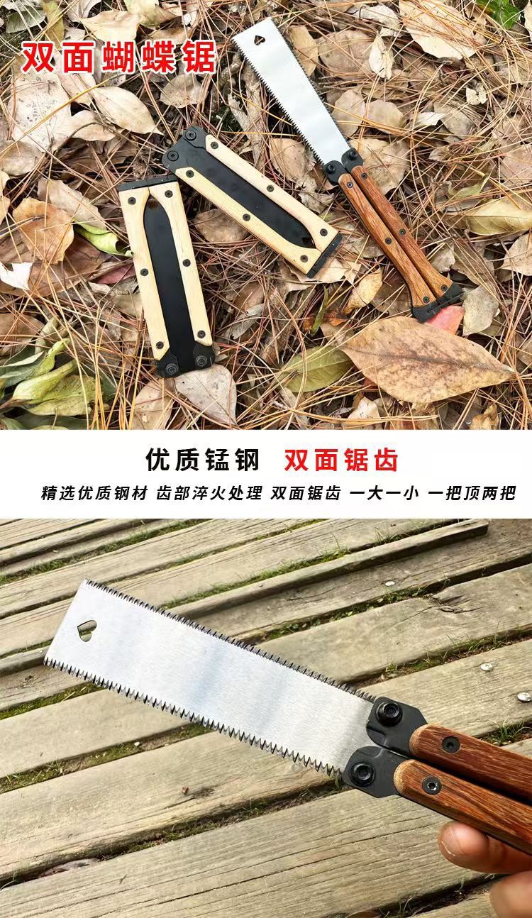 오픈 장부 및 테온 접이식 나비는 가정용 소형 핸드 헬드 로깅 톱날 양면 연삭 기어 수동 톱 수동 톱을 보았습니다.