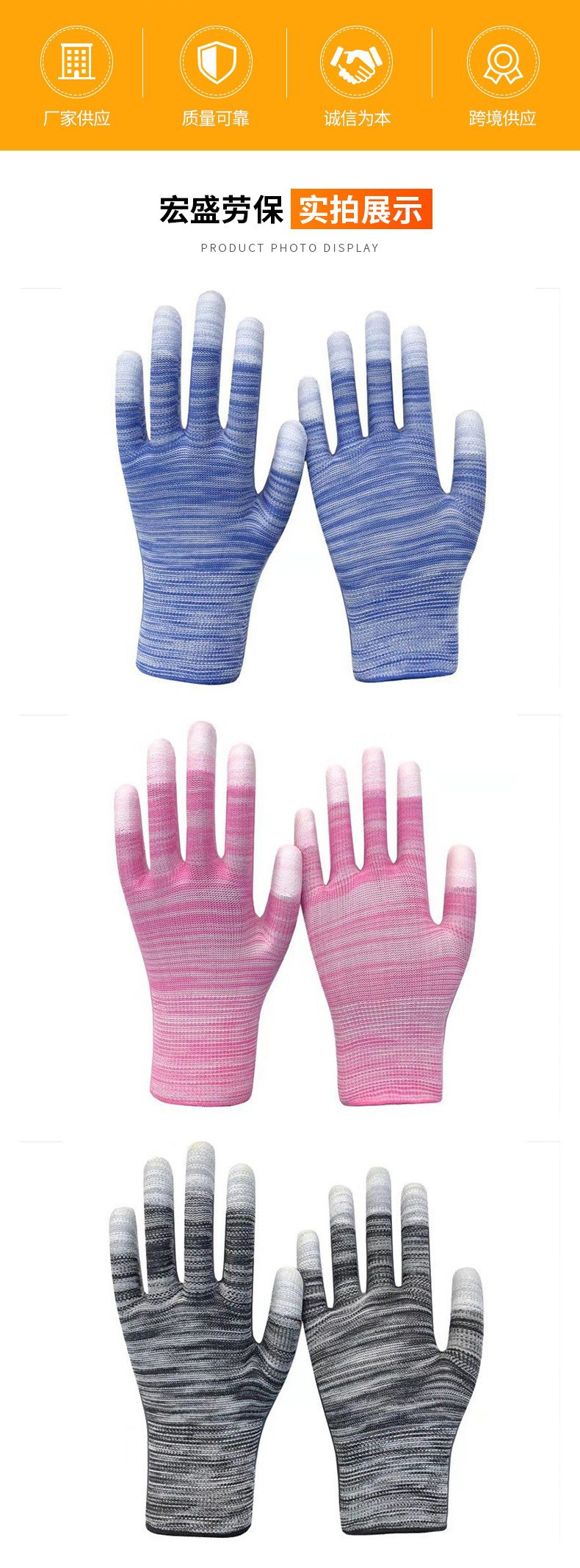 PU 코팅 손가락 및 손바닥 정전기 방지 장갑, 노동 보호, 내마모성 작업용 나일론 딥 코팅, 유연하고 얇은 통기성 모델 HS10