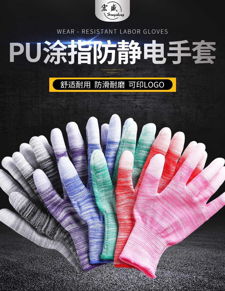 PU 코팅 손가락 및 손바닥 정전기 방지 장갑, 노동 보호, 내마모성 작업용 나일론 딥 코팅, 유연하고 얇은 통기성 모델 HS10스토어 가기