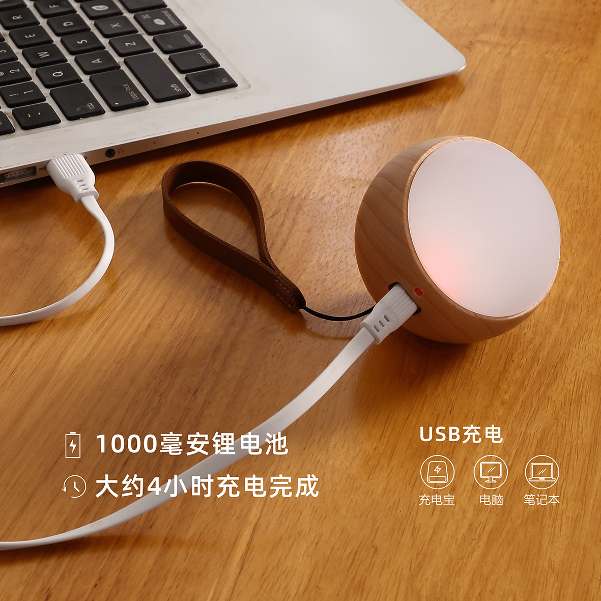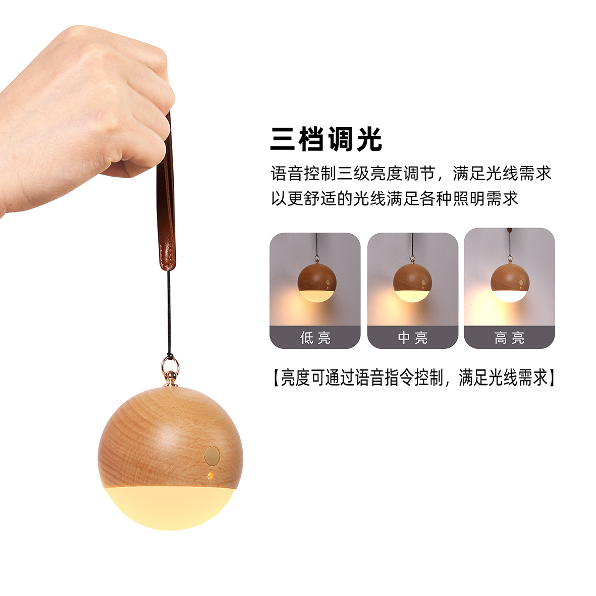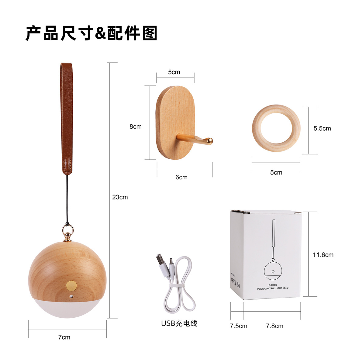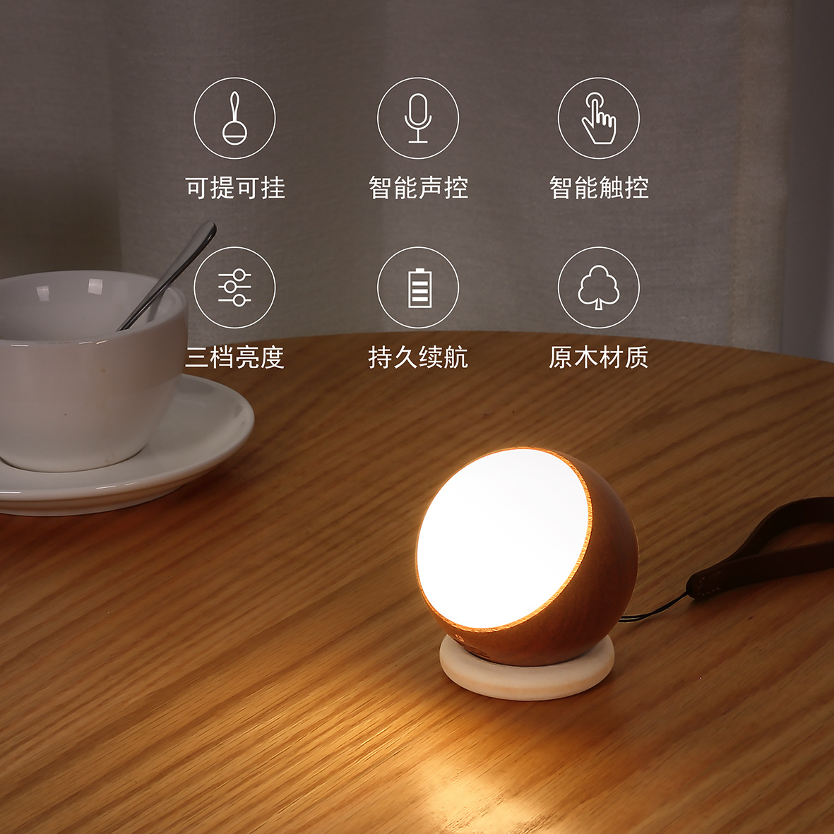 국경을 넘는 원목 현관 음성 명령 충전식 야간등 침실 음성 제어등 휴대용 LED 램프