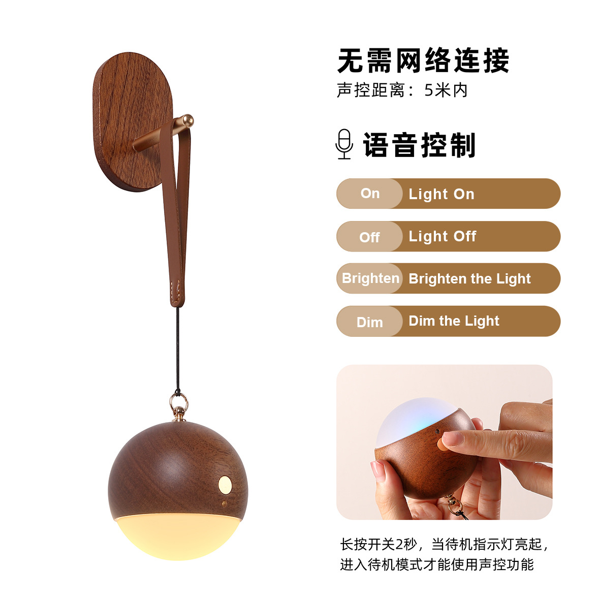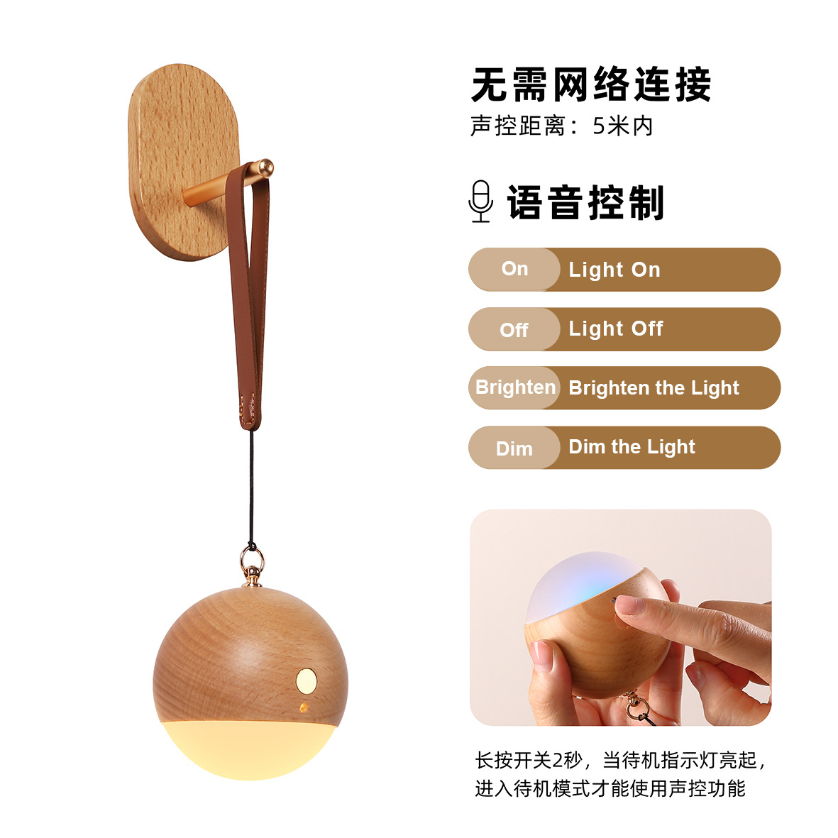 국경을 넘는 원목 현관 음성 명령 충전식 야간등 침실 음성 제어등 휴대용 LED 램프스토어 가기