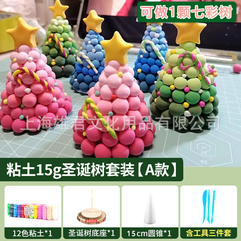 크리스마스 클레이 크리스마스 트리 수제 DIY 울트라 라이트 클레이 소재 가방 데스크탑 장식품 유치원 작은 선물스토어 가기