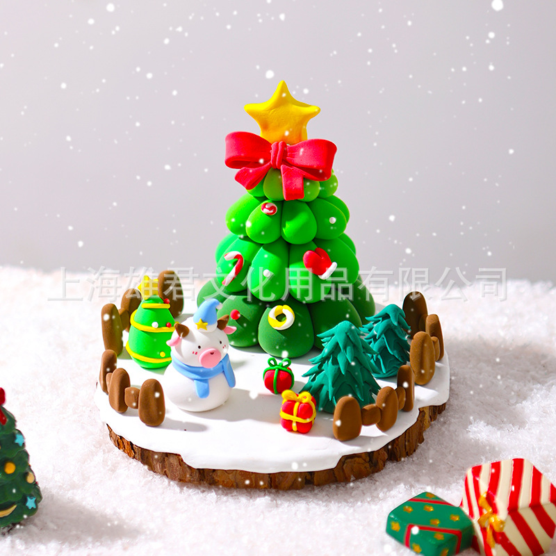 크리스마스 클레이 크리스마스 트리 수제 DIY 울트라 라이트 클레이 소재 가방 데스크탑 장식품 유치원 작은 선물