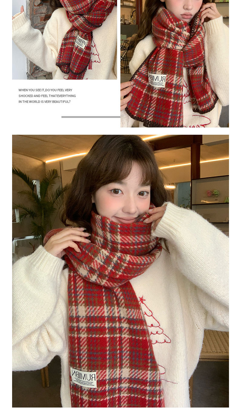 가을과 겨울 새로운 크리스마스 격자 무늬 붉은 스카프 따뜻한 높은 감각 영국 남성과 여성 커플 스카프 라이브 목도리스토어 가기