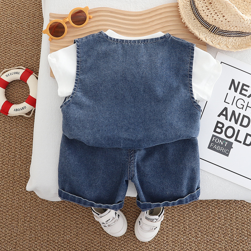 2025 여름 새 데님 반팔 조끼 세련된 반바지 조끼 패션 캐주얼 3 피스 세트
