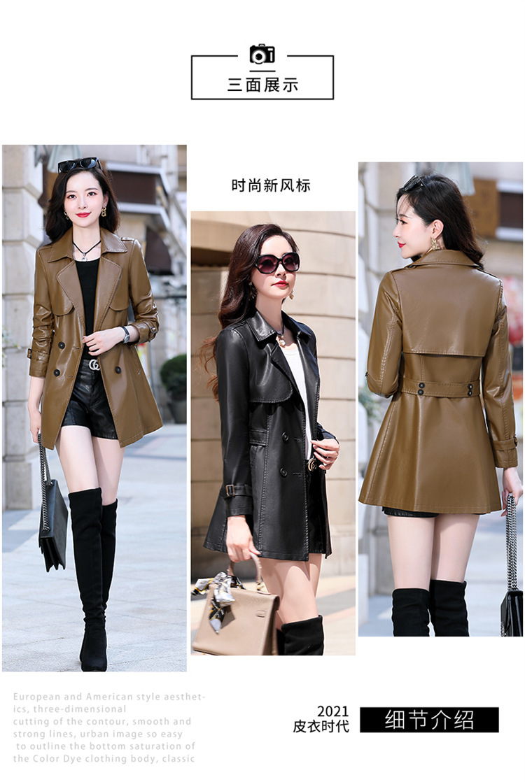 가벼운 럭셔리 하이 엔드 가죽 여성의 봄과 가을 새로운 슬림 핏 Haining 정품 가죽 양가죽 중간 길이 코트
