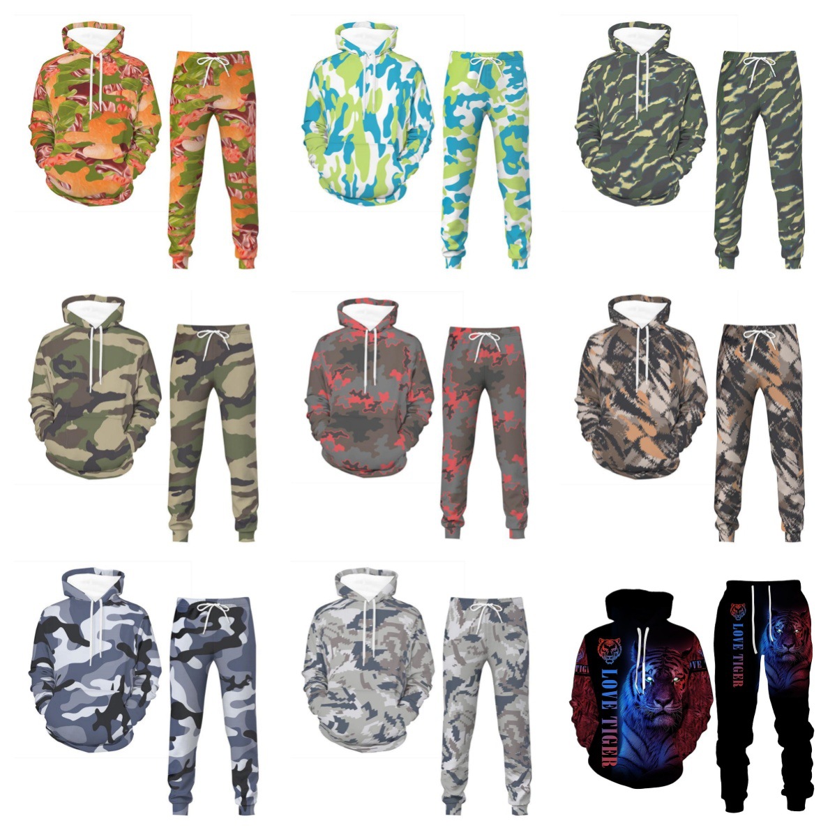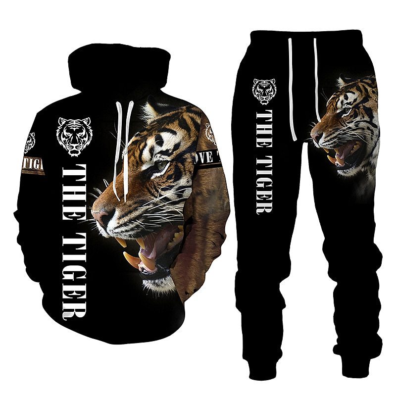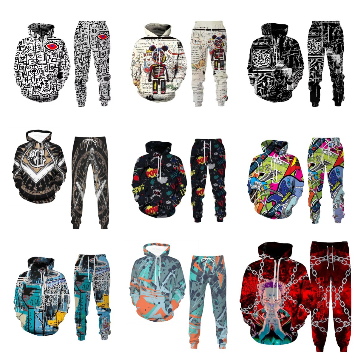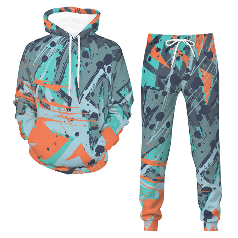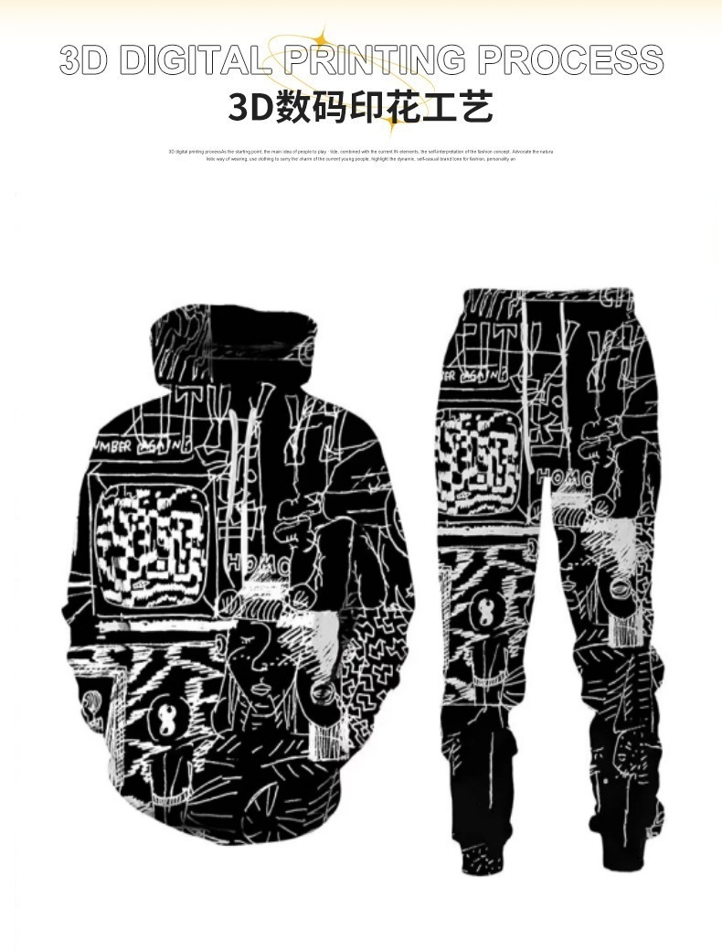 AliExpress 국경 간 대외 무역 가을/겨울 3D 낙서 인쇄 후드 바지 세트 남성용 멋진 스포츠웨어 투피스 세트