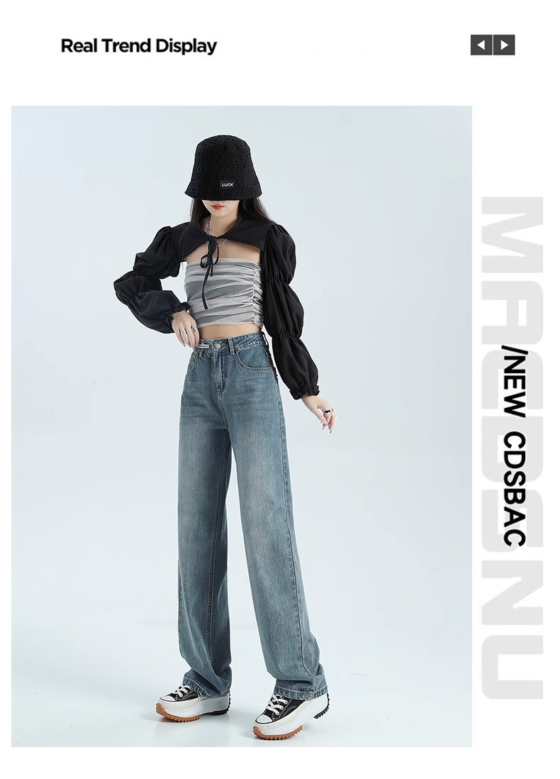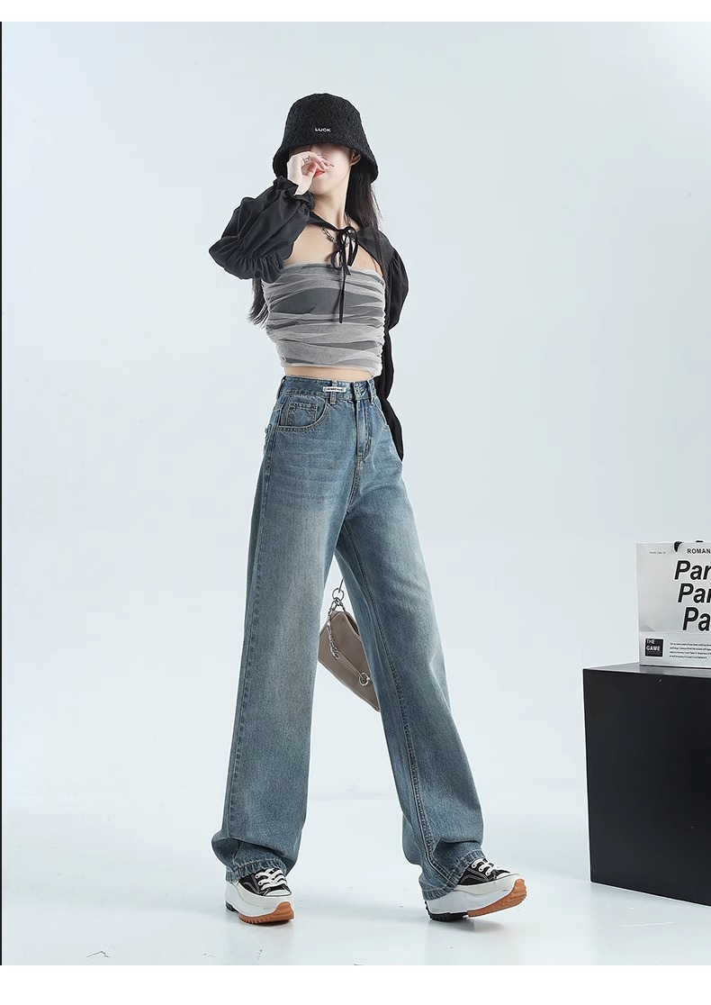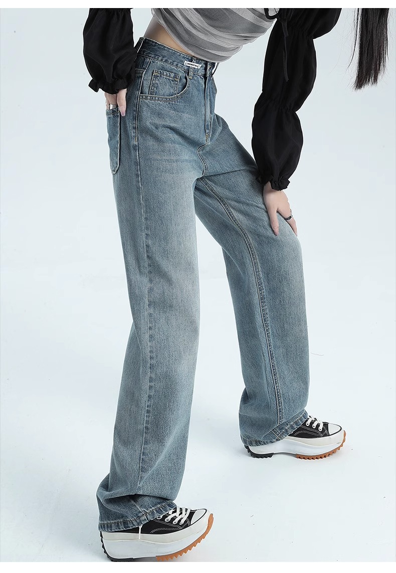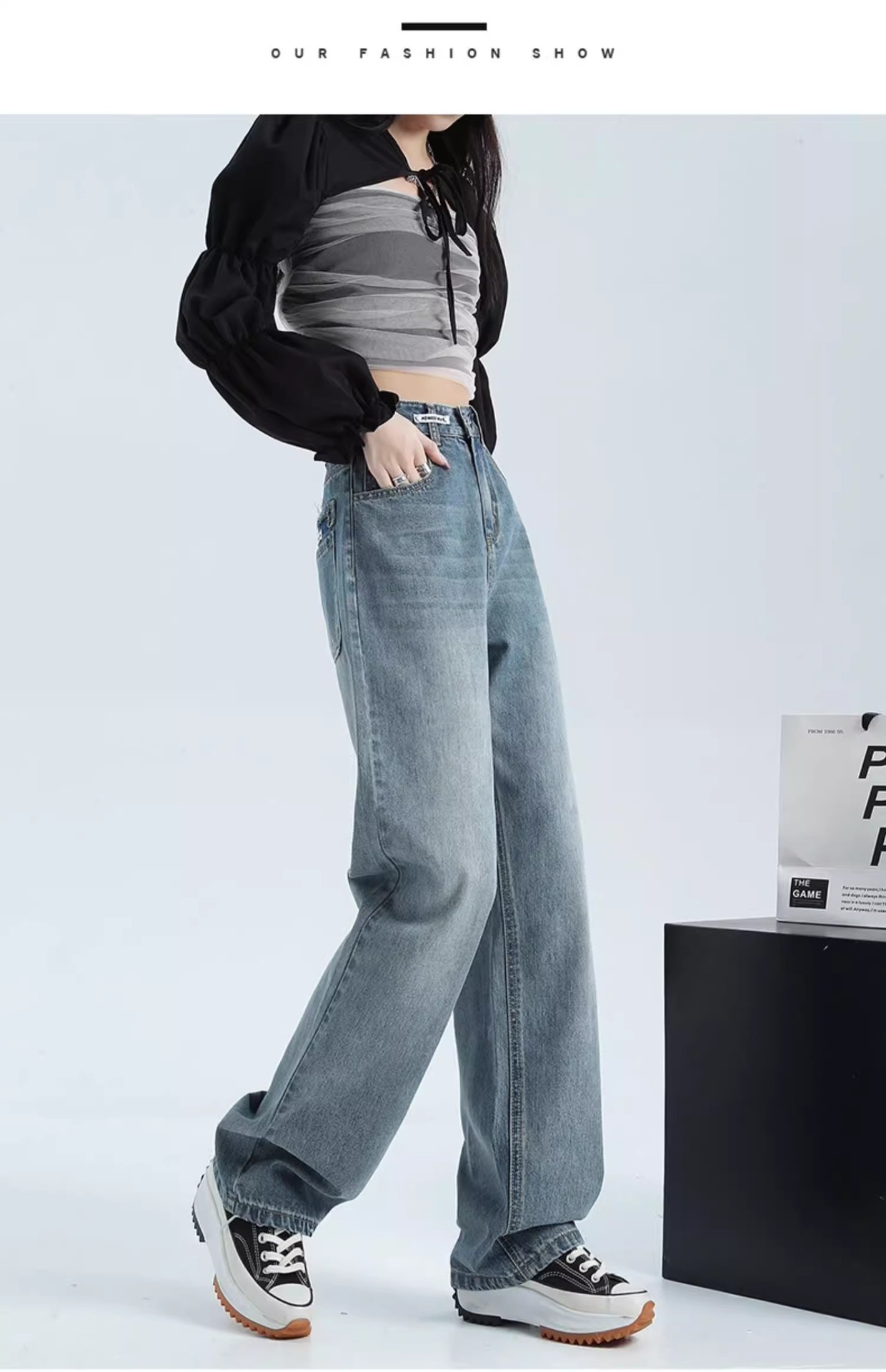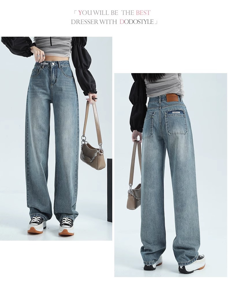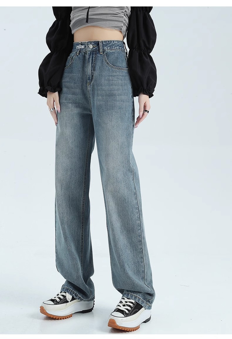 좁은 높은 허리 스트레이트 청바지 여성용 가을 배 모양의 바디 루즈 캐주얼 슬림 핏 넓은 다리 바지
